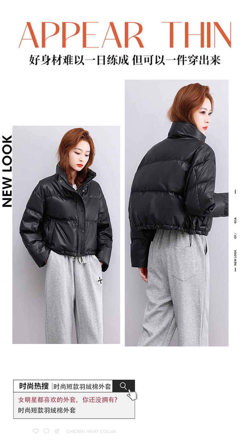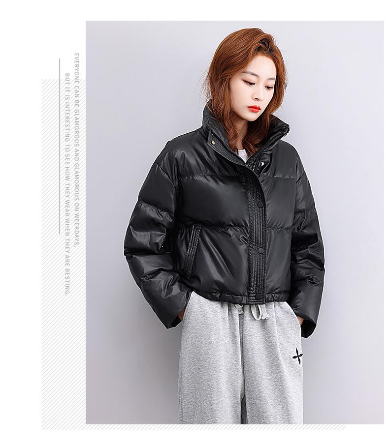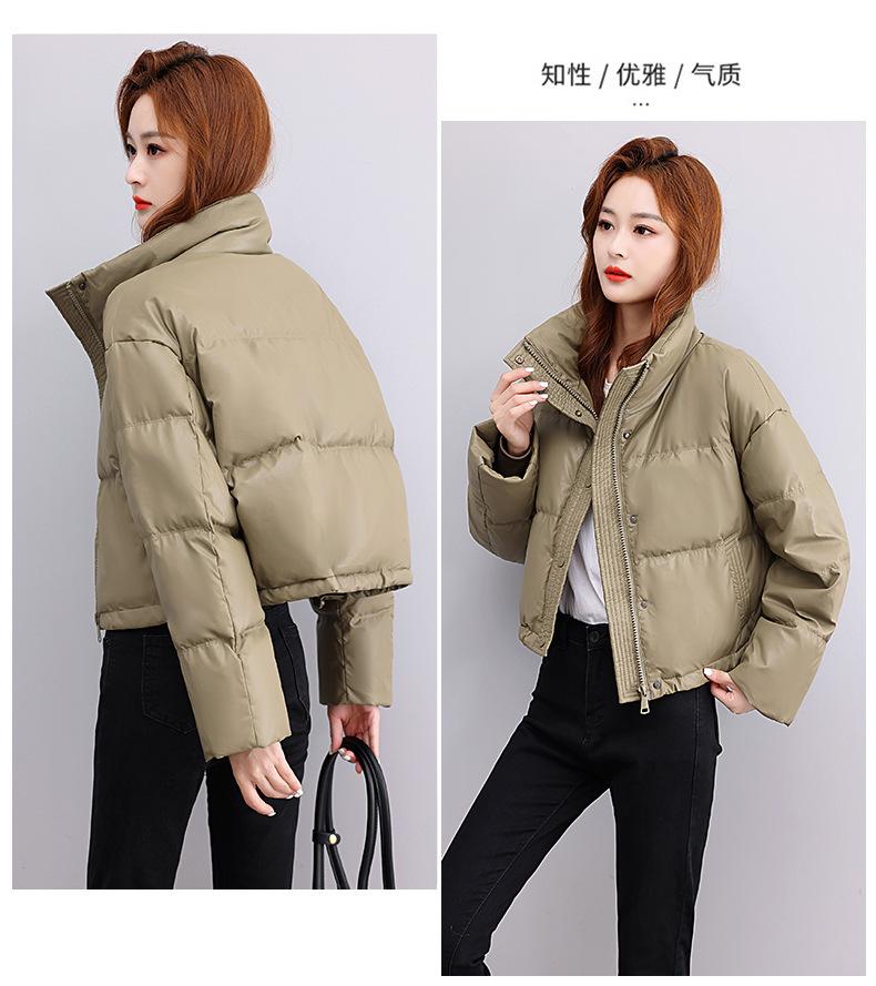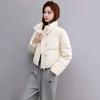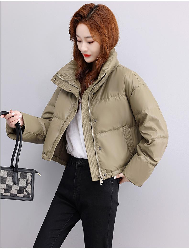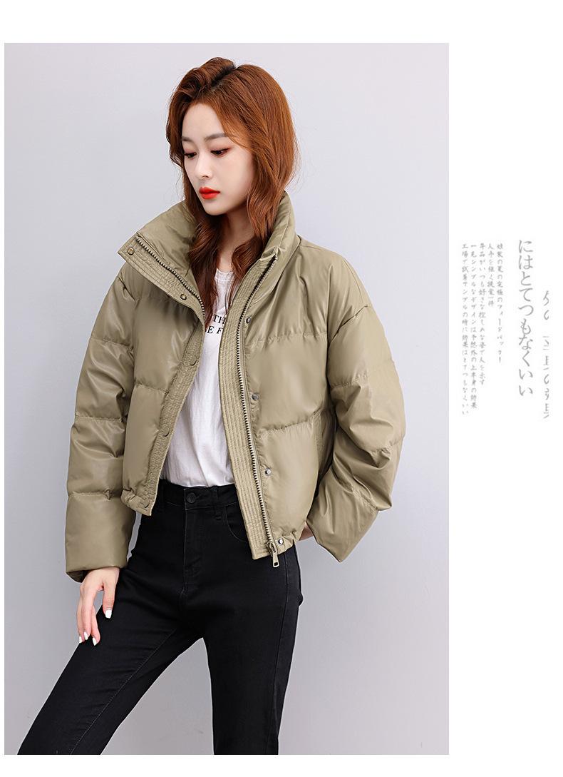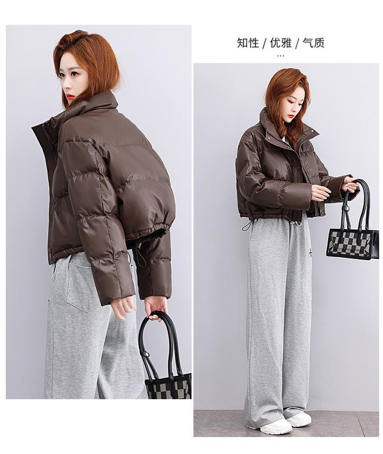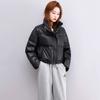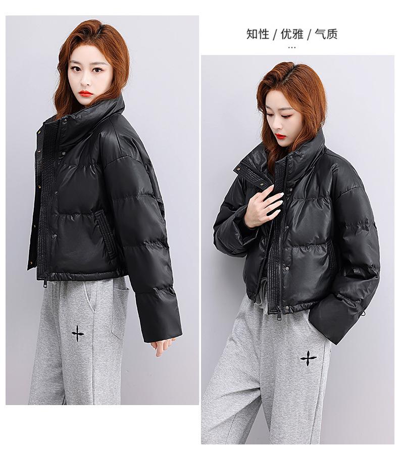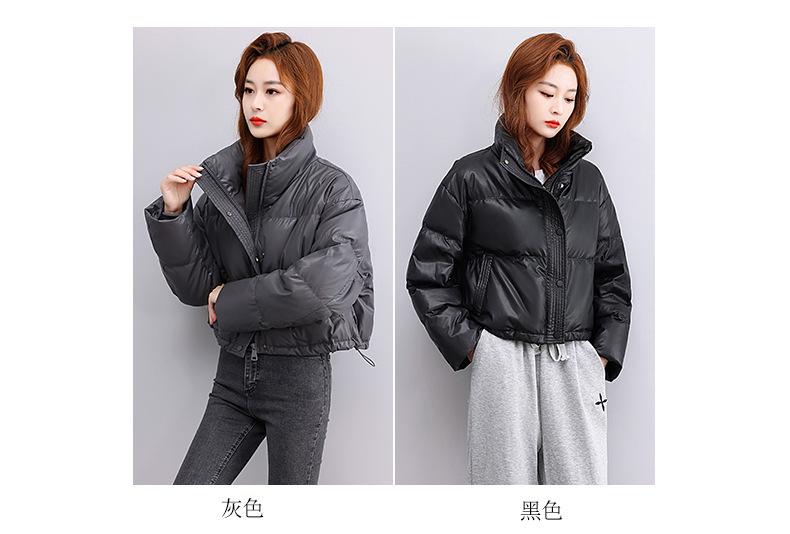 2024 Invierno Centroeuropeo y Americano Nuevo Abrigo Corto Holgado Acolchado de Algodón con Plumón para Mujer Cuello Alto Engrosado Cuero Chaqueta Acolchada de Algodón Abrigo Moderno