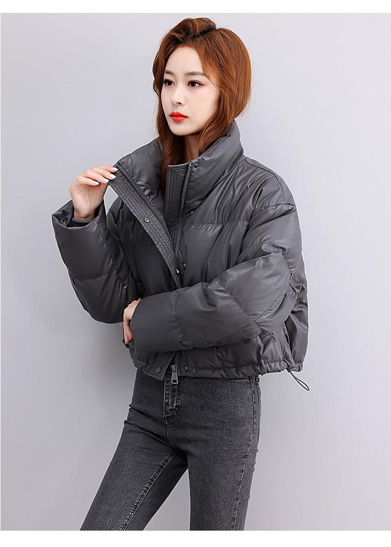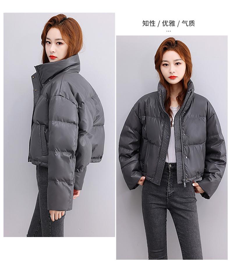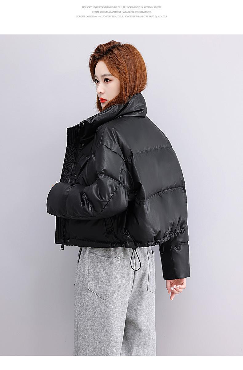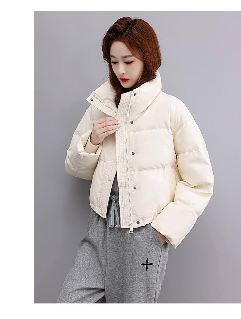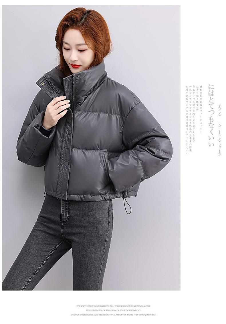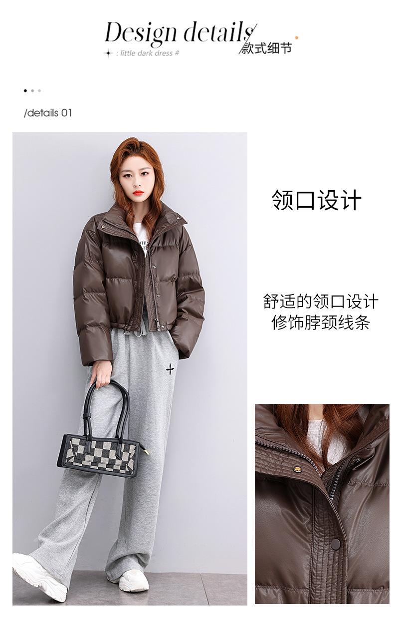 2024 Invierno Centroeuropeo y Americano Nuevo Abrigo Corto Holgado Acolchado de Algodón con Plumón para Mujer Cuello Alto Engrosado Cuero Chaqueta Acolchada de Algodón Abrigo Moderno