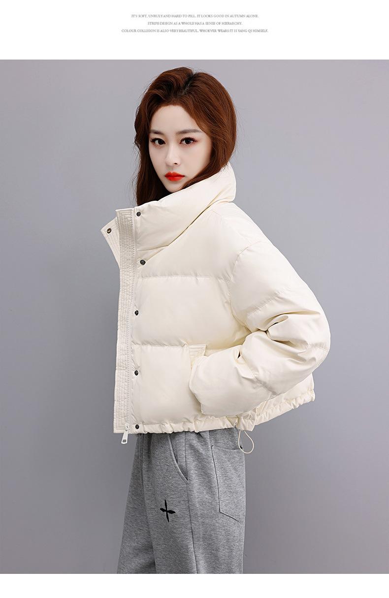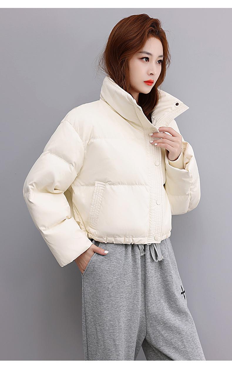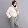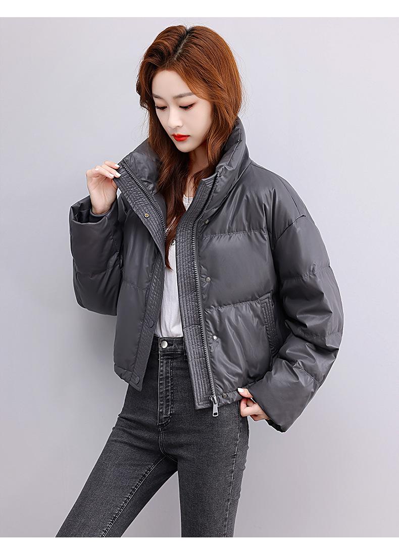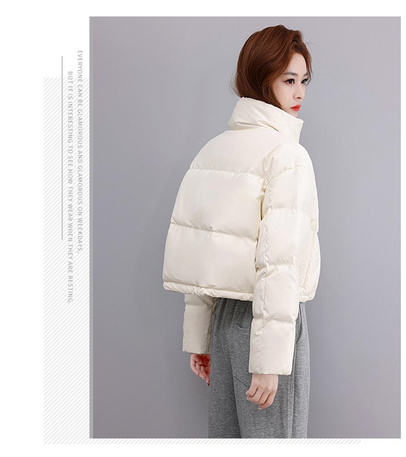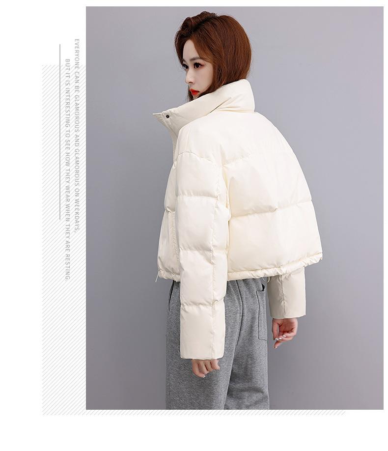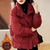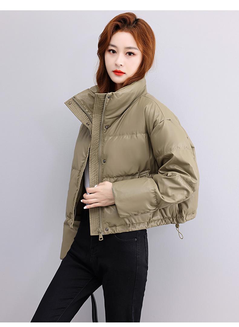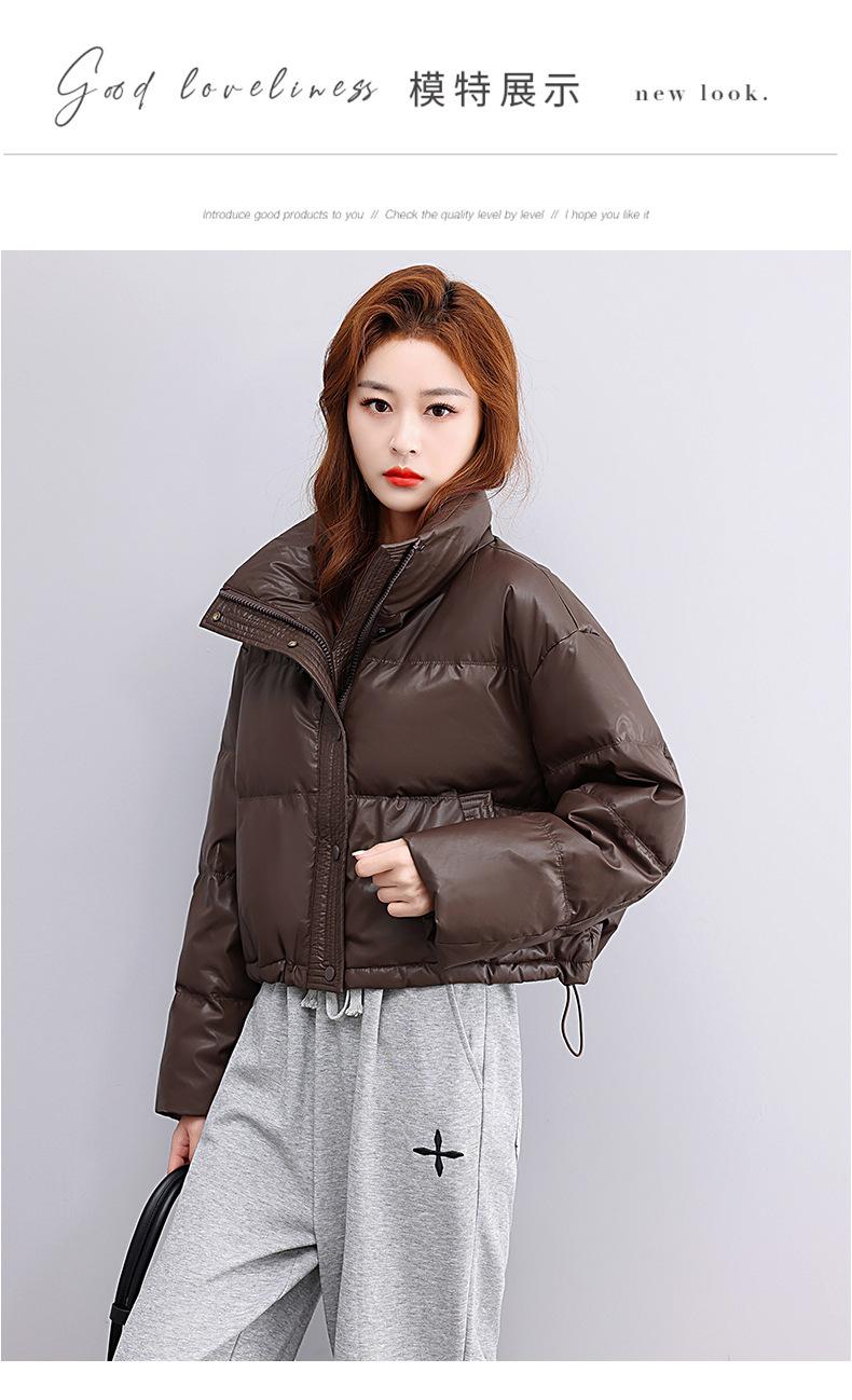 2024 Invierno Centroeuropeo y Americano Nuevo Abrigo Corto Holgado Acolchado de Algodón con Plumón para Mujer Cuello Alto Engrosado Cuero Chaqueta Acolchada de Algodón Abrigo Moderno