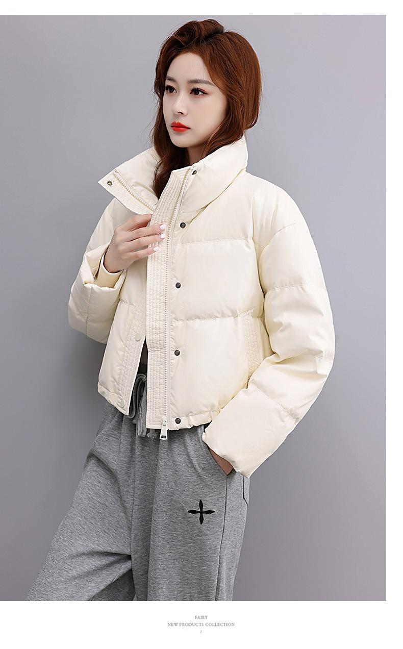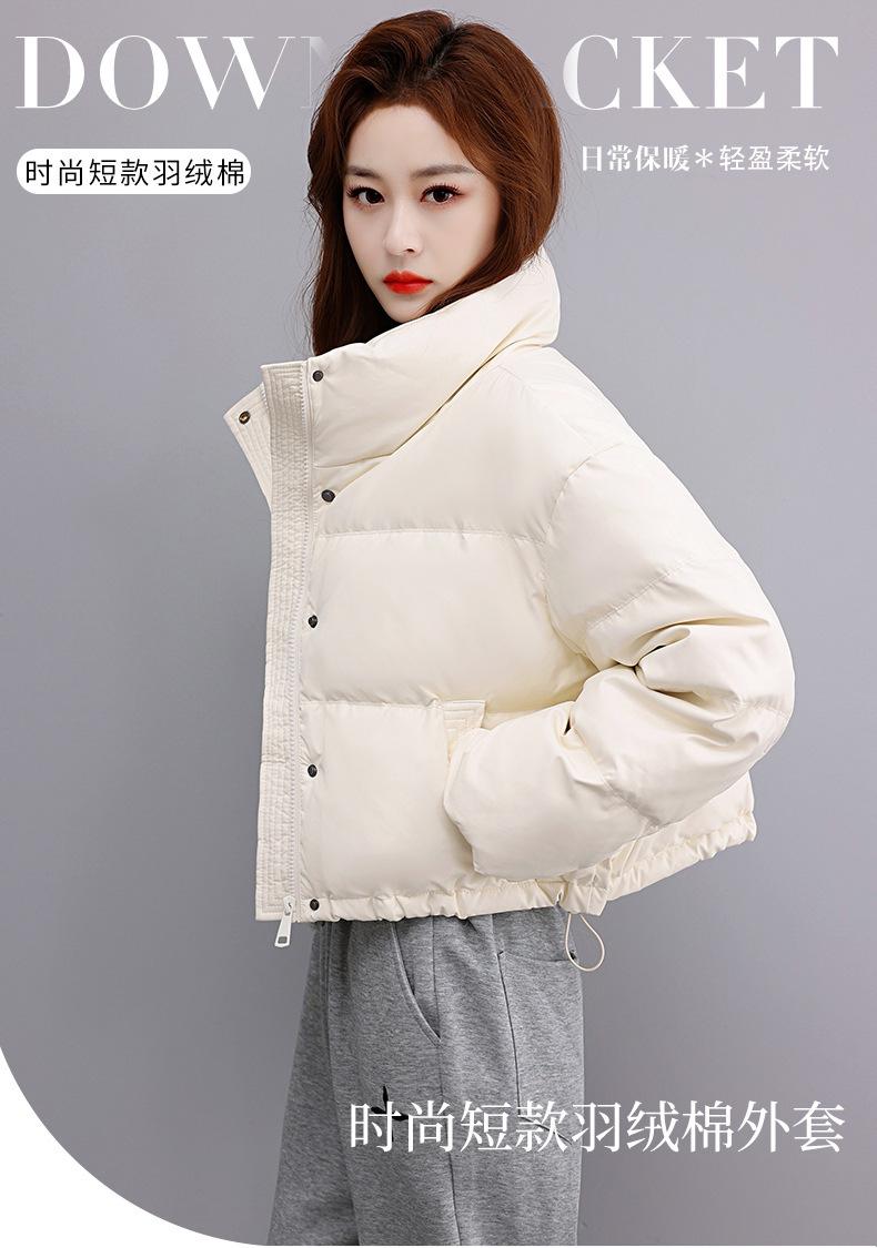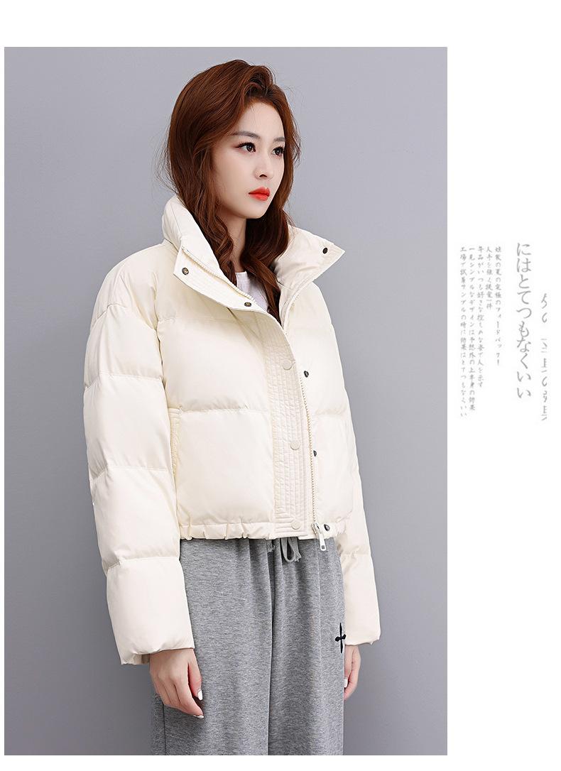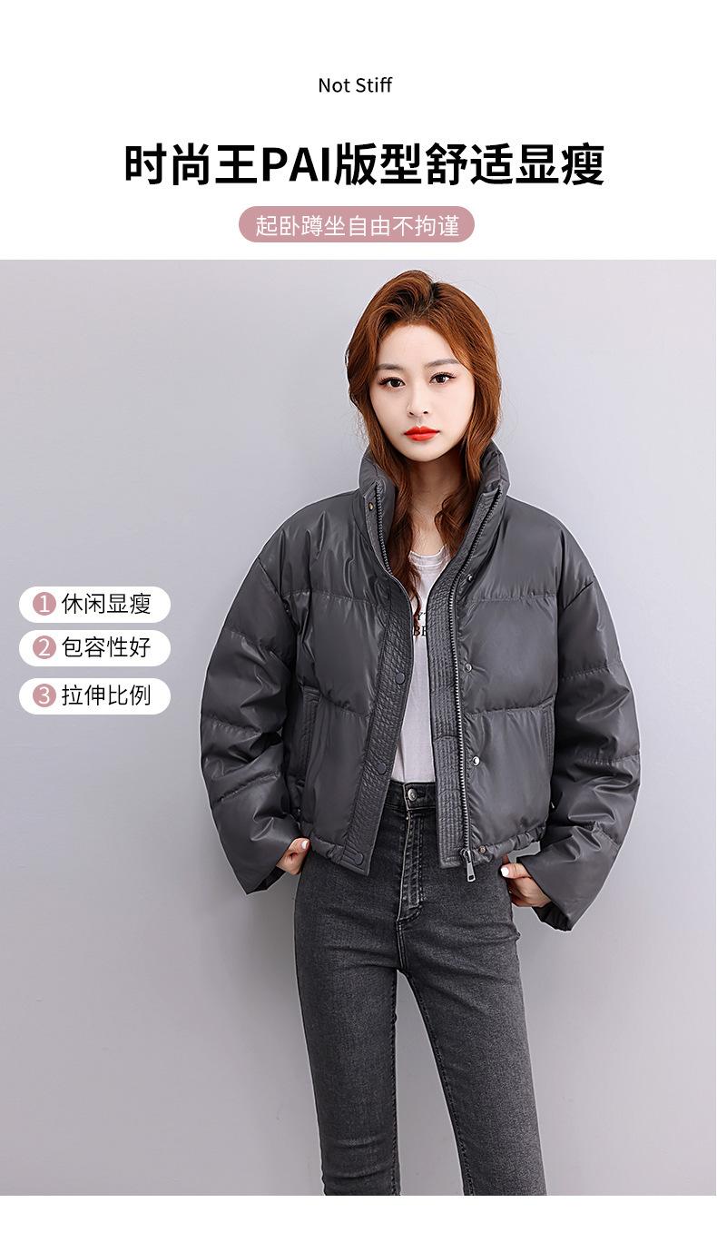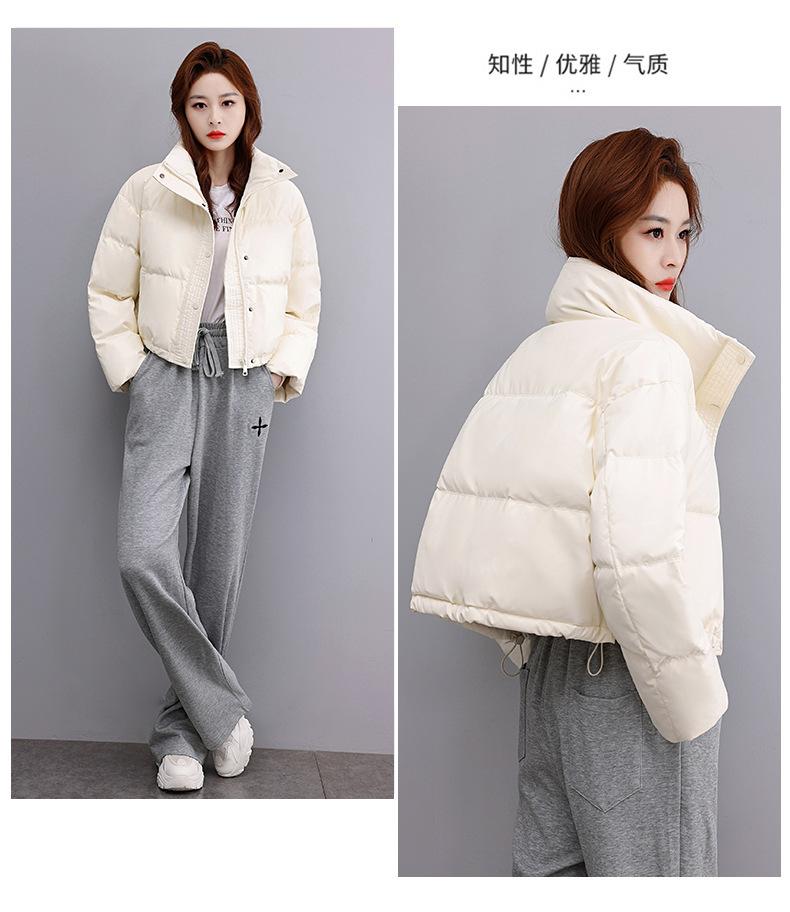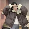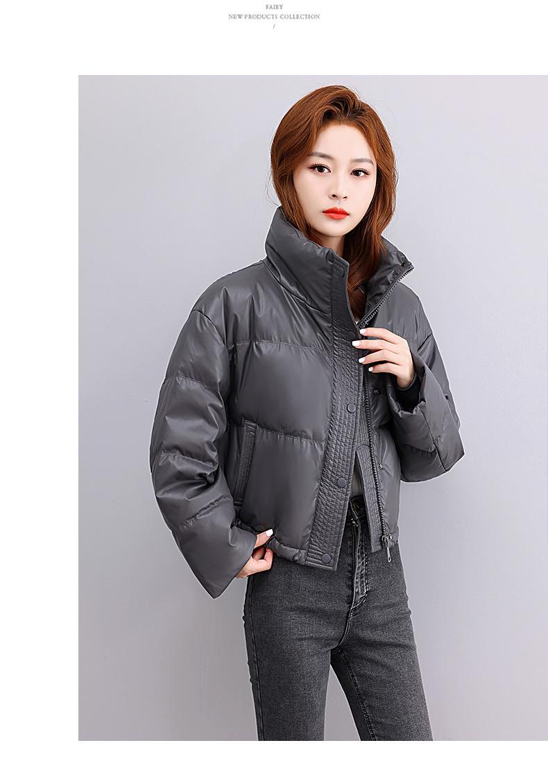 2024 Invierno Centroeuropeo y Americano Nuevo Abrigo Corto Holgado Acolchado de Algodón con Plumón para Mujer Cuello Alto Engrosado Cuero Chaqueta Acolchada de Algodón Abrigo Moderno