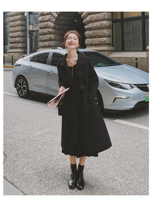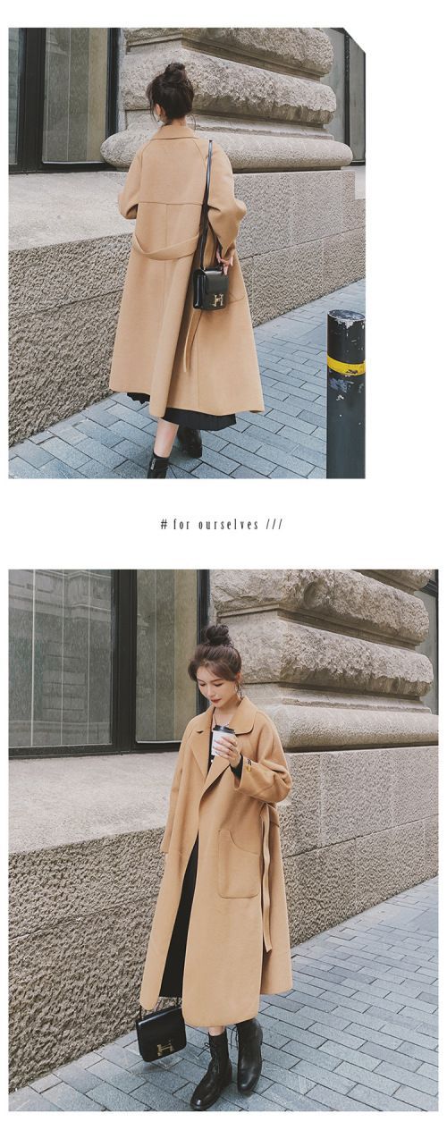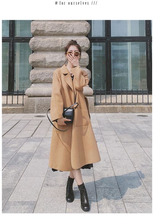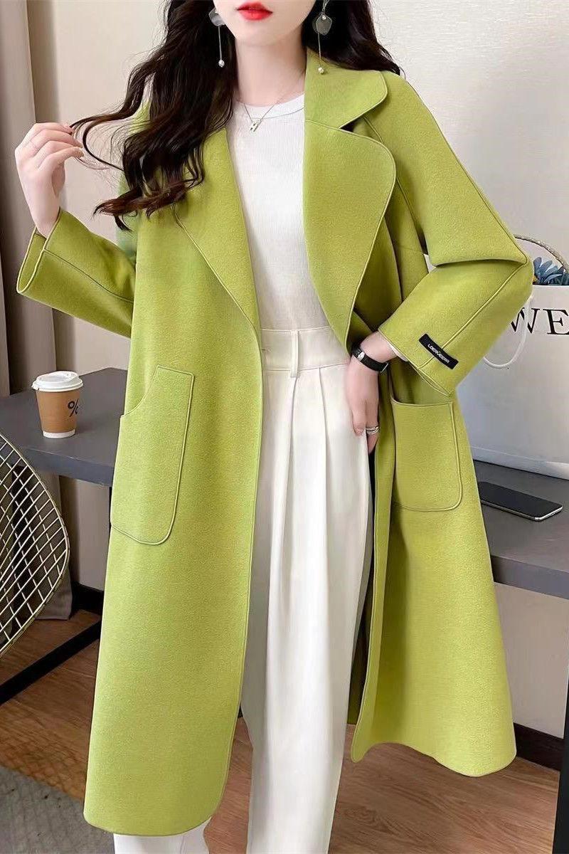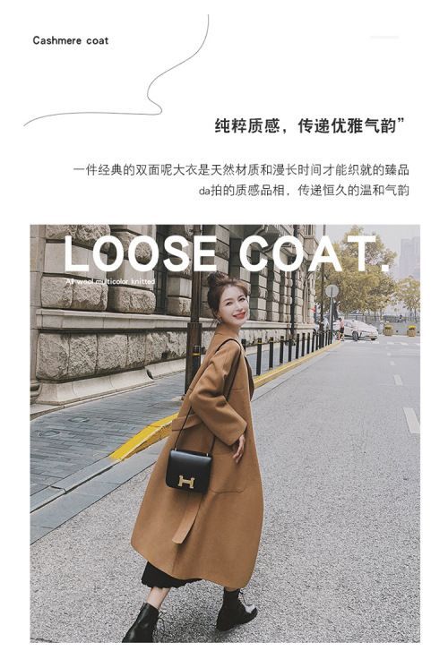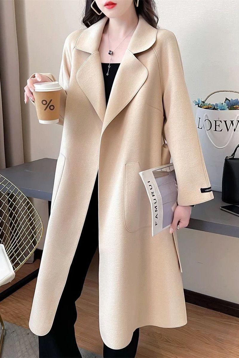Abrigo de cachemira de lana de doble cara 2024 para mujer, otoño e invierno, nuevo estilo coreano, suelto, elegante, de lana de doble cara, abrigo de moda europeo y americano.