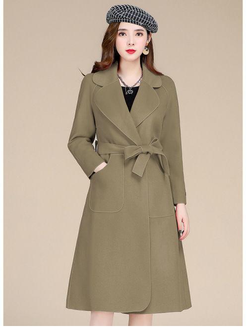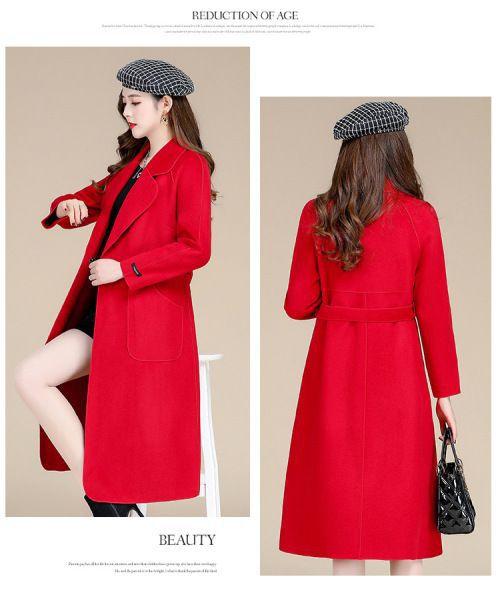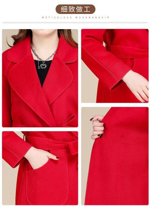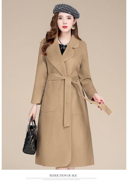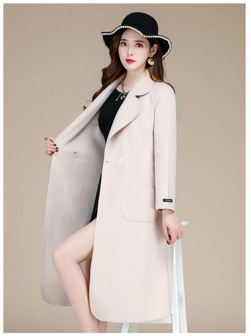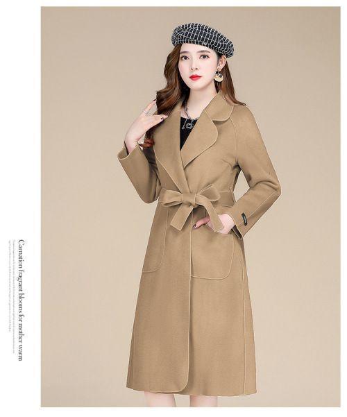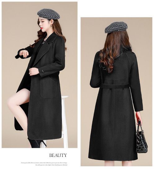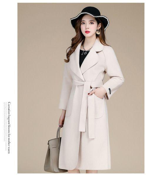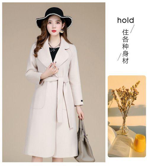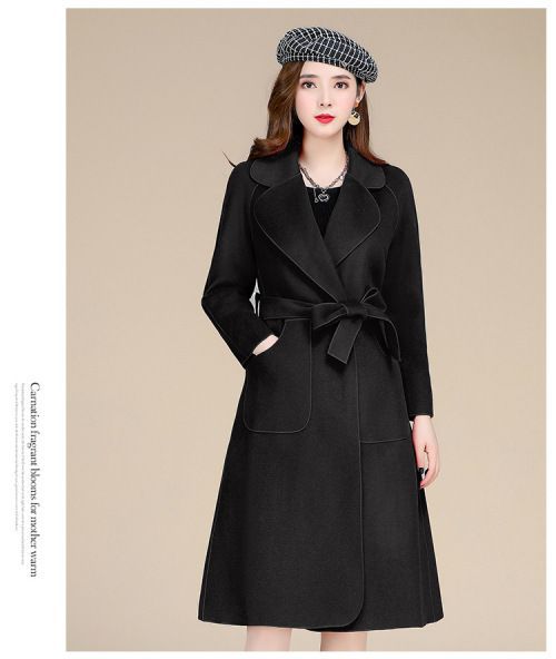 Abrigo de cachemira de doble cara para mujer, invierno 2024, estilo europeo y americano, nuevo abrigo de lana de alta gama, largo medio y alta gama.