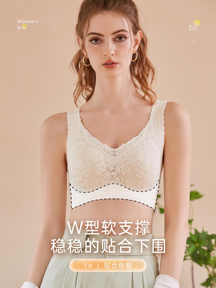 Sostén suave de realce, seda para el mantenimiento del busto, encaje floral, ropa interior sexy para mujer sin costuras estilo chaleco, tirante ancho
