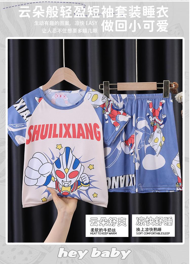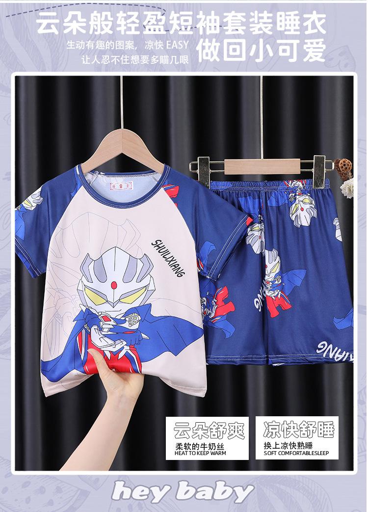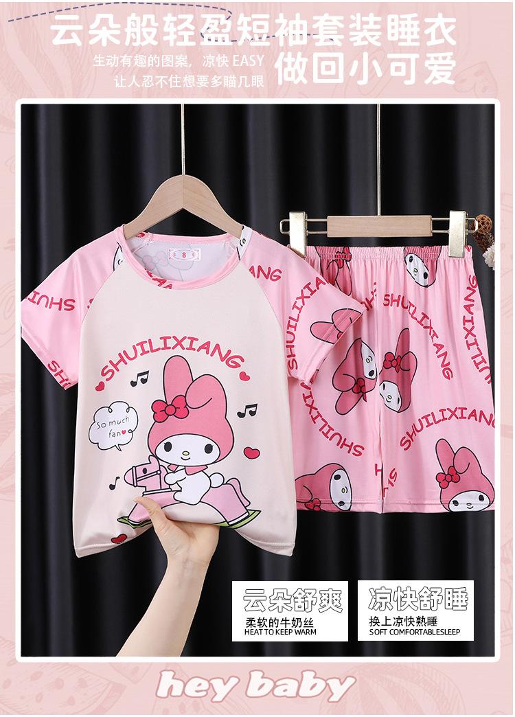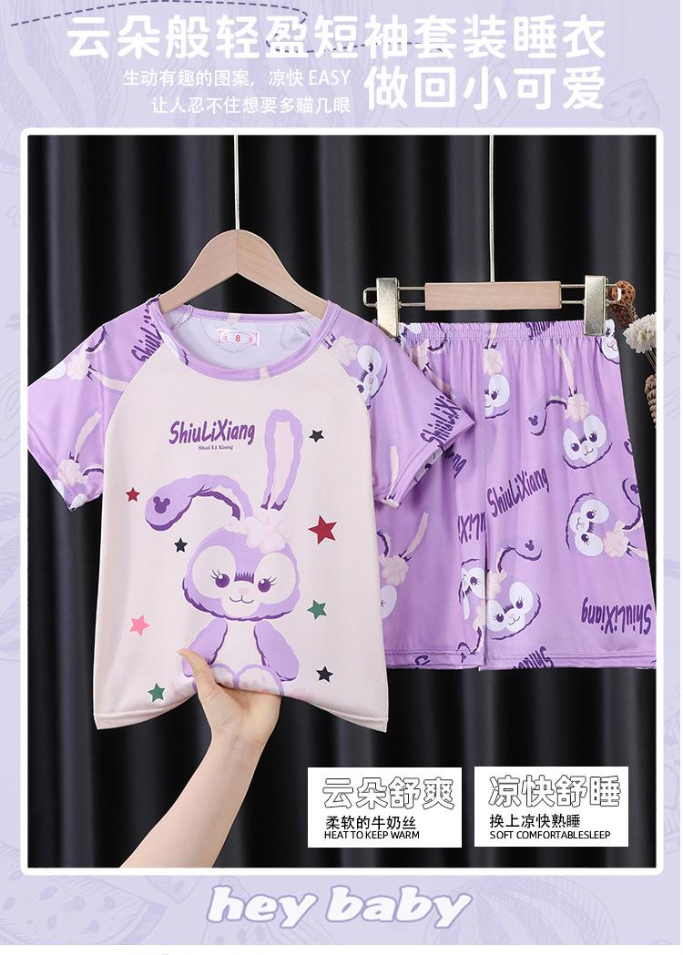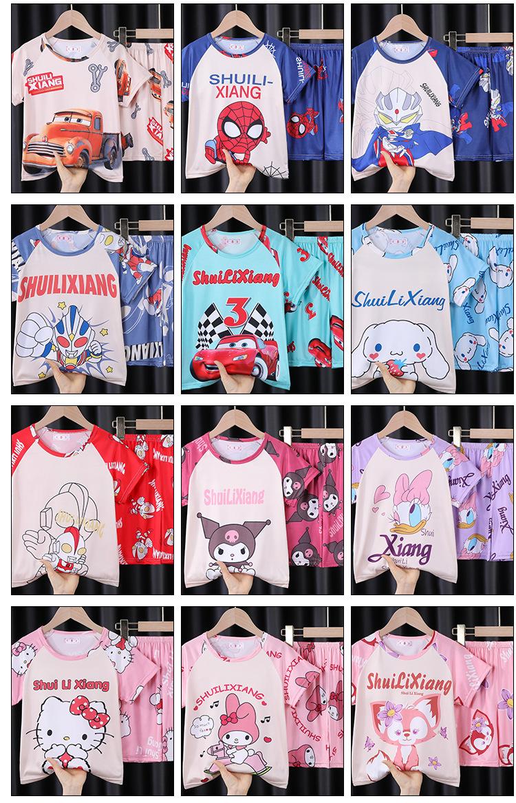 Pijamas para niños, nuevos trajes de verano de manga corta para niños, niñas, niños medianos y grandes, ropa de casa fina con dibujos animados