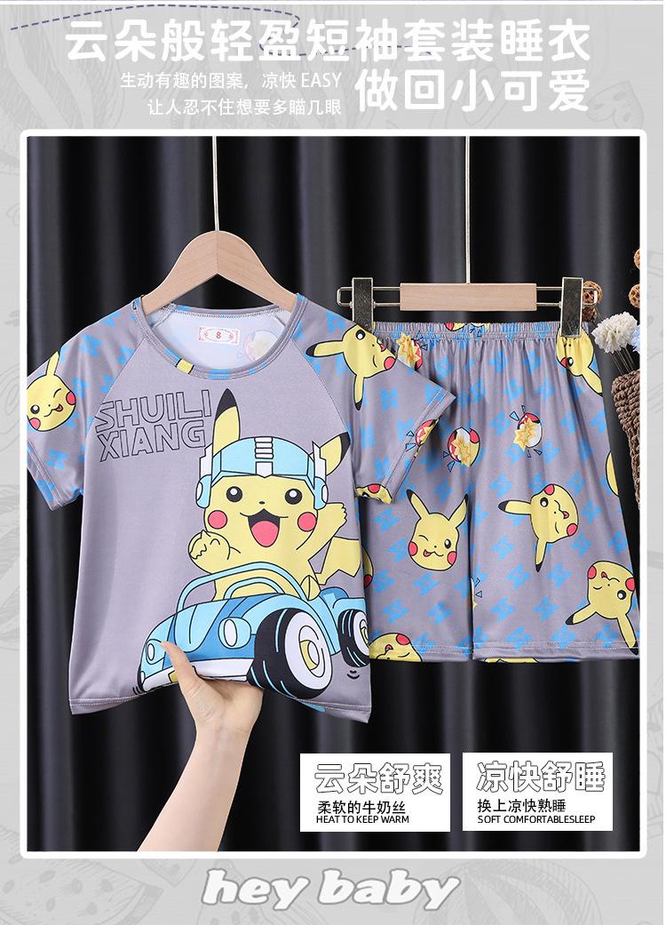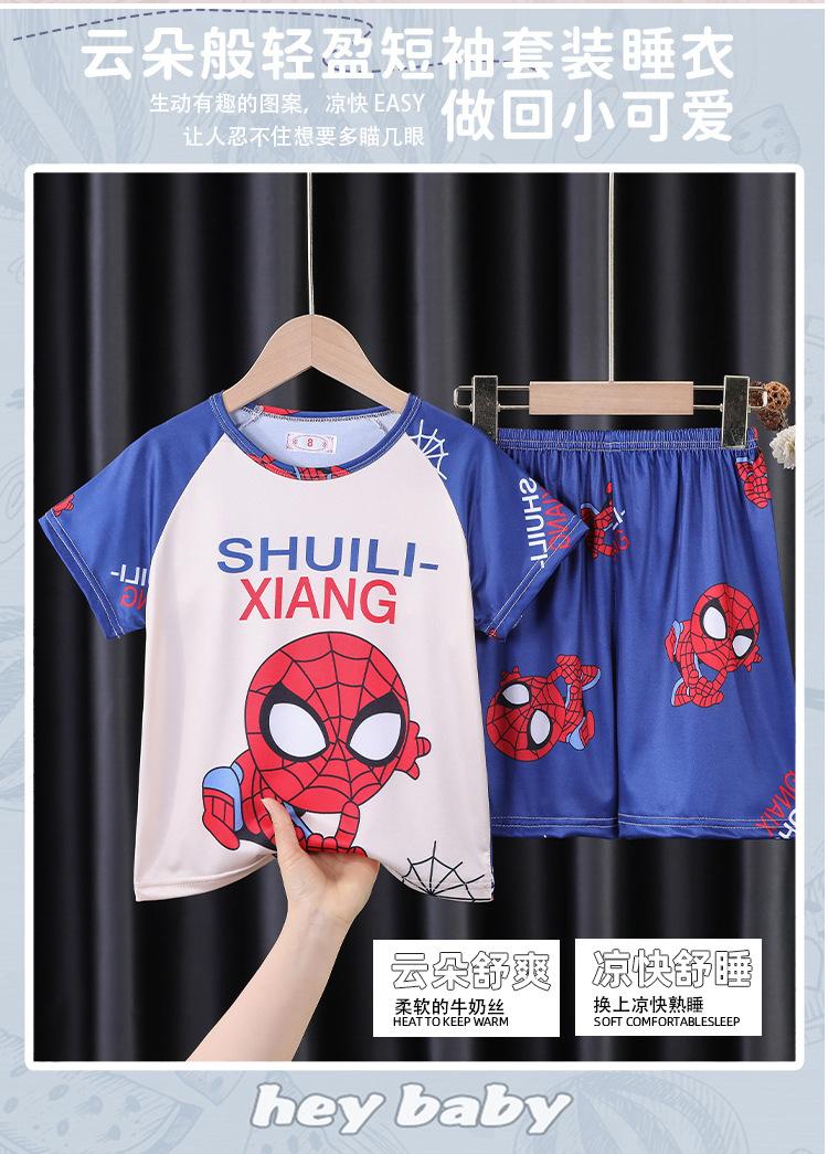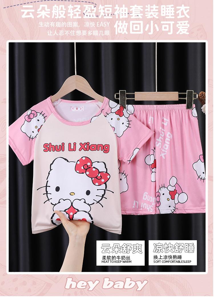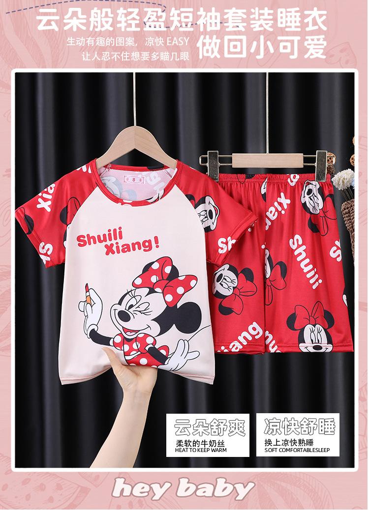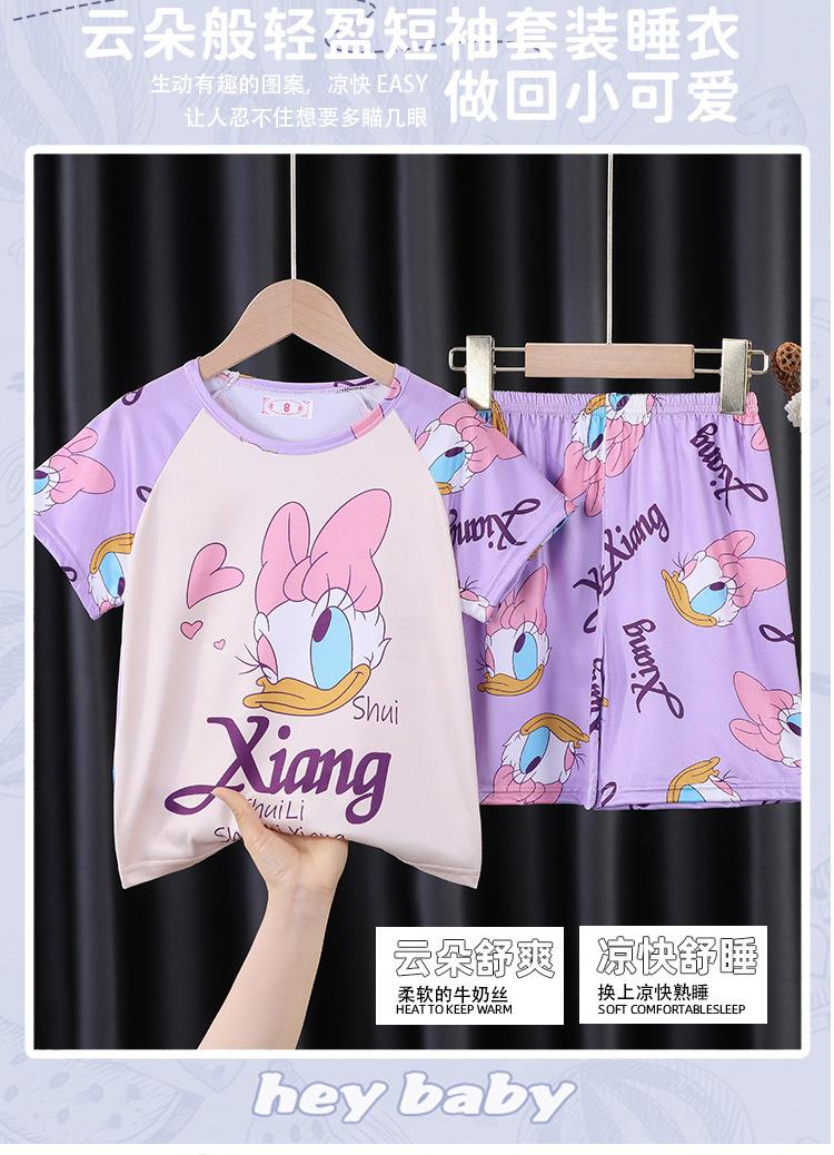 Pijamas para niños, nuevos trajes de verano de manga corta para niños, niñas, niños medianos y grandes, ropa de casa fina con dibujos animados