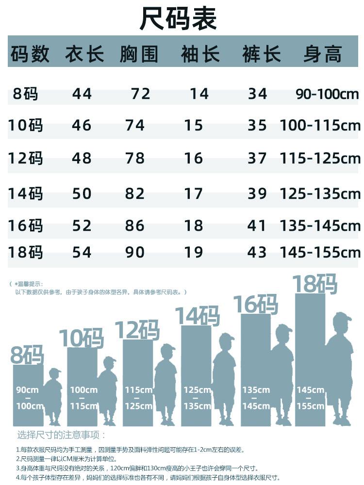 8 size recommended height 95-105cm, 10 size recommended height 105-115cm, 12 size recommended height 115-125cm...