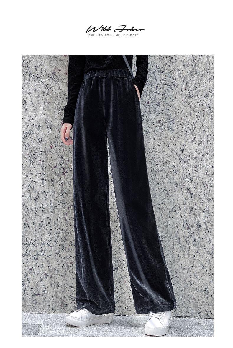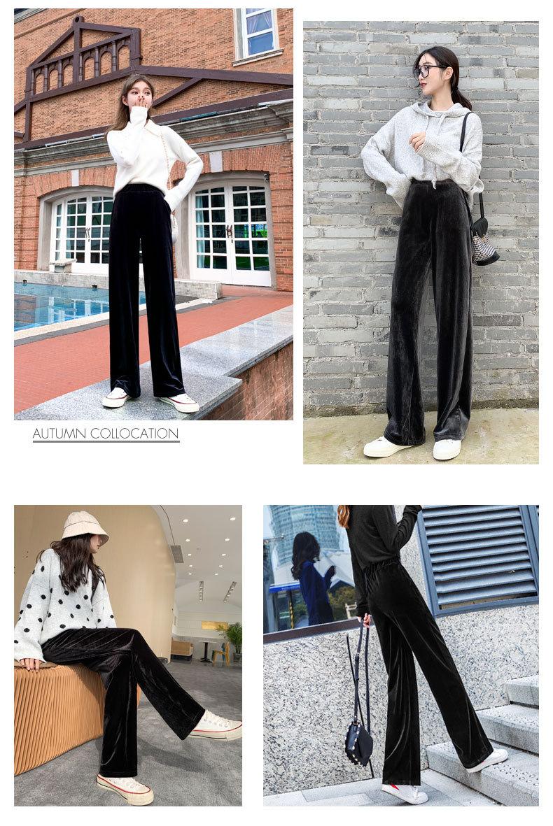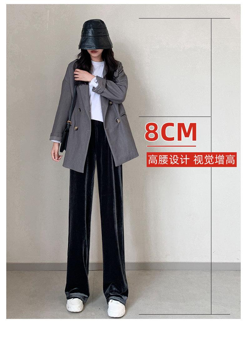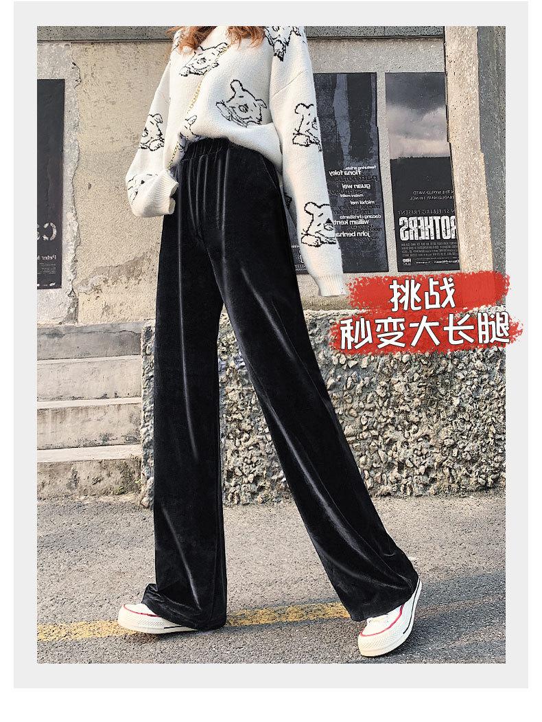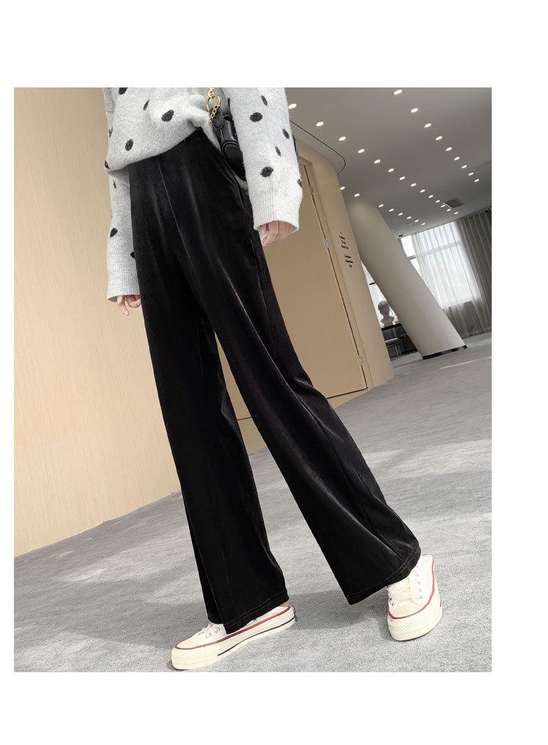 Pantalones de Terciopelo Dorado de Pierna Ancha para Mujer 2025 Nuevo Primavera y Otoño Cintura Alta Drapeado Recto Casual de Alta Gama Negro Pantalones Deportivos