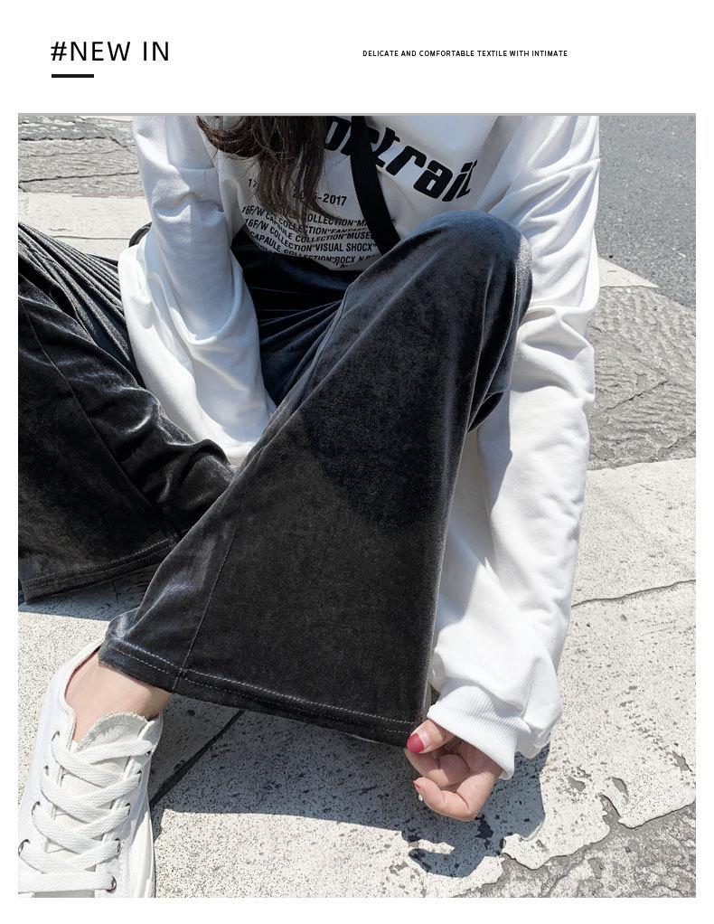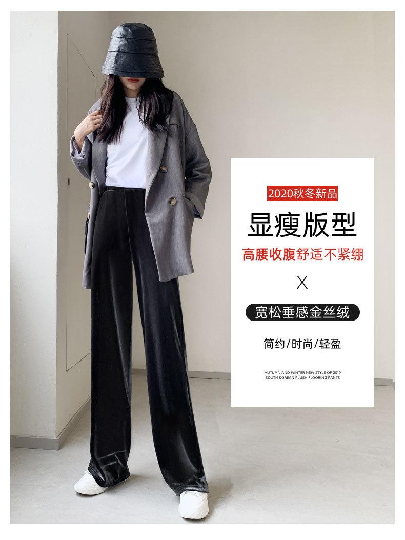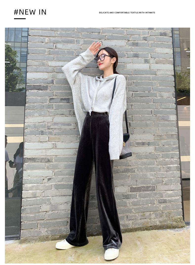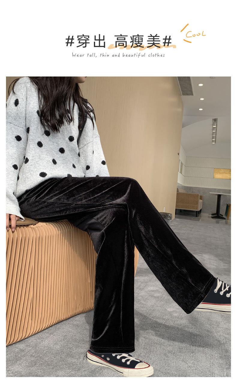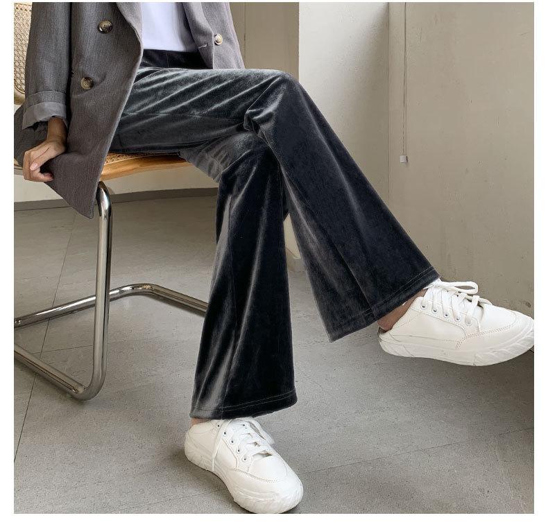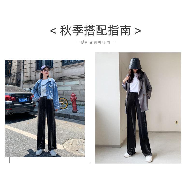 Pantalones de Terciopelo Dorado de Pierna Ancha para Mujer 2025 Nuevo Primavera y Otoño Cintura Alta Drapeado Recto Casual de Alta Gama Negro Pantalones Deportivos
