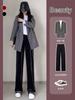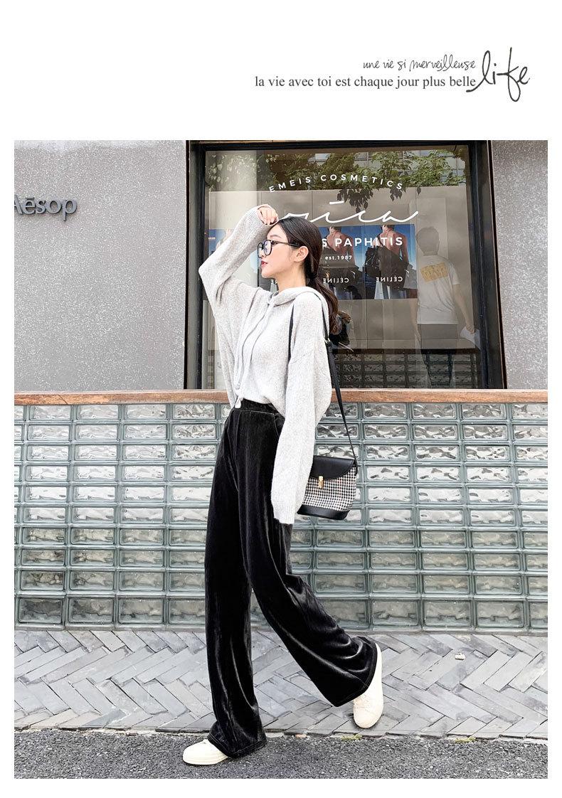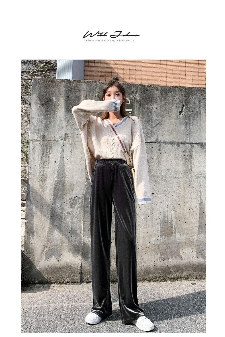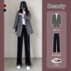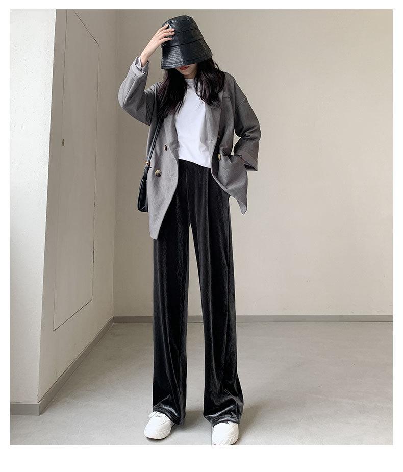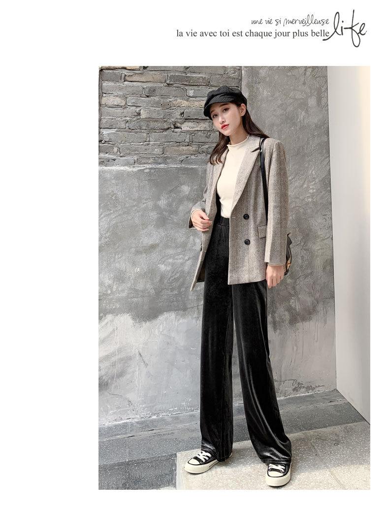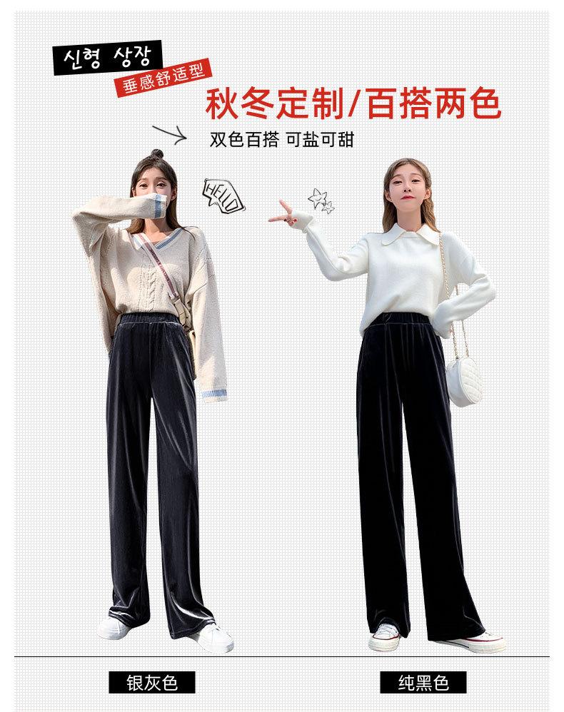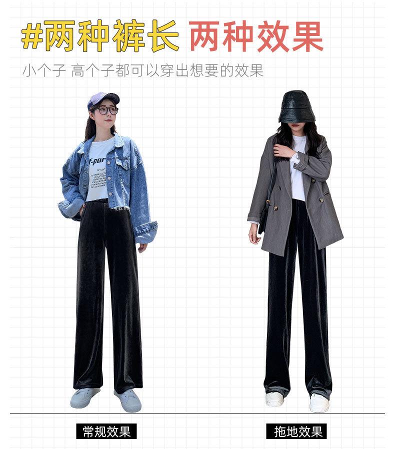 Pantalones de Terciopelo Dorado de Pierna Ancha para Mujer 2025 Nuevo Primavera y Otoño Cintura Alta Drapeado Recto Casual de Alta Gama Negro Pantalones Deportivos