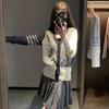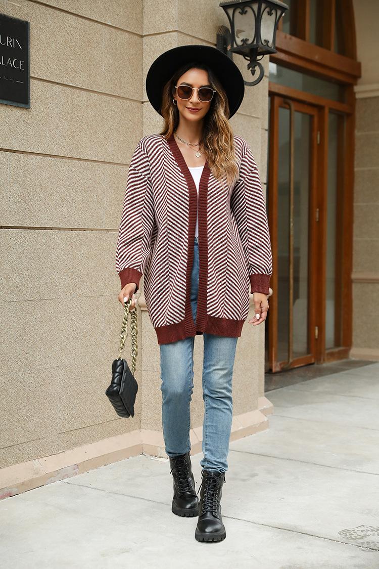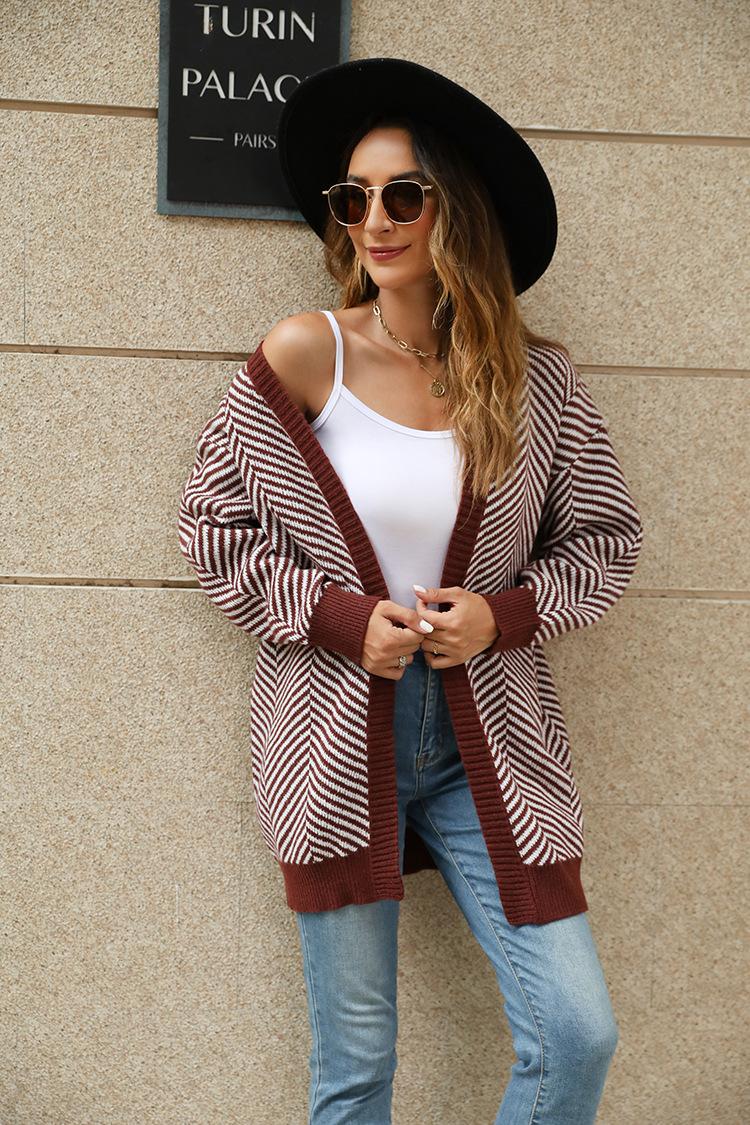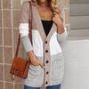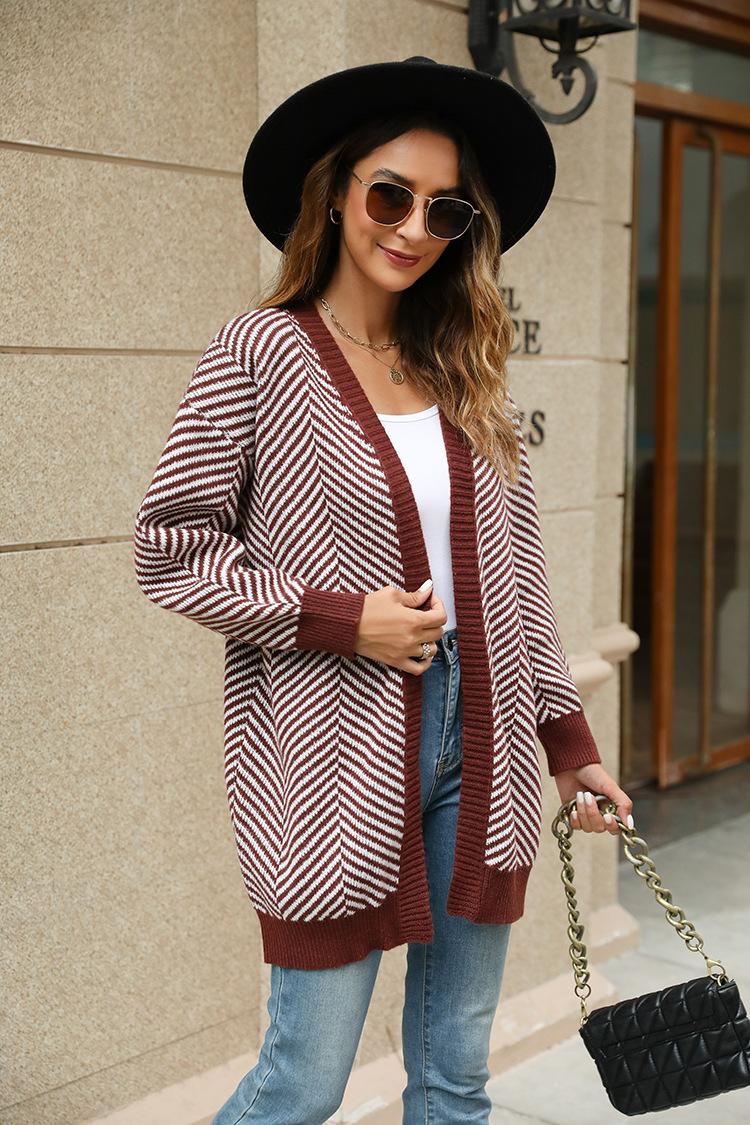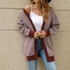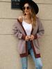 Comercio Exterior Transfronterizo Europa y Estados Unidos Suéter Holgado Largo Abrigo para Mujer Otoño e Invierno Nuevo Viento Perezoso Raya Color en Contraste Cárdigan de Punto