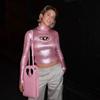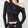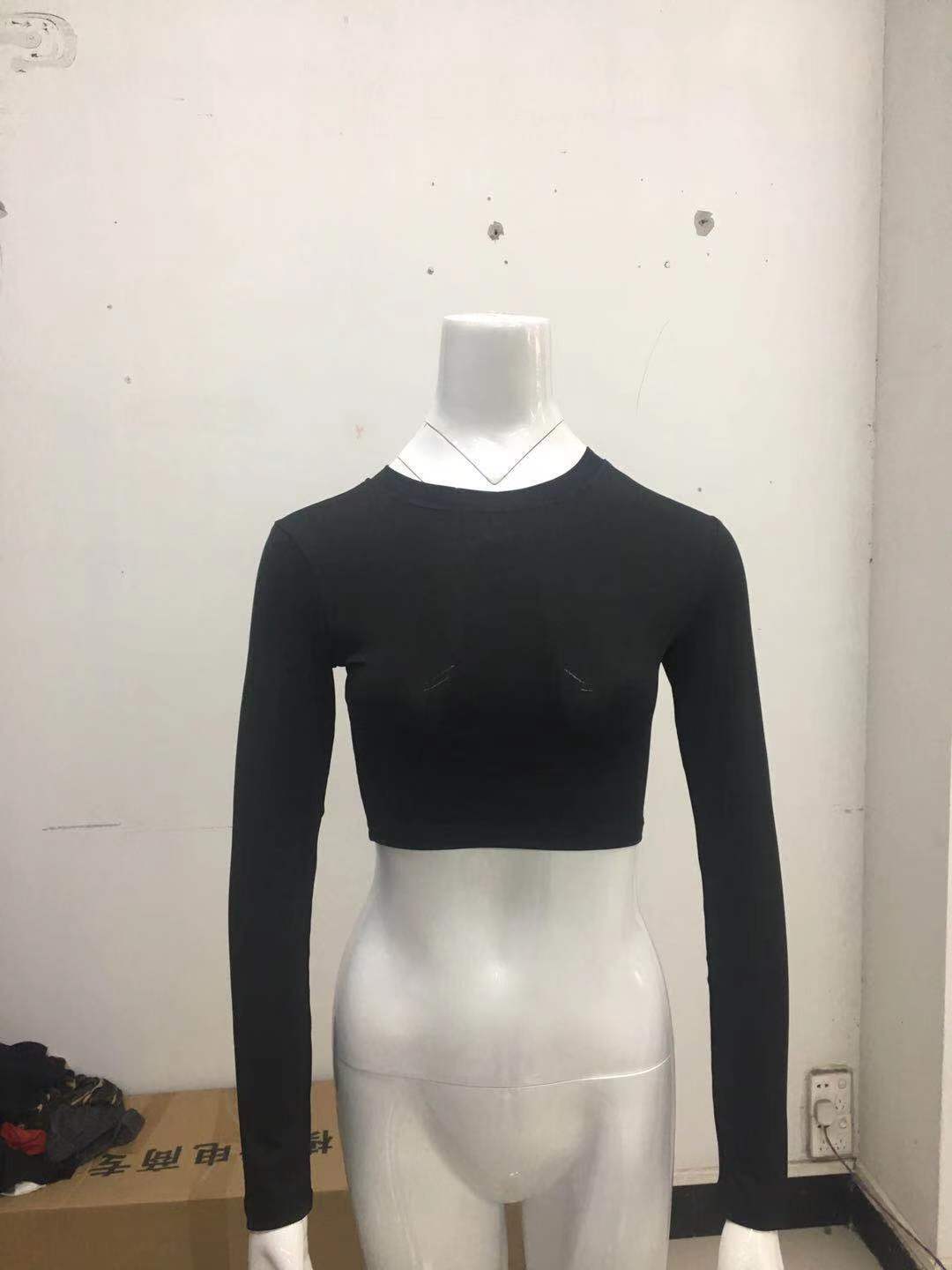 Tendencia de Moda 2025 Ropa de Mujer Más Vendida Primavera y Verano Sexy Color Sólido Cuello Redondo Ajustado Crop Manga Larga Camiseta para Mujer