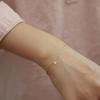 Descripción: Esta es una pulsera pequeña especial. La cadena es una cadena O plana como de costumbre, con un pin en miniatura en el medio, y un pequeño colgante de corazón liso a intervalos, con You&I grabado en él, que significa "conectándote a ti y a mí juntos". En general, se ve bien.