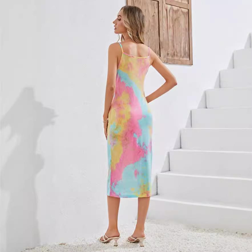 Vestido de Tirantes Estilo Bohemio de Verano 2024 de Tendencia Europea y Americana Más Vendido Estampado Sin Mangas Largo Medio