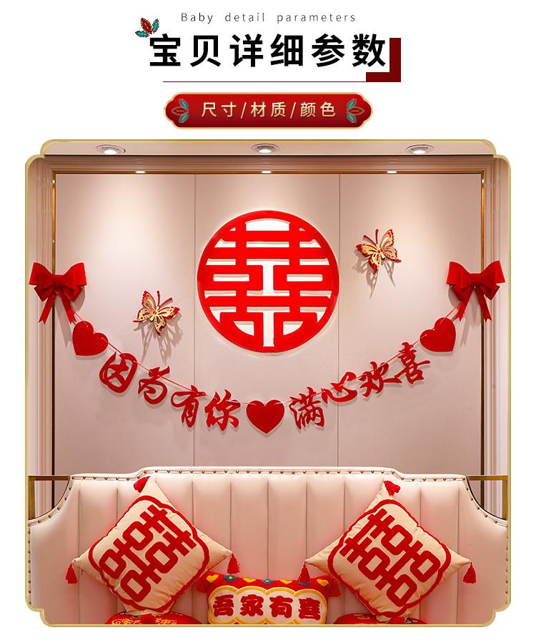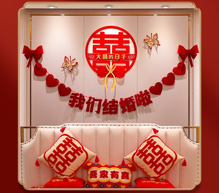 ◆ Happy wedding - red velvet heart joyful bow garland set