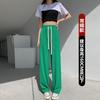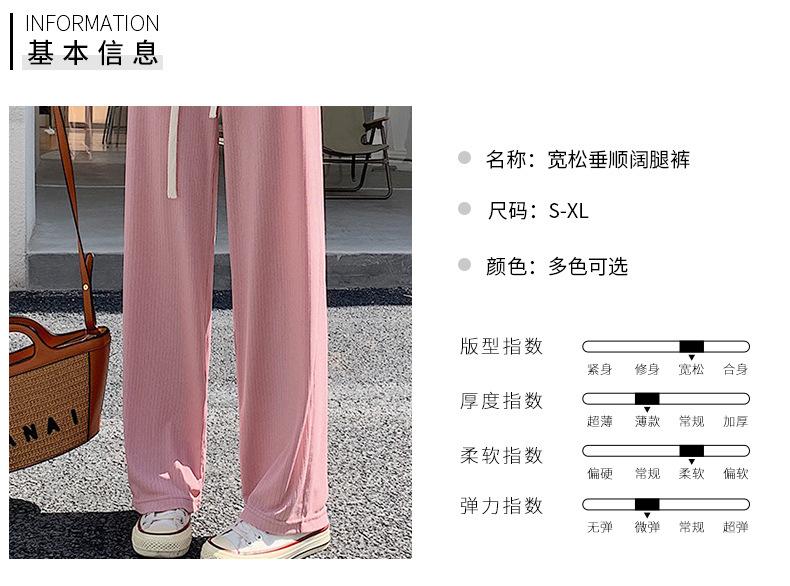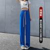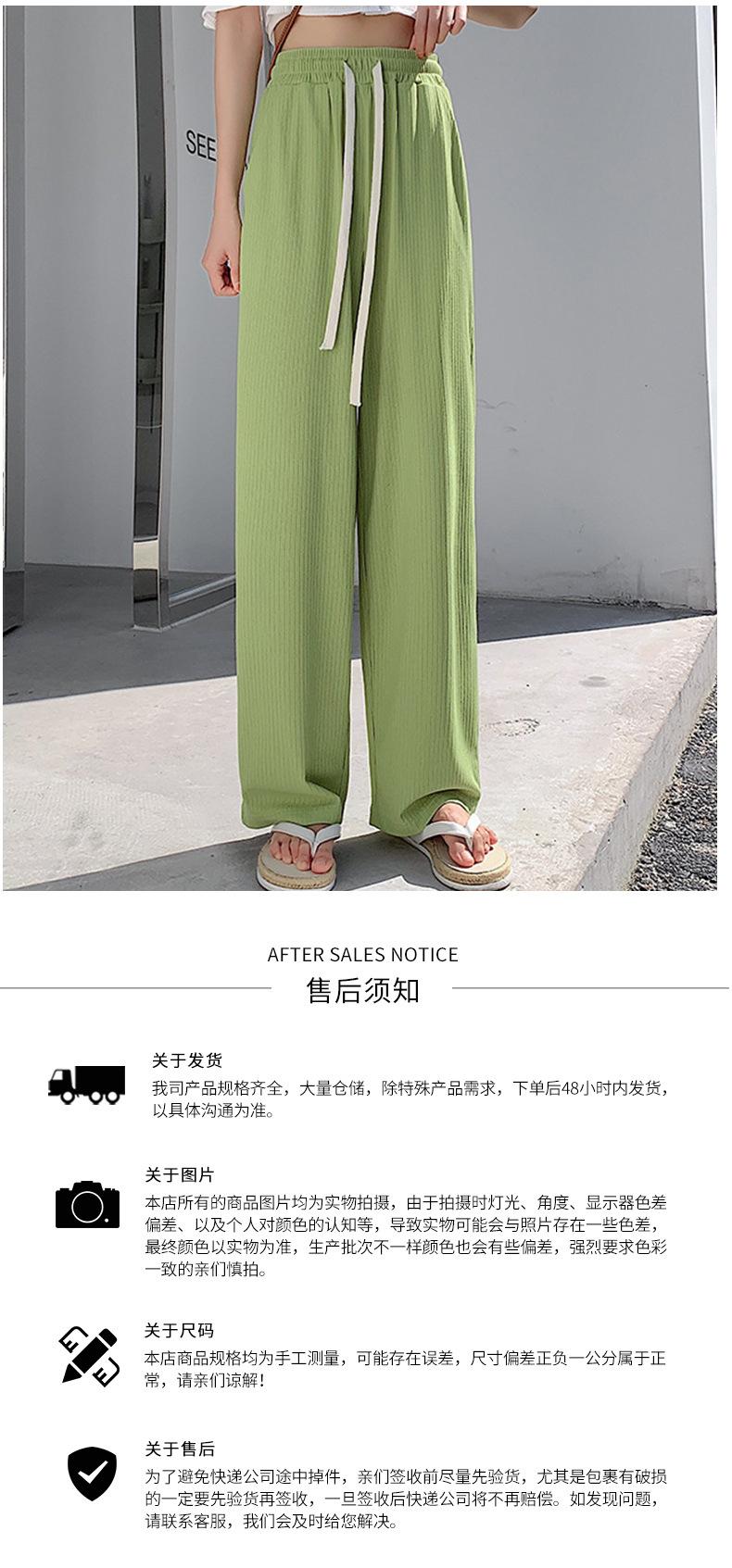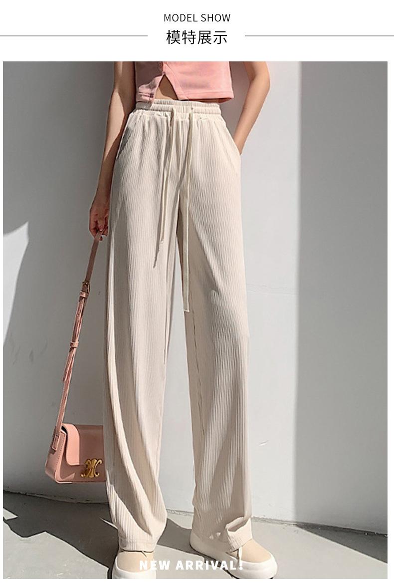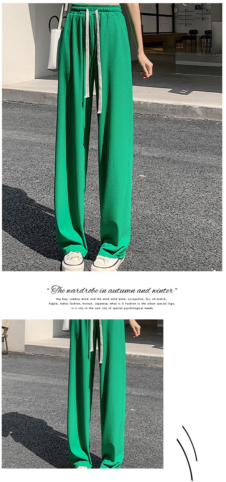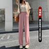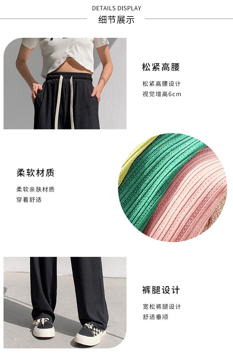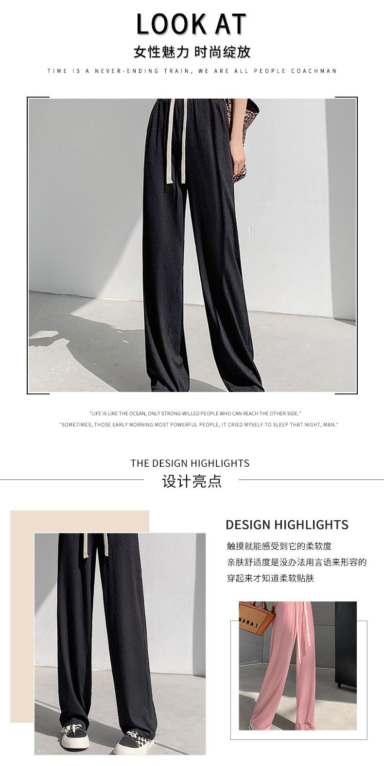 Pantalones casuales de seda de hielo rectos con cintura holgada y cuerda para mujer, pantalones deportivos de cintura alta y pierna ancha de verano
