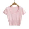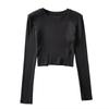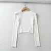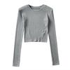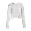 YPFF - Nuevo jersey de otoño con cuello redondo, manga larga, abertura delantera y trasera pequeña para mujer, camiseta corta ajustada de color liso para mujer