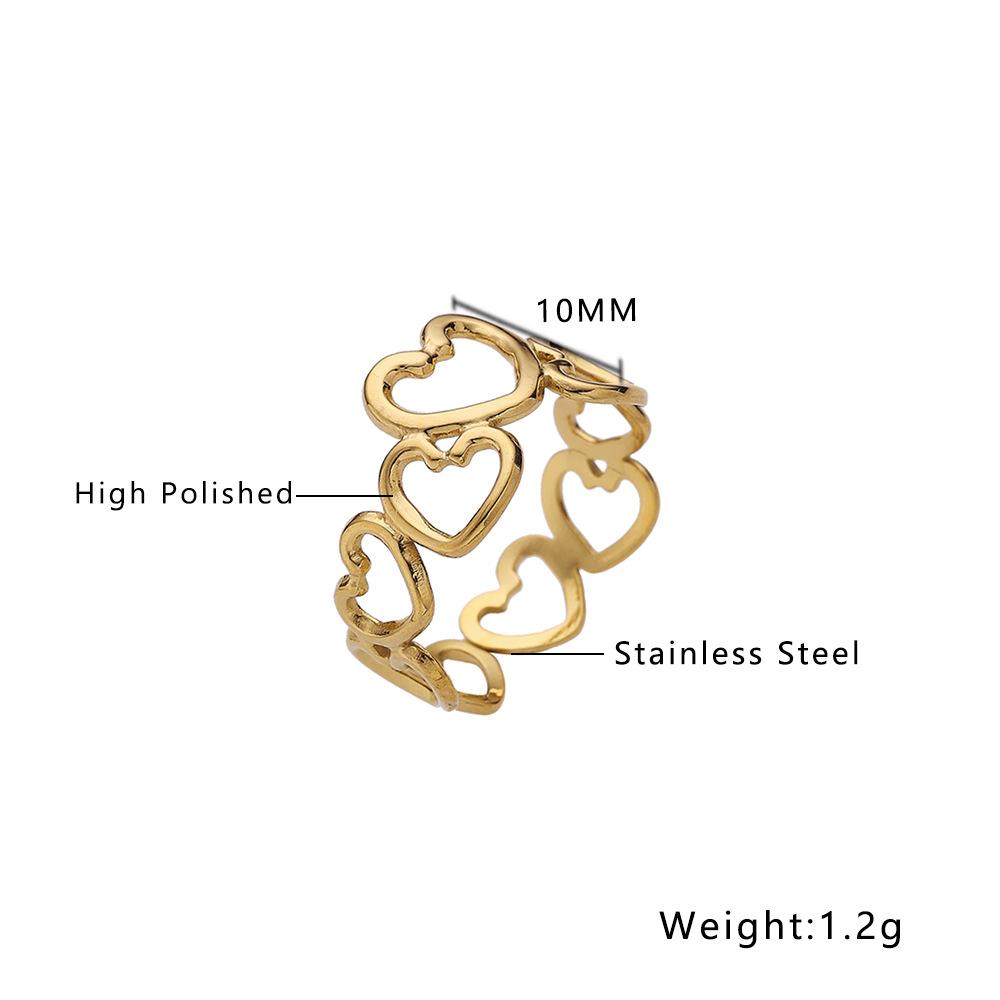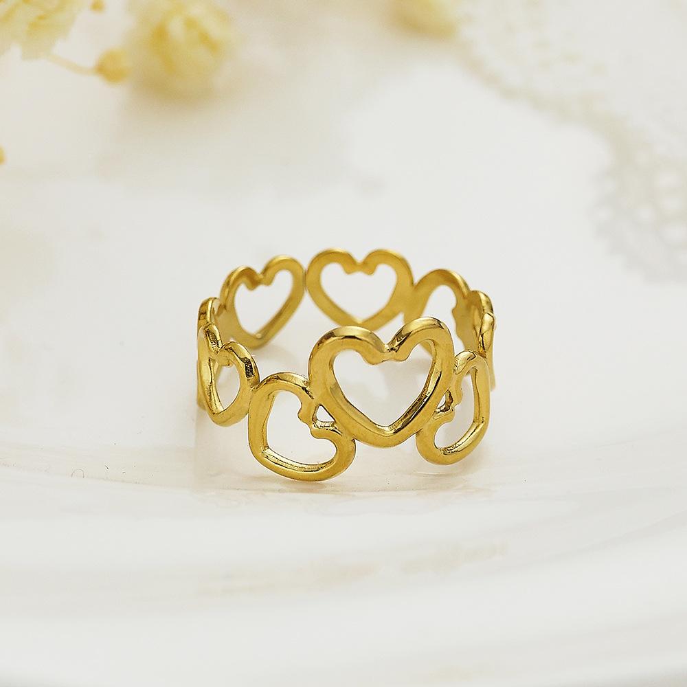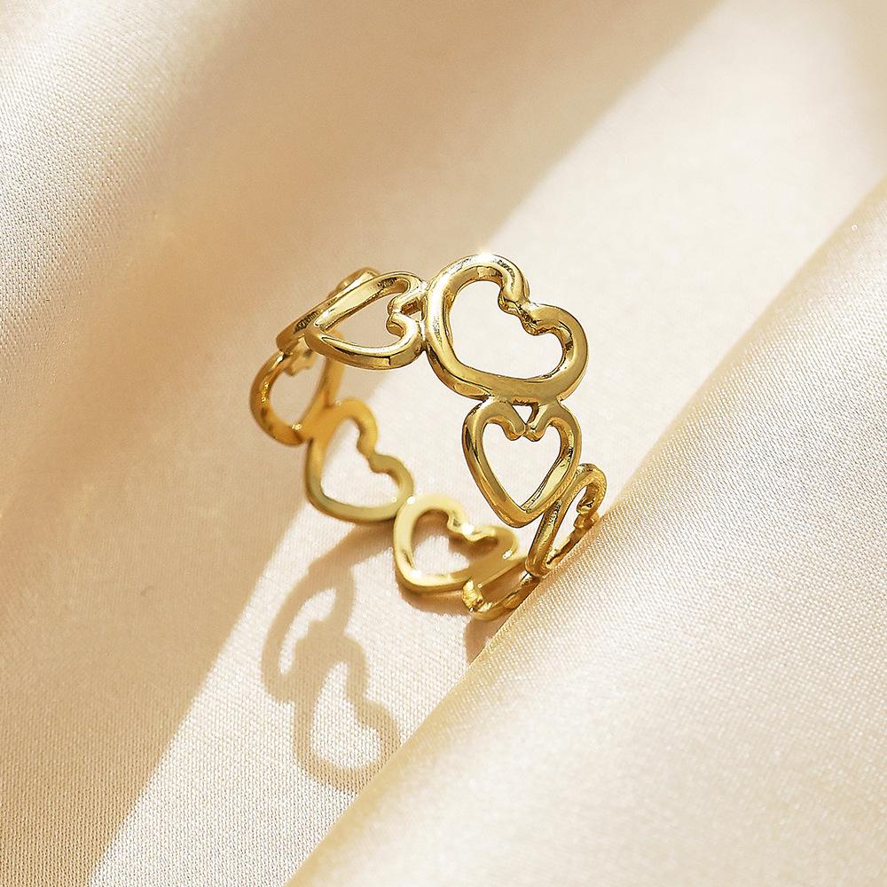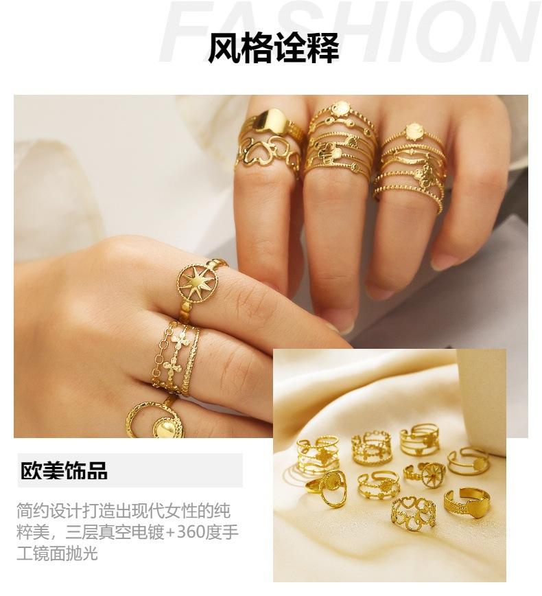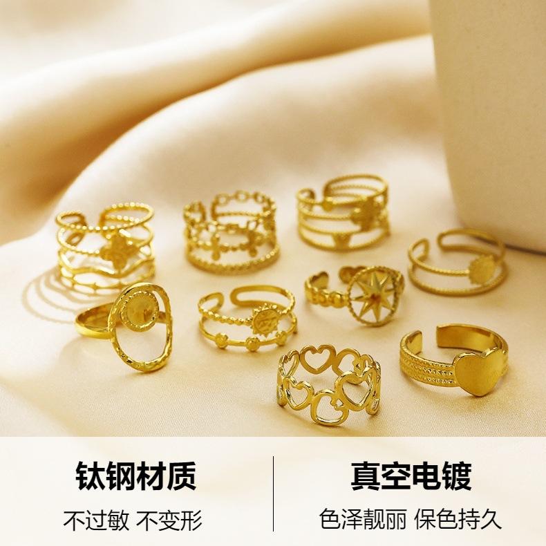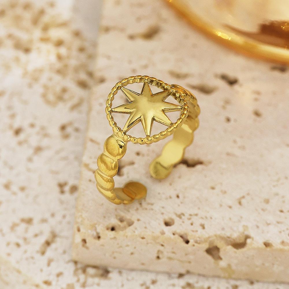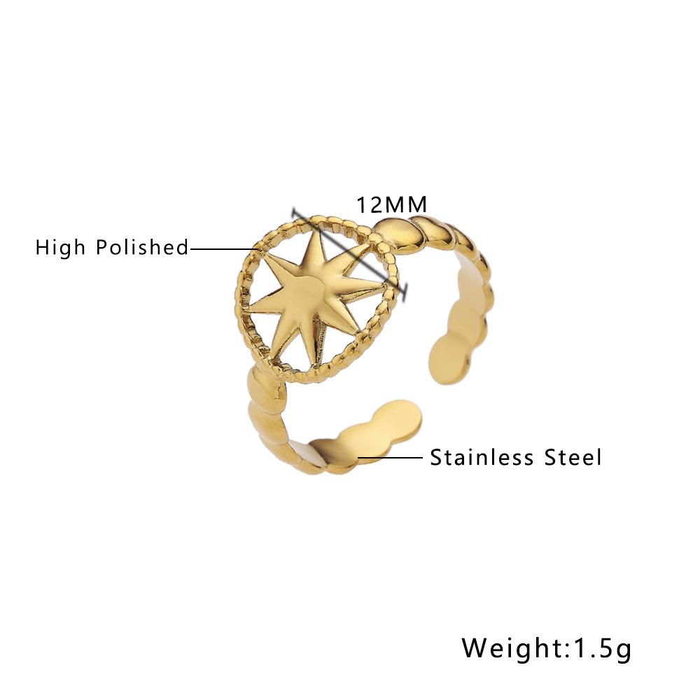 Anillo Europeo y Americano Estilo Ins de Acero Inoxidable Chapado en Oro de 18K Anillo Abierto Versátil Corazón Estrella de Ocho Puntas Anillo de Acero Titanio para Mujer