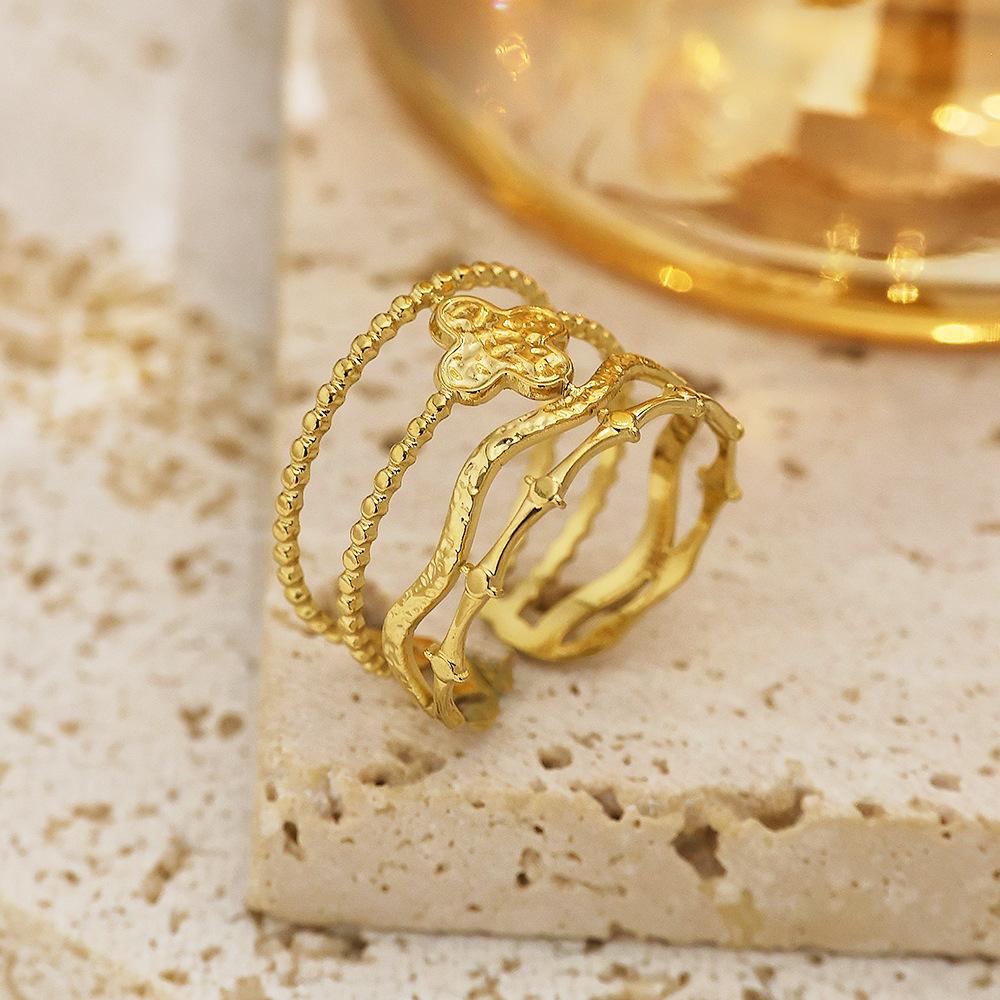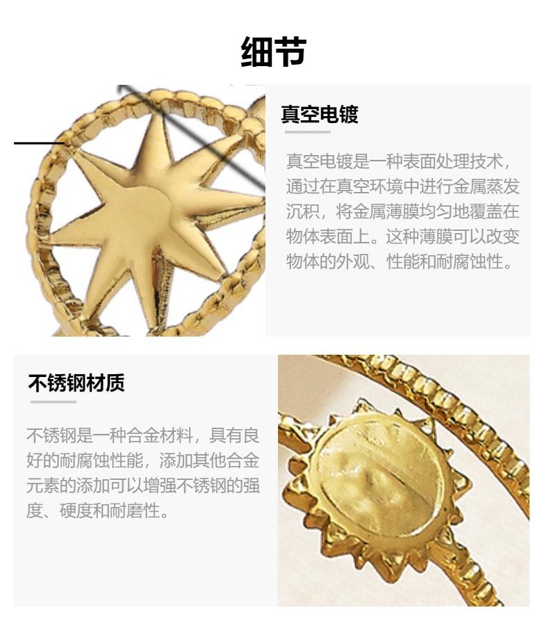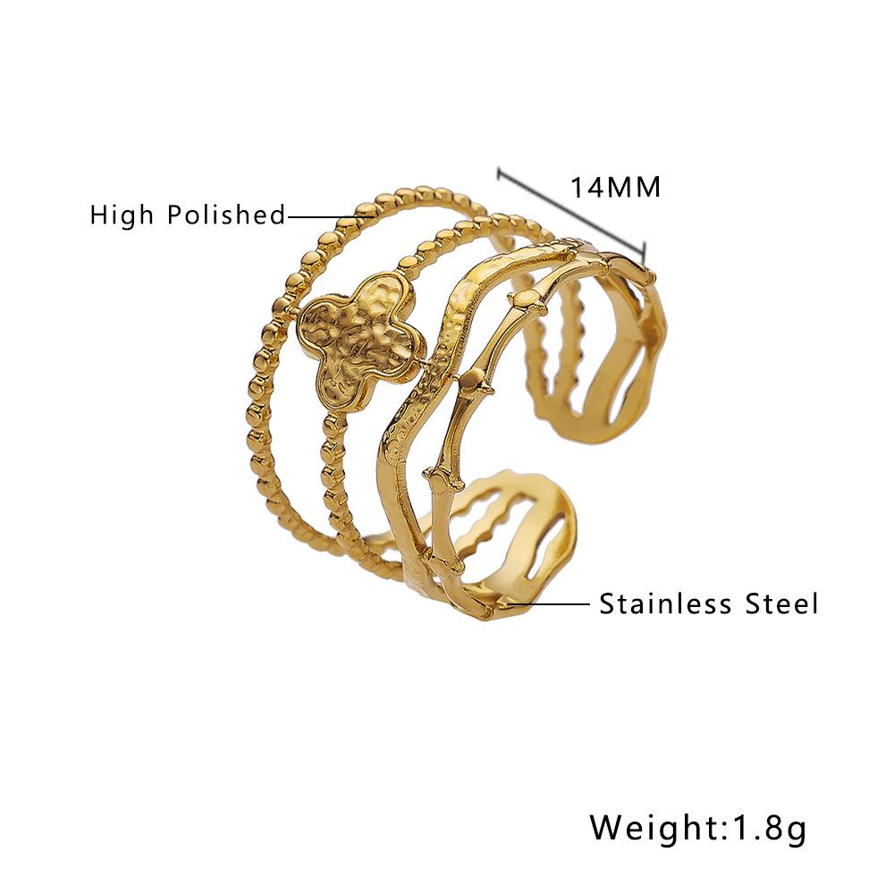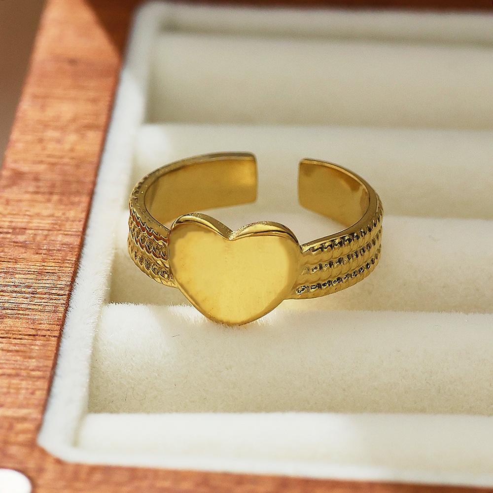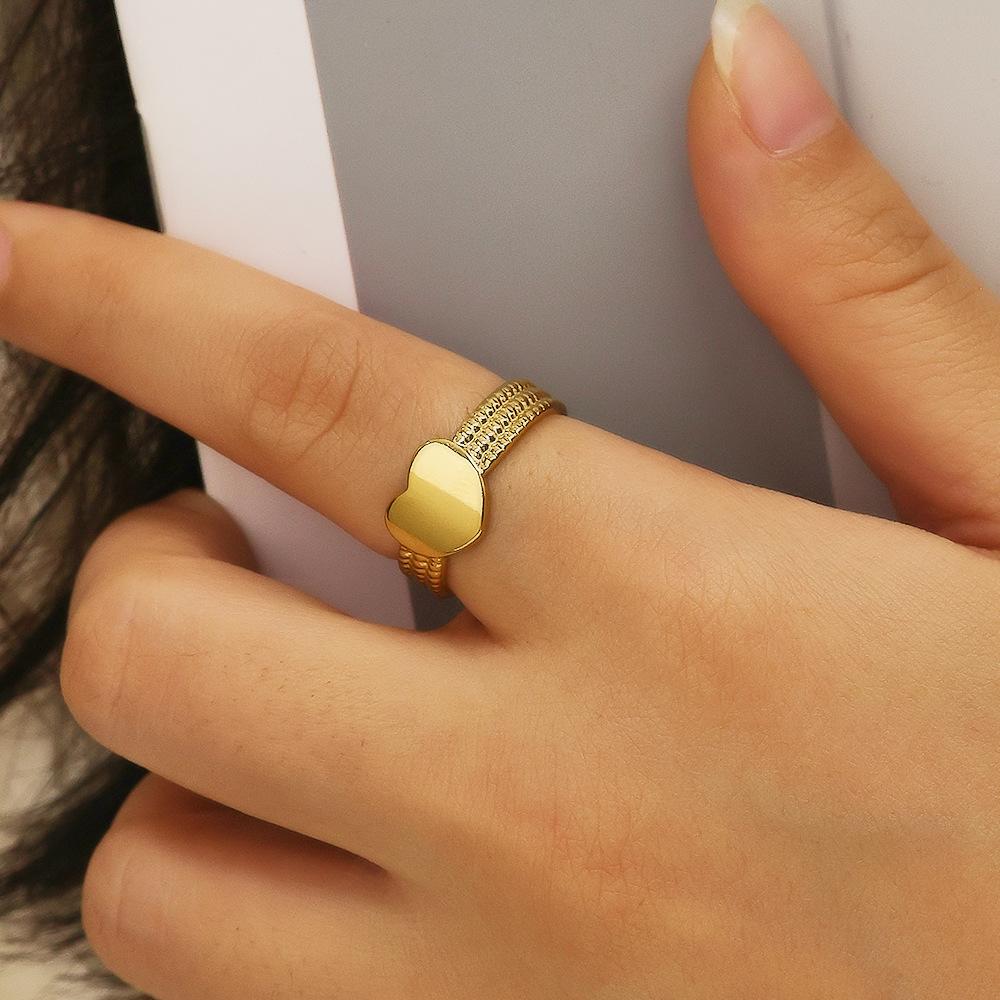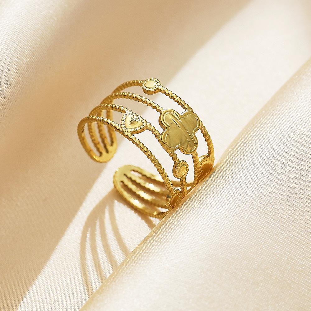 Anillo Europeo y Americano Estilo Ins de Acero Inoxidable Chapado en Oro de 18K Anillo Abierto Versátil Corazón Estrella de Ocho Puntas Anillo de Acero Titanio para Mujer