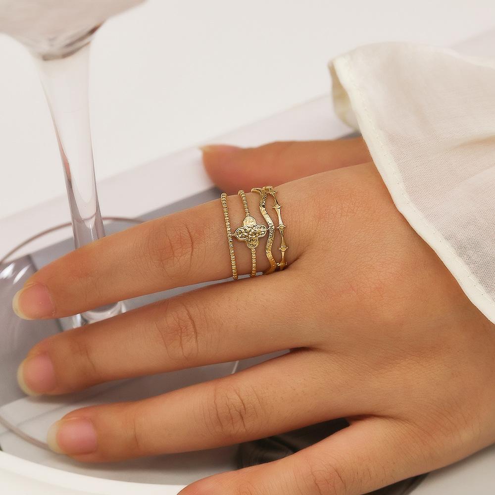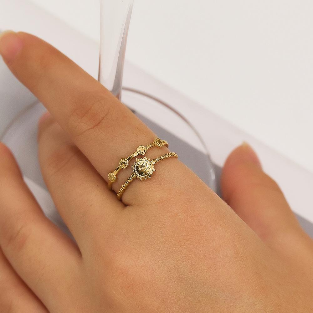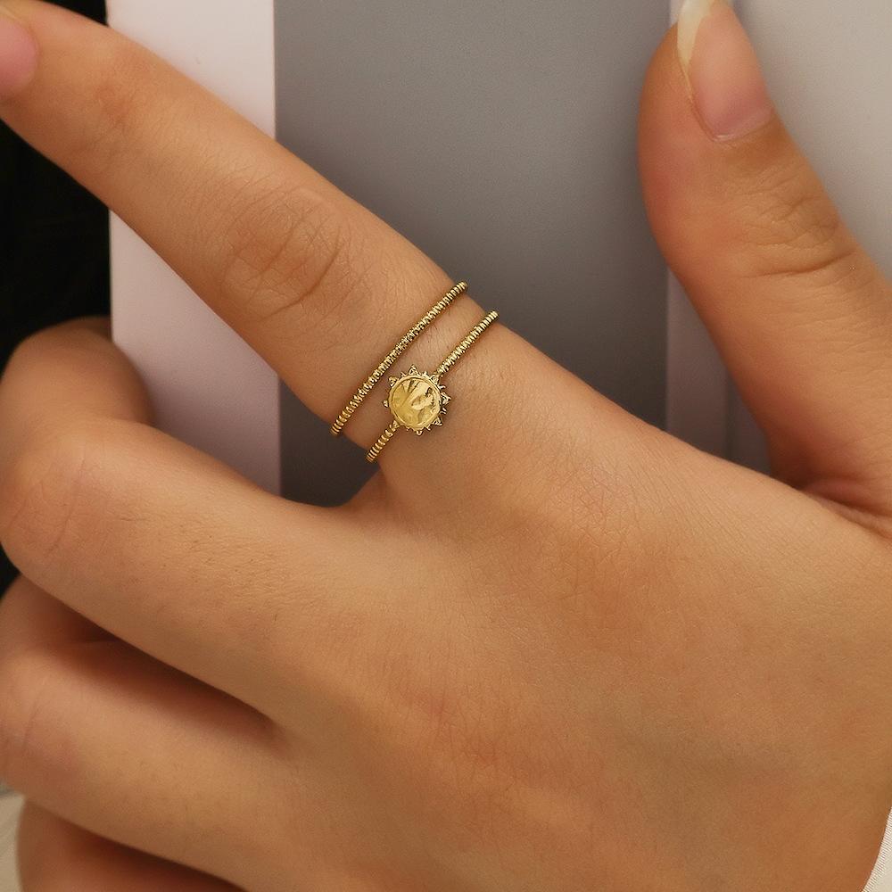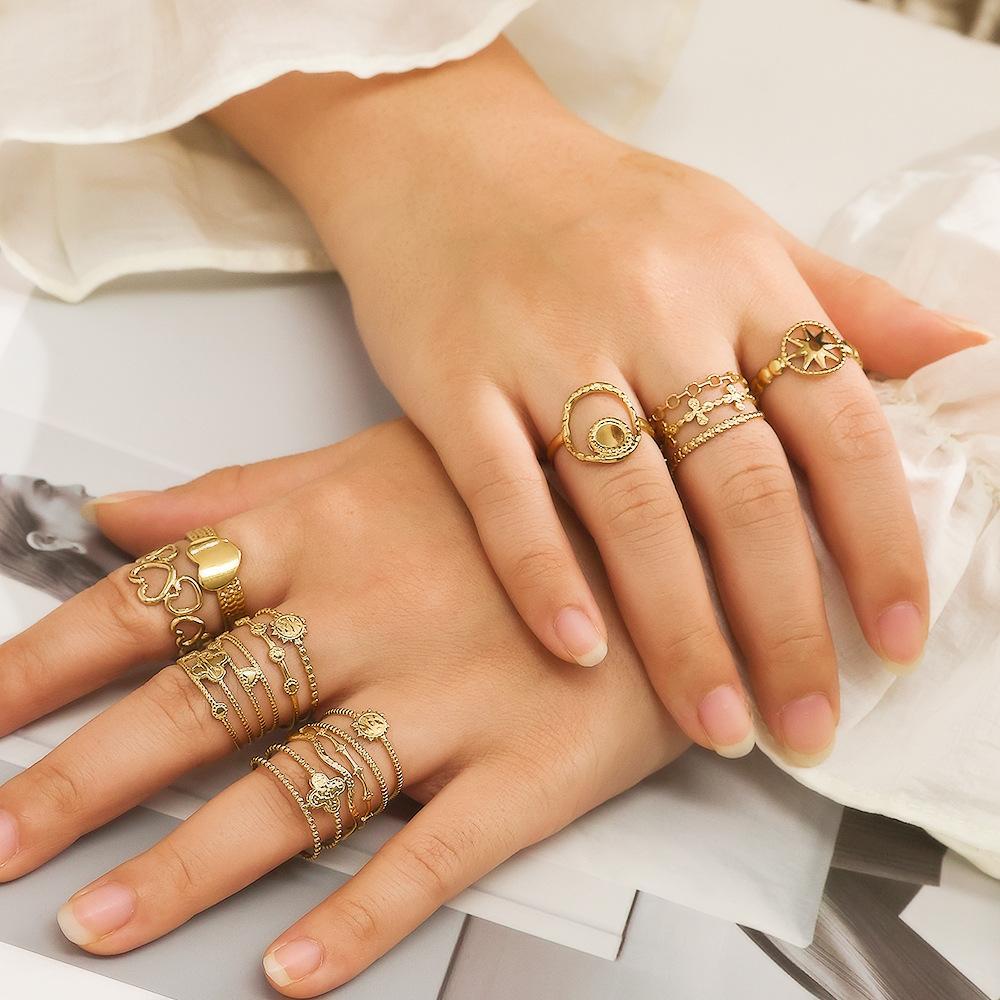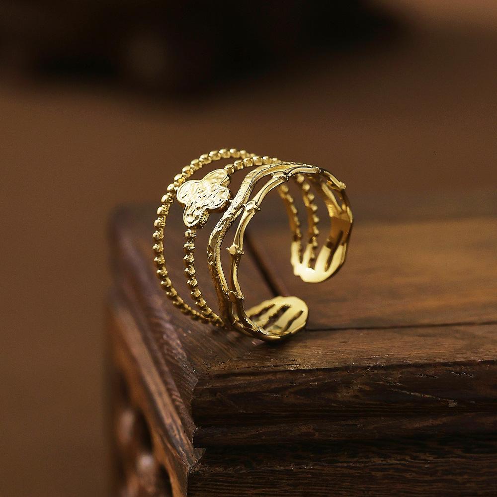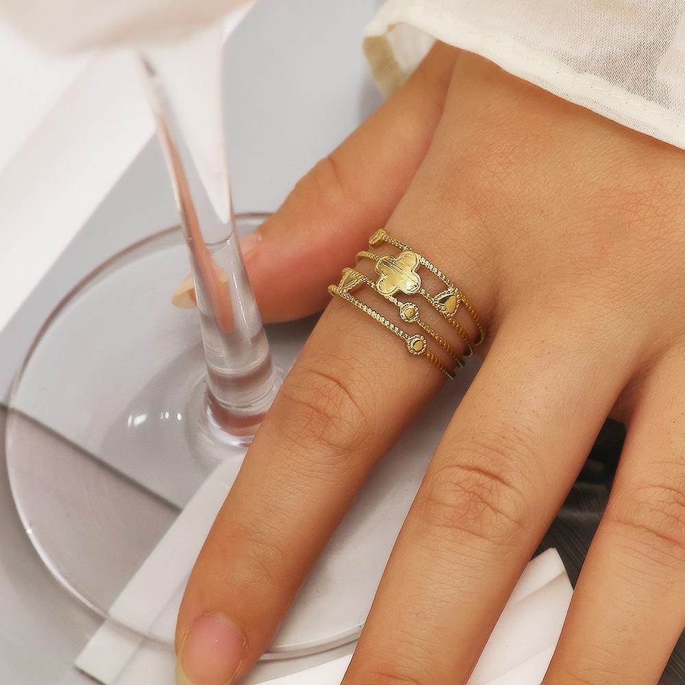 Anillo Europeo y Americano Estilo Ins de Acero Inoxidable Chapado en Oro de 18K Anillo Abierto Versátil Corazón Estrella de Ocho Puntas Anillo de Acero Titanio para Mujer