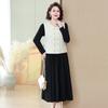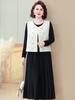 Vestido para Madre Qiao Yaying Vestido de Dos Piezas Vestido de Otoño Falda Plisada por Encima de la Rodilla Talla Grande para Mujeres de Mediana Edad y Mayores Abrigo