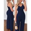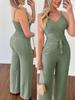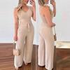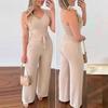 Traje informal de verano 2023, estilo europeo y americano, sexy, corto, sin espalda, con tirantes, cuello en V, con cordones y cintura alta, pantalones rectos