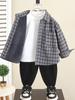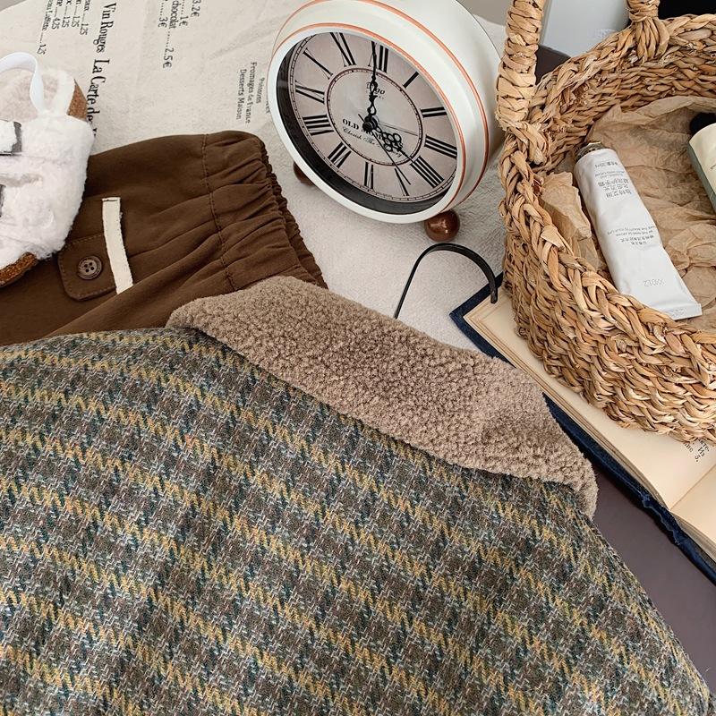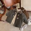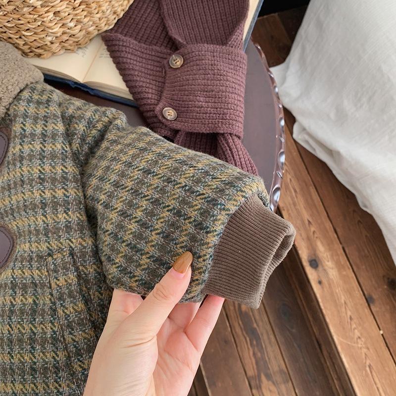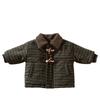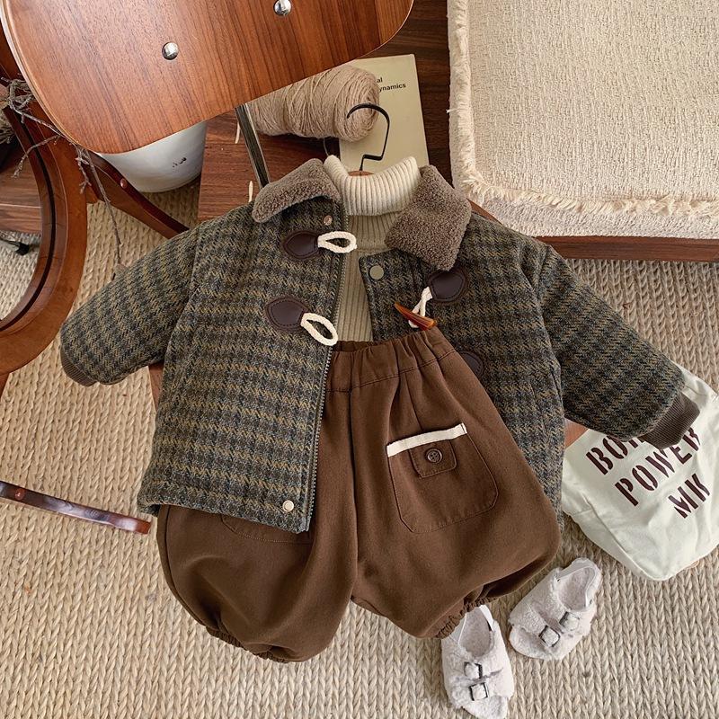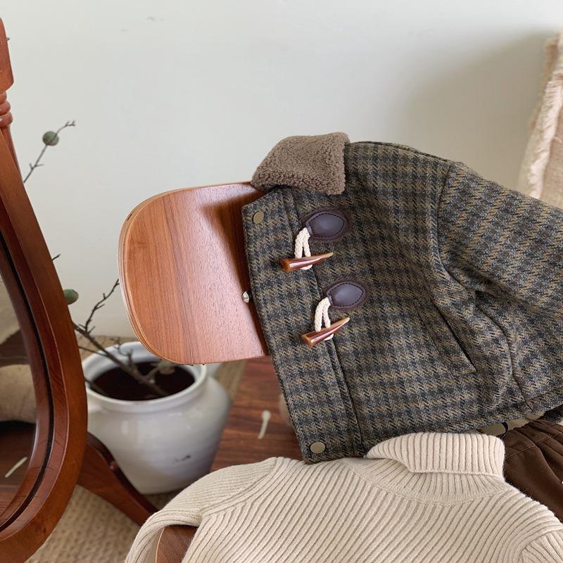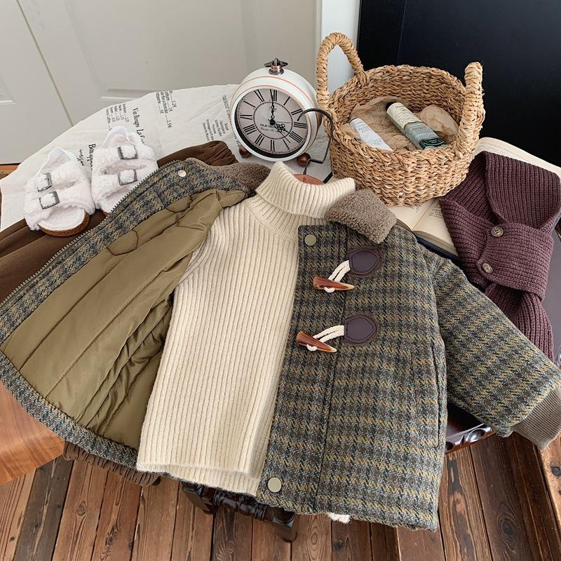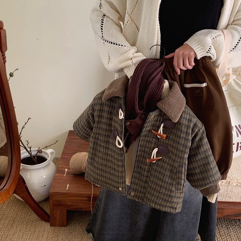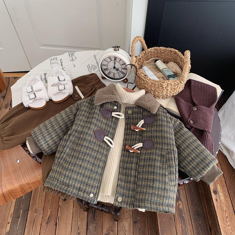Ropa para niños 2023, abrigo de lana con hebilla de cuerno para niños, abrigo acolchado a cuadros para niños, abrigo cálido para bebés, otoño e invierno, parte superior gruesa