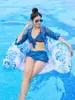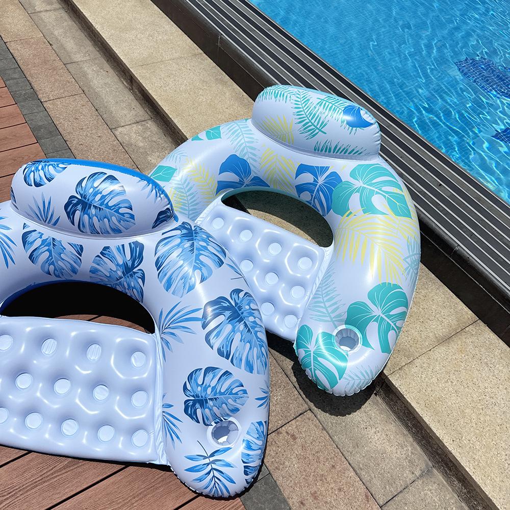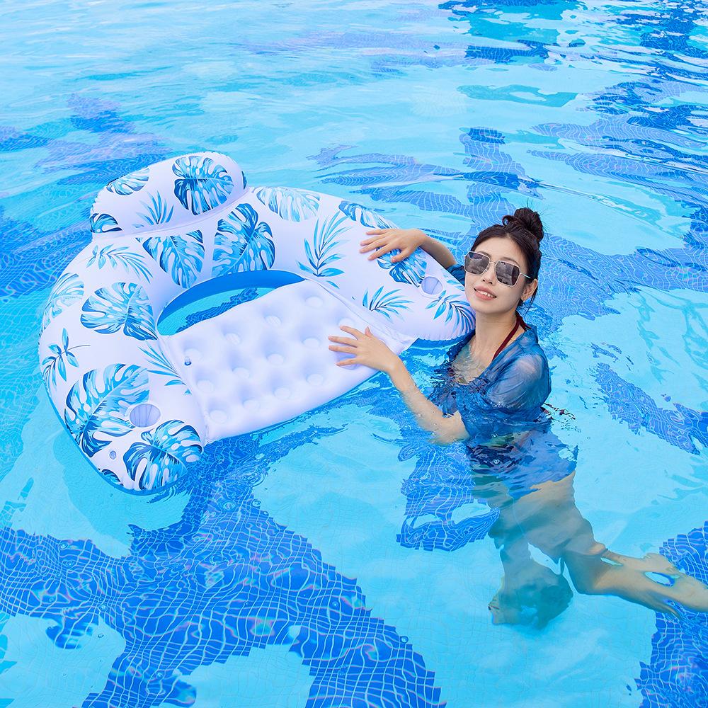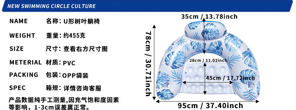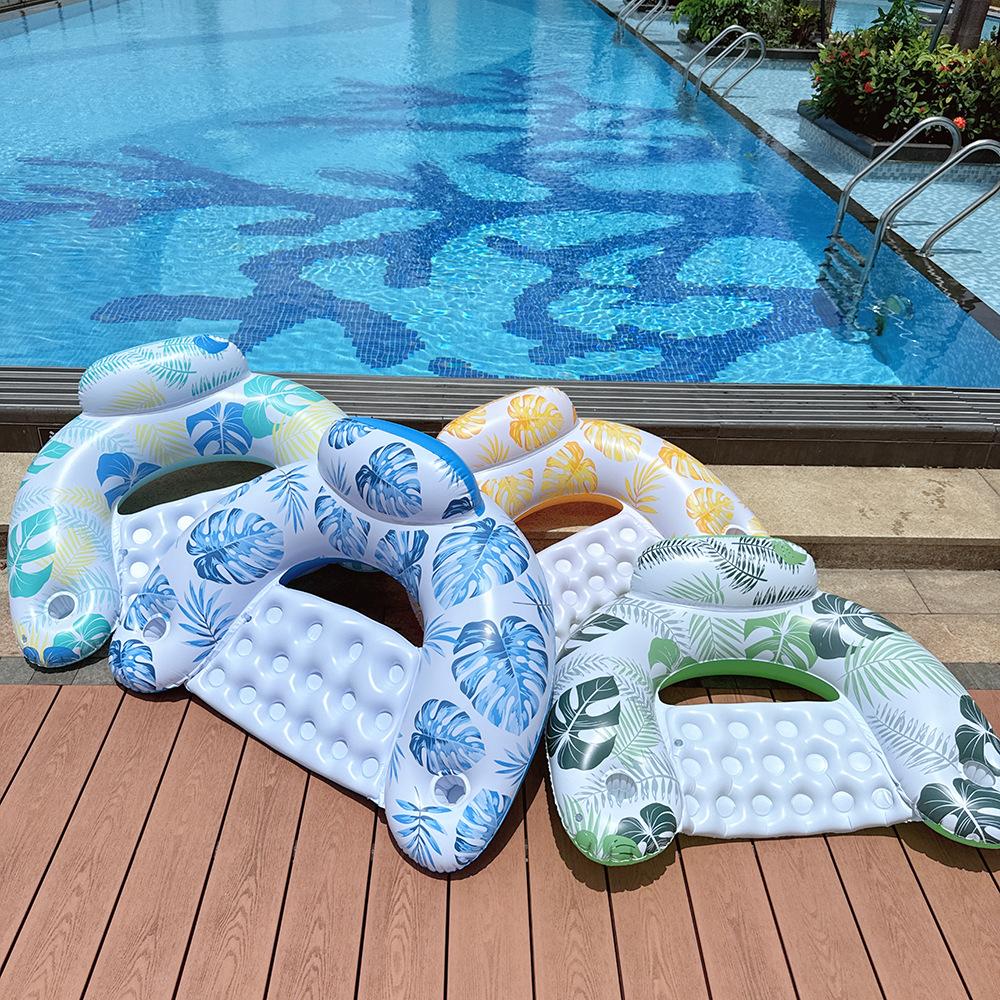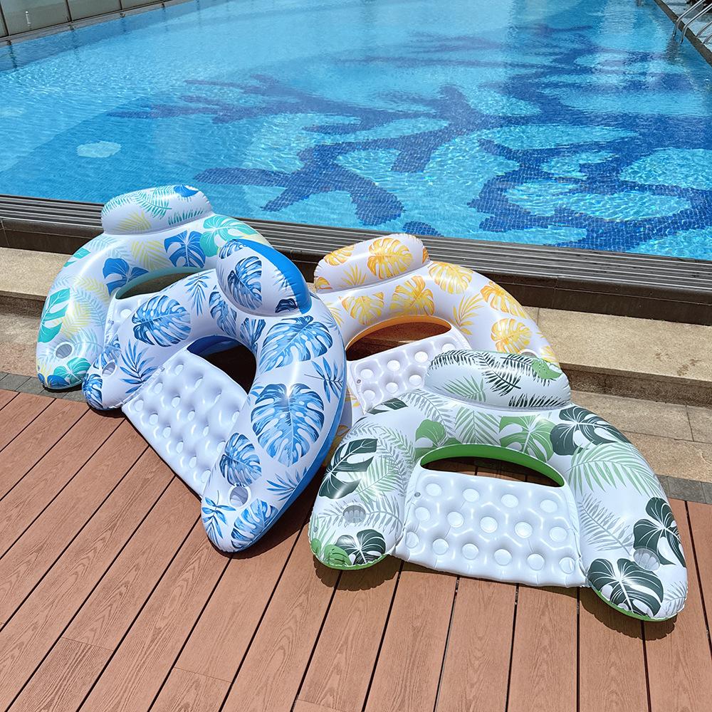 Nuevo Estilo Sillón Reclinable Inflable en Forma de U con Portavasos Hoja Fila Flotante Inflable Sofá Acuático para Adultos Engrosado Respaldo Hoja de Arce