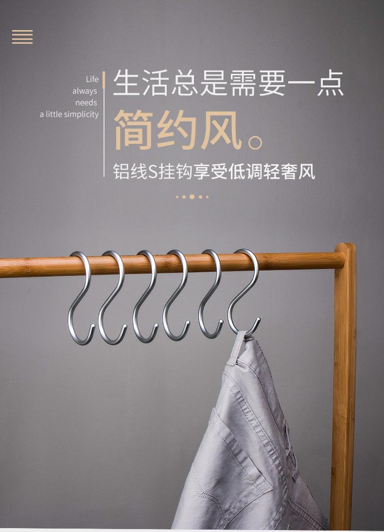 Gancho en forma de S de aleación de aluminio, sin costuras, simple y creativo, para el hogar, cocina, baño, puerta, venta al por mayor