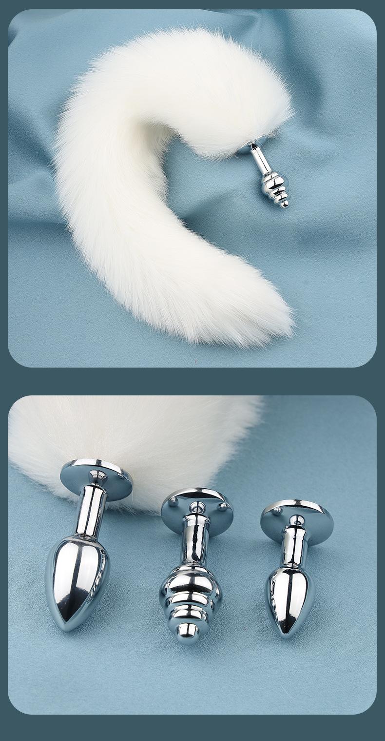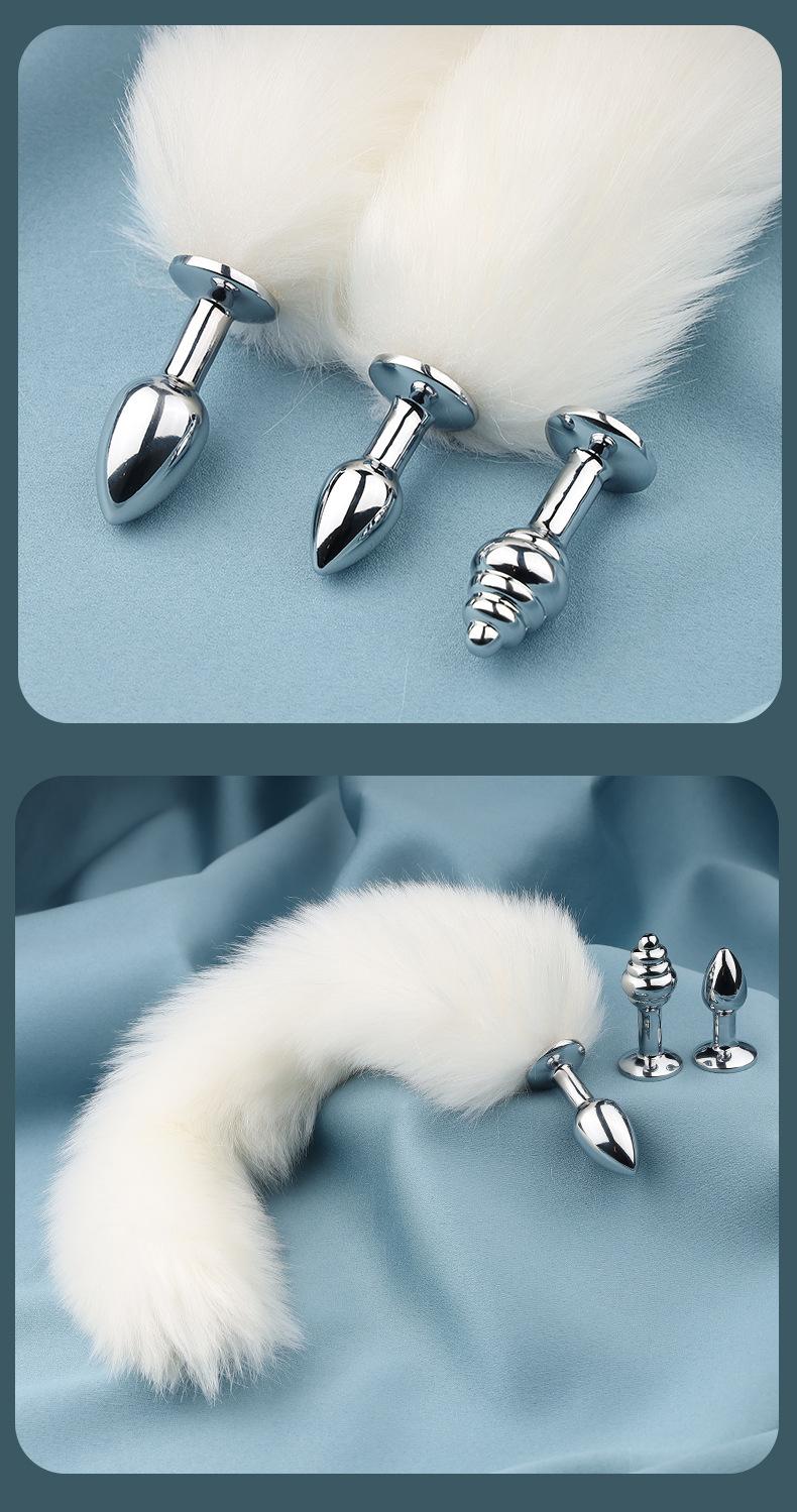 Tapón anal metálico desmontable con forma de cola de zorro, divertido tapón anal de metal plateado, juguete sexual para adultos.