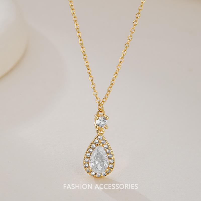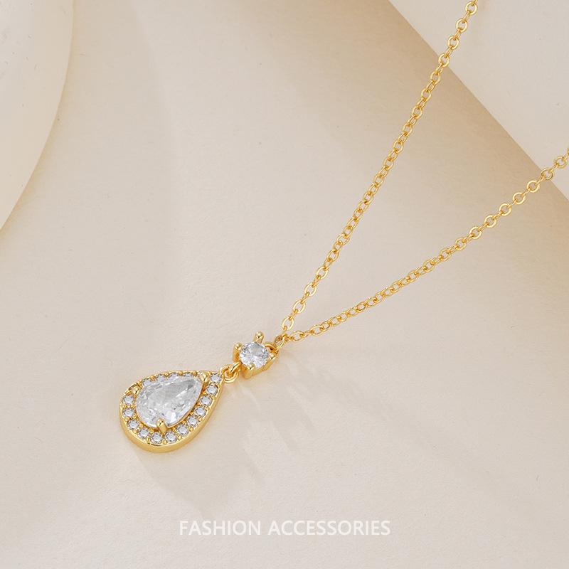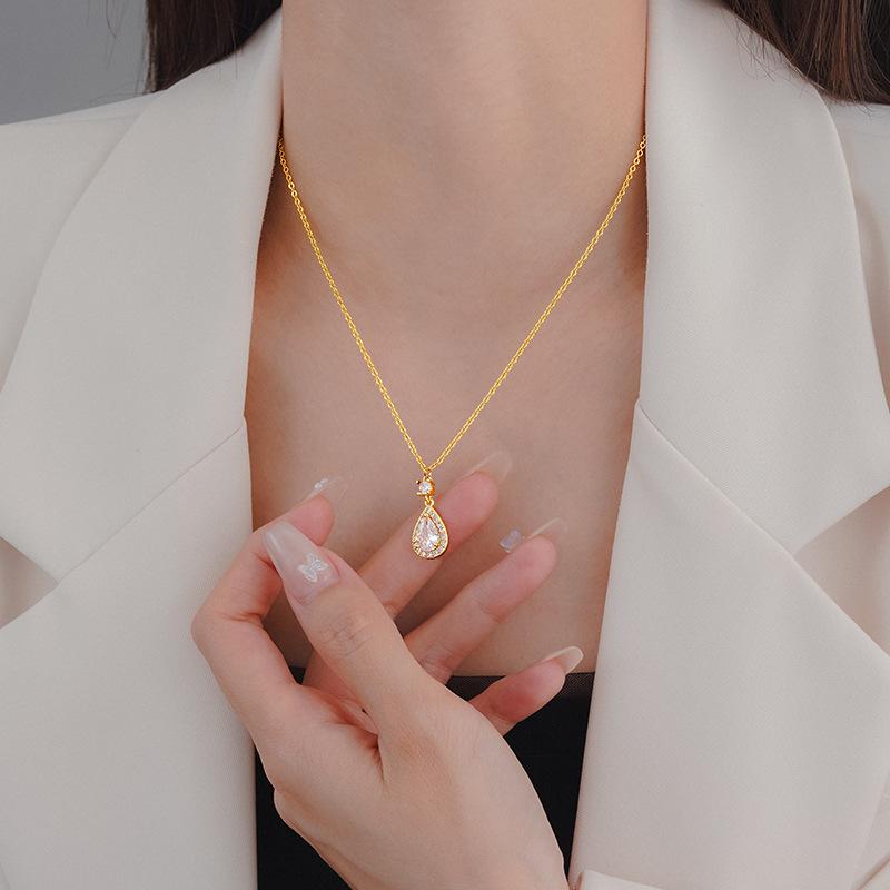 Water drop pendant necklace white gold, Water drop pendant necklace gold color