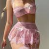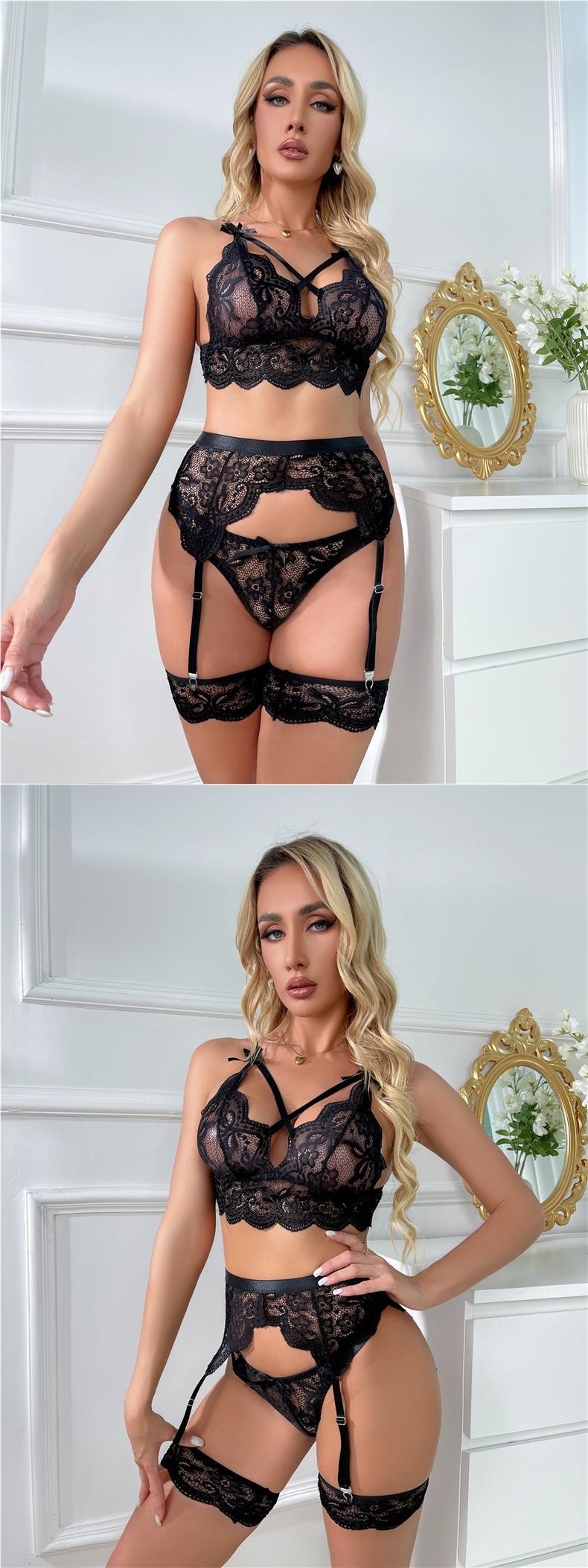 Comercio Exterior Damas Europeo y Americano Verano Nuevo Encaje Empalmado Recorte Liguero Transparente Tentación Sexy Conjunto de Lencería