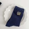Calcetines de Otoño e Invierno Calcetines JK de Mujer Bordados con Insignia de Algodón para Estudiante Calcetines de Tubo Medio para Mujer Estilo Japonés Calcetines Blancos Puros Calcetines Bordados