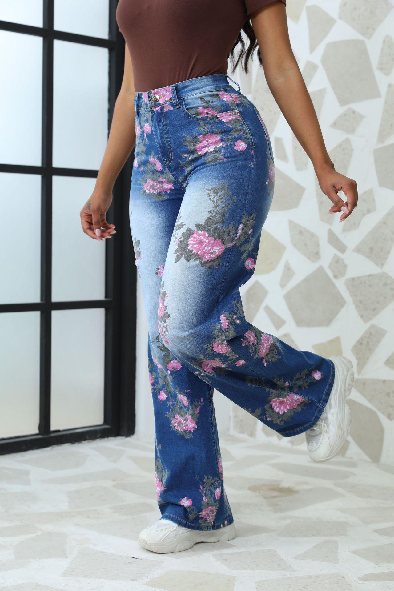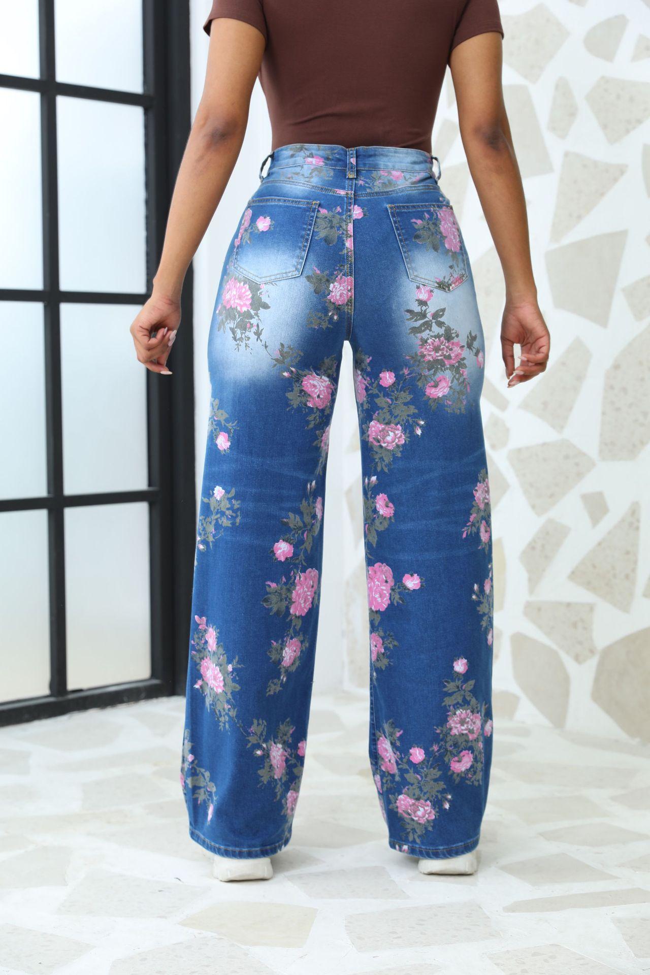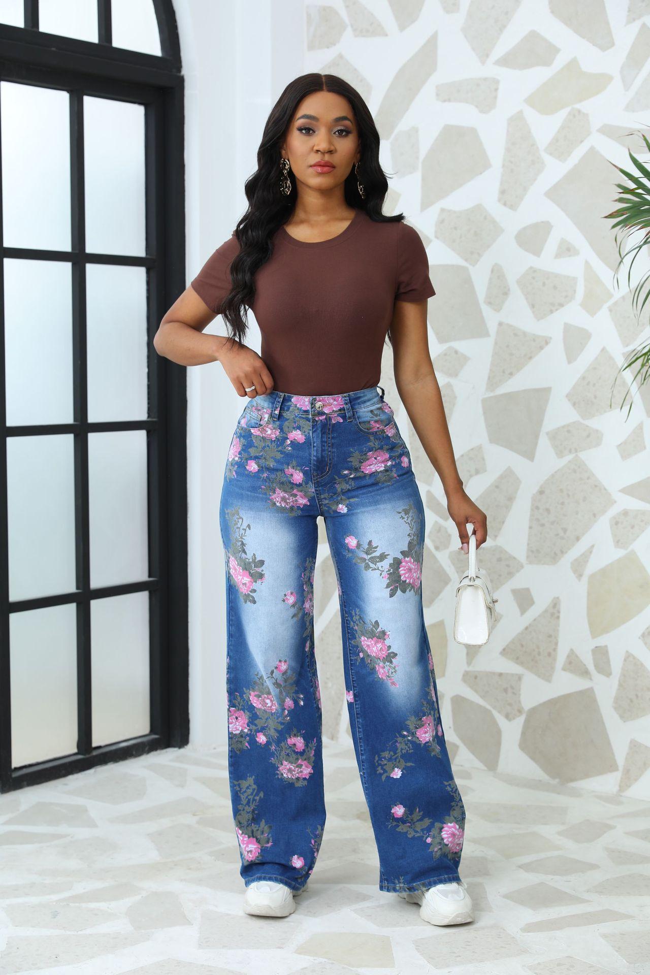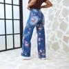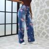 Otoño 2025 Comercio Exterior Transfronterizo Aliexpress Ebay Europeo y Americano Comercio Exterior Estampado Talla Grande Pantalones Pierna Ancha Jeans de Mujer a la Moda