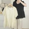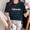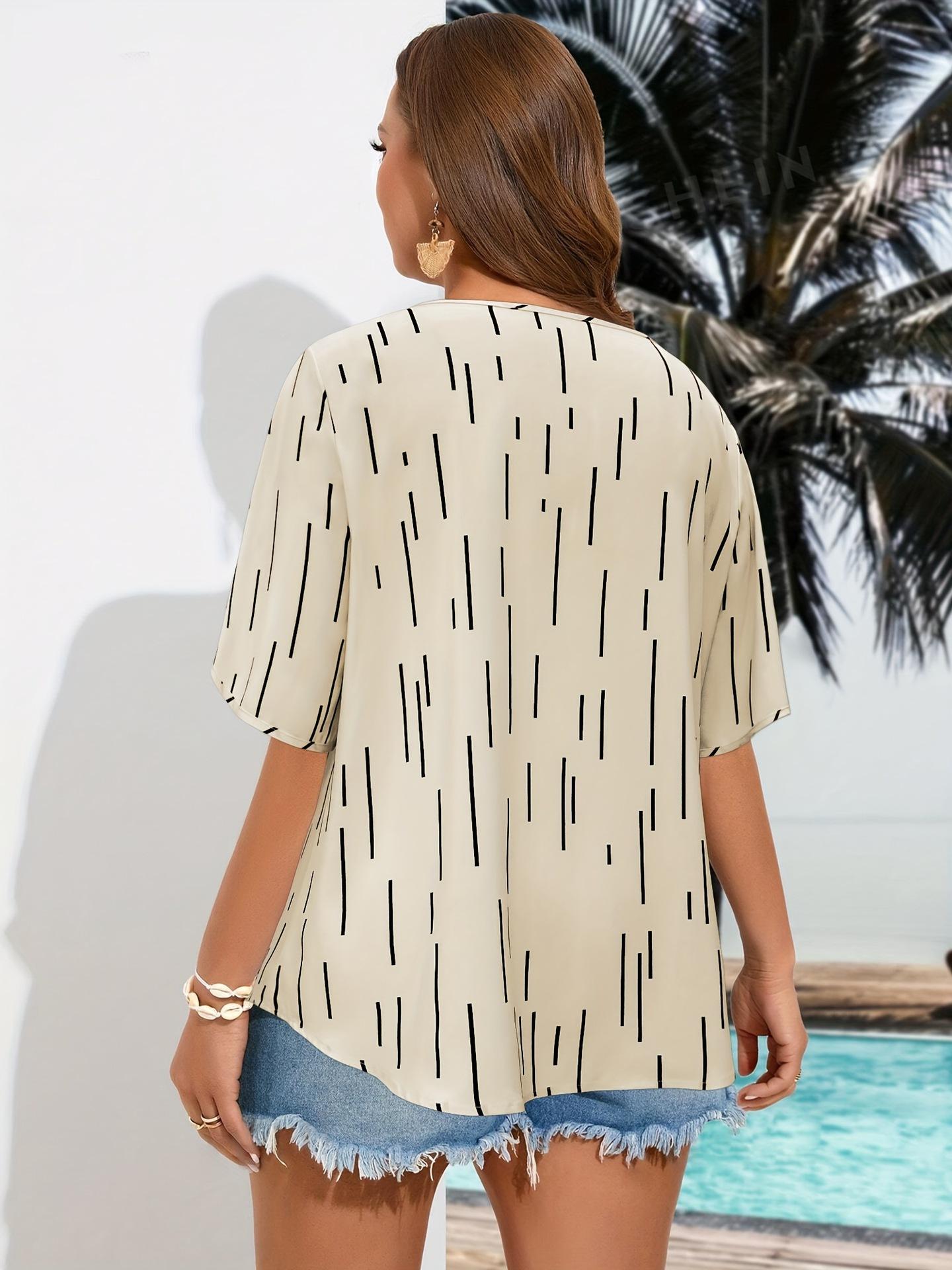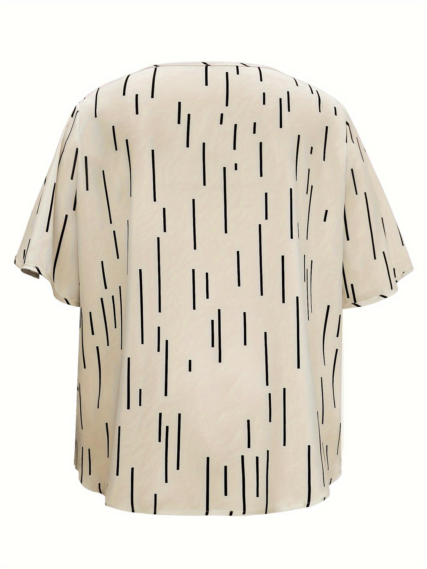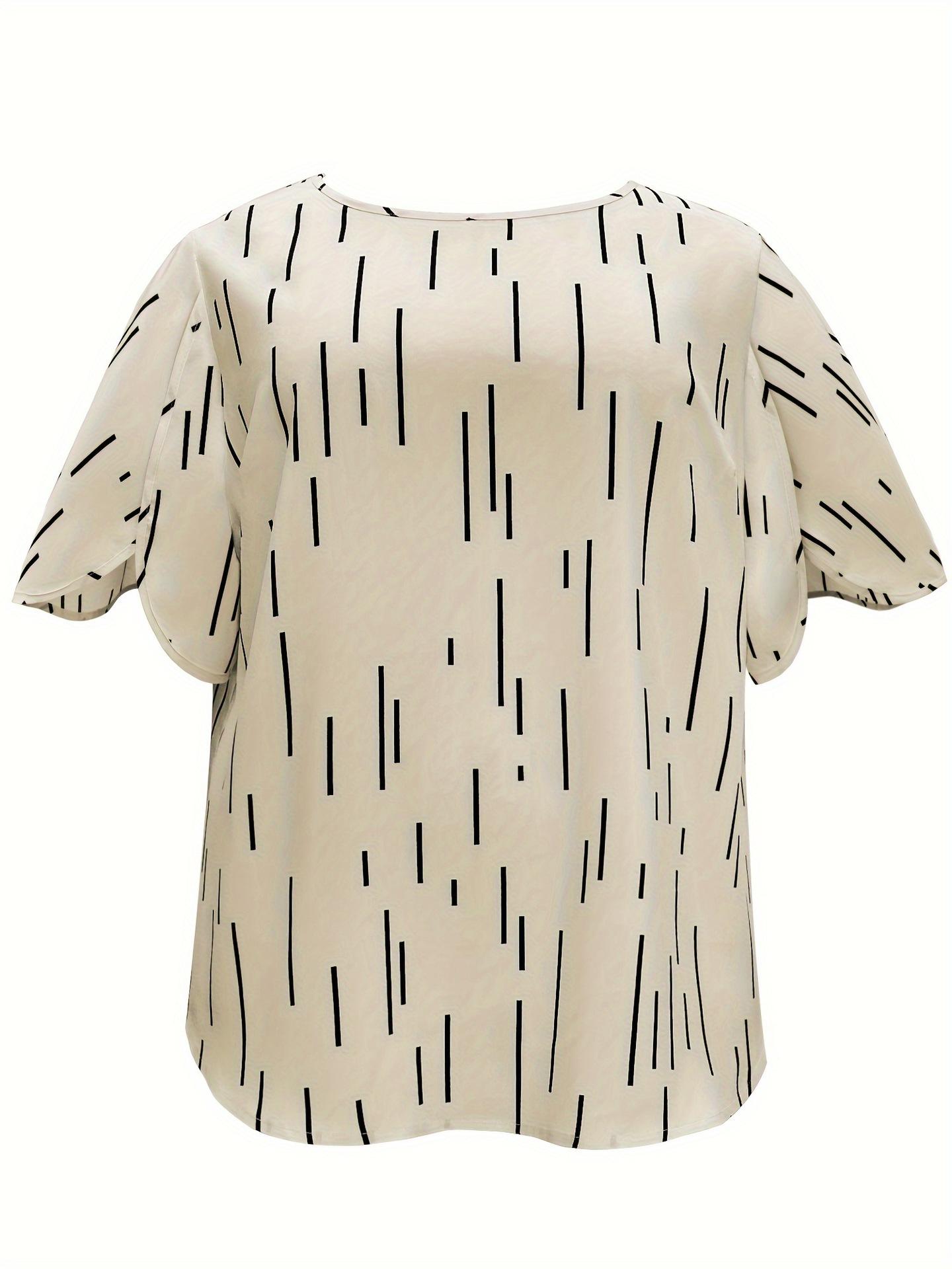 Camiseta de manga corta con estampado de rayas pequeñas, estilo festivo europeo y americano, de primavera y verano de 2024, para mujer, talla grande, gordita, holgada, con hojas de loto