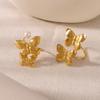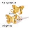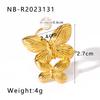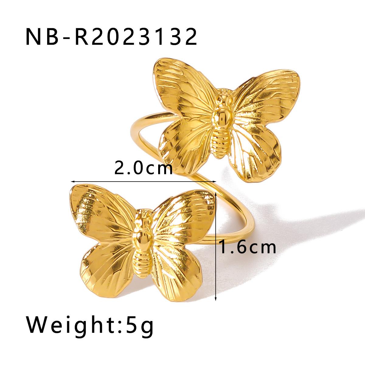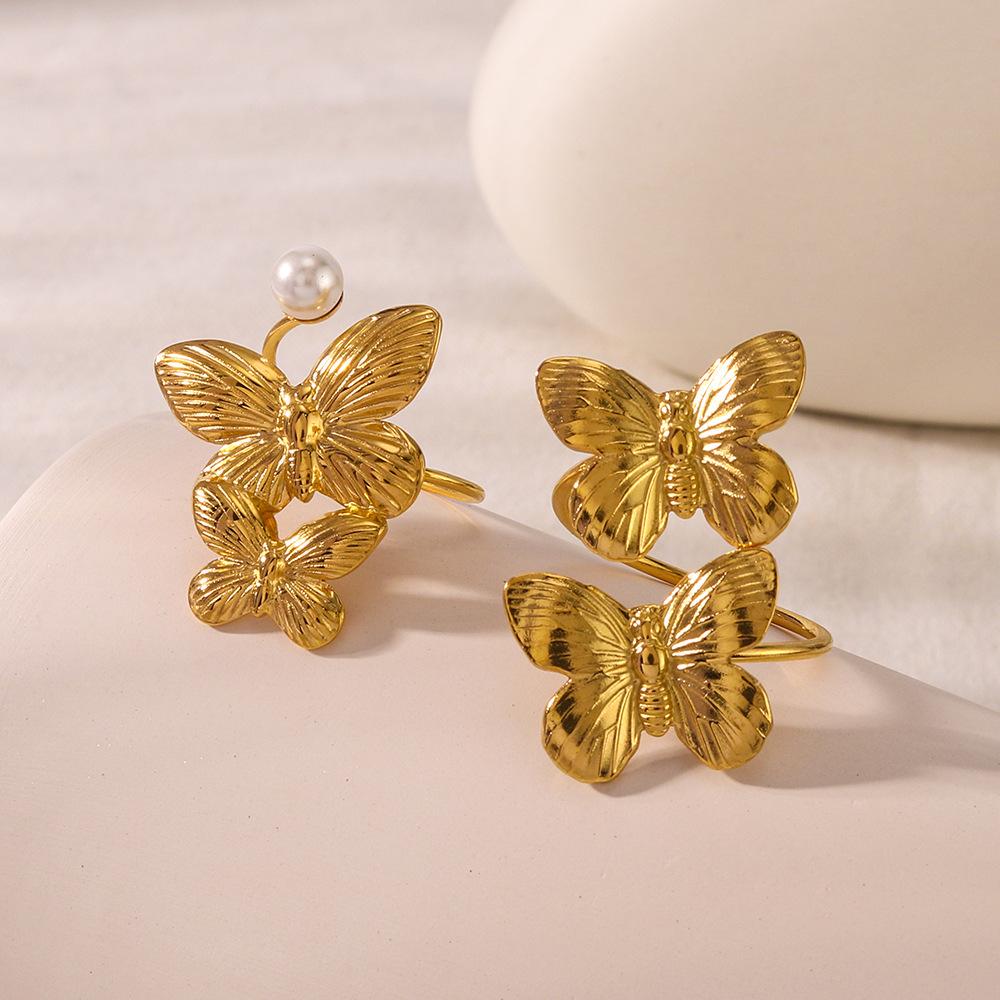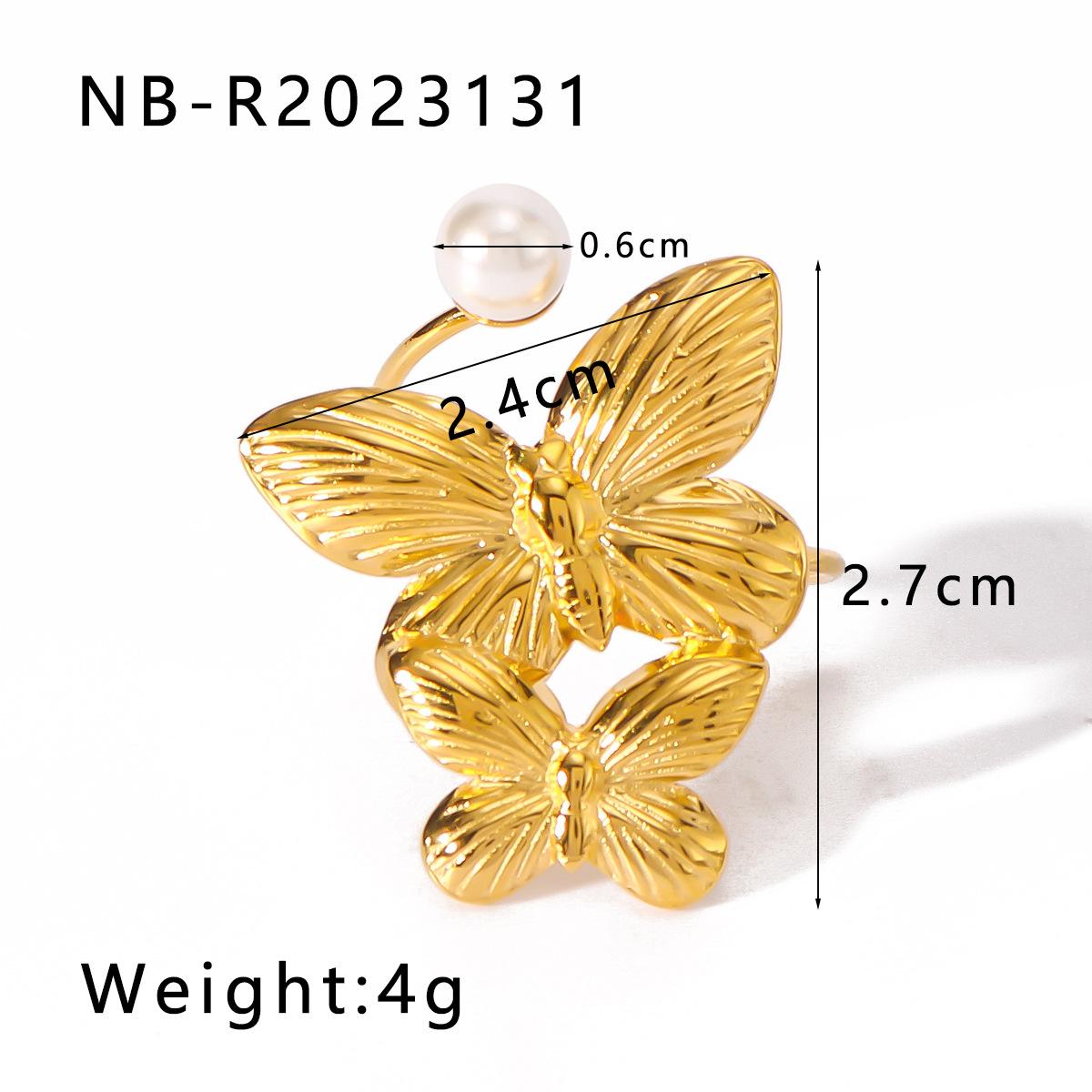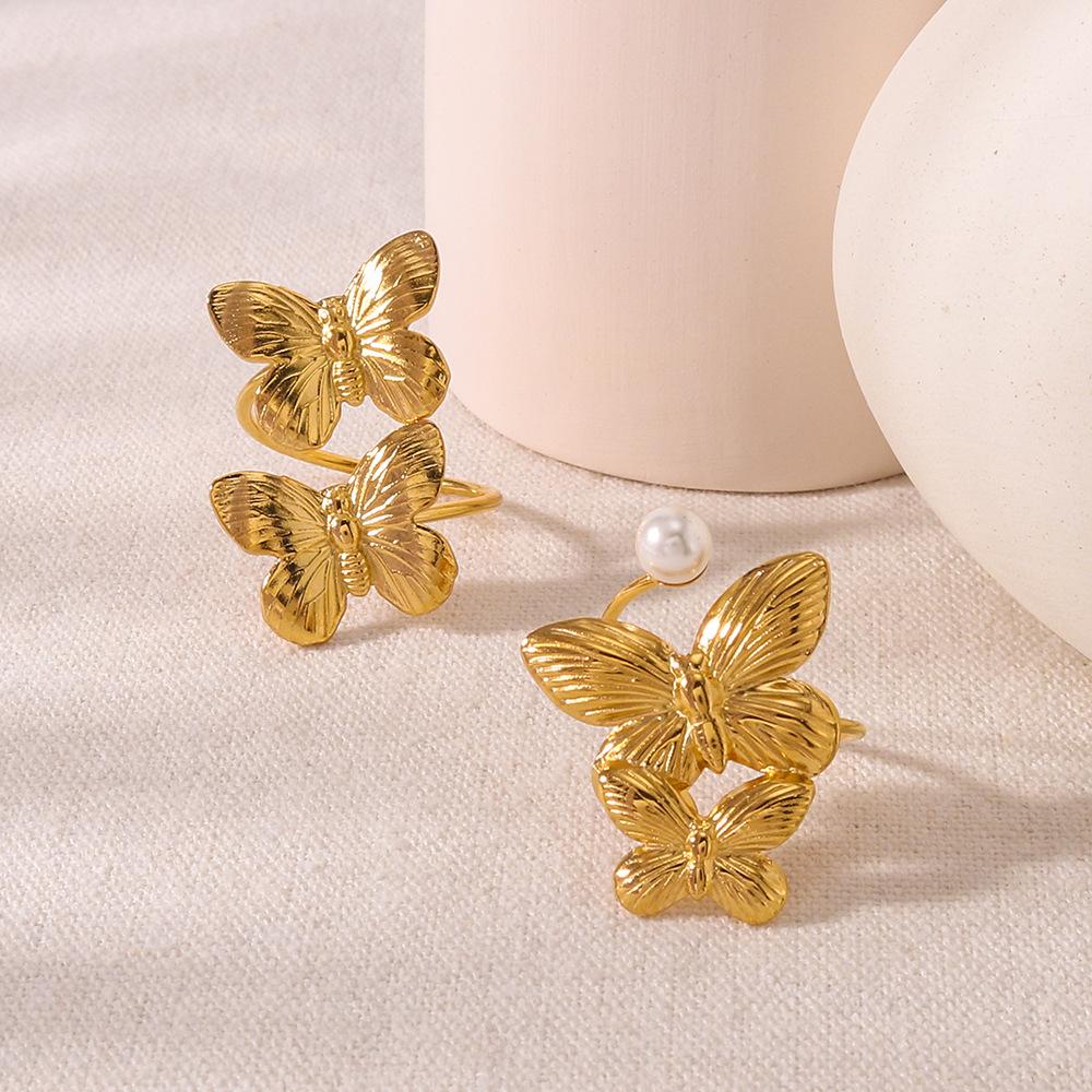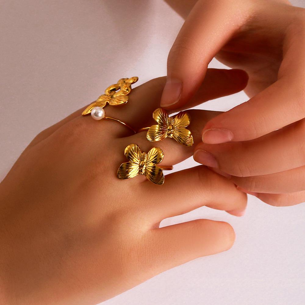 Tendencia de moda anillo multicapa de perlas grabadas de acero inoxidable de mariposa anillo hueco único oro de 18 quilates