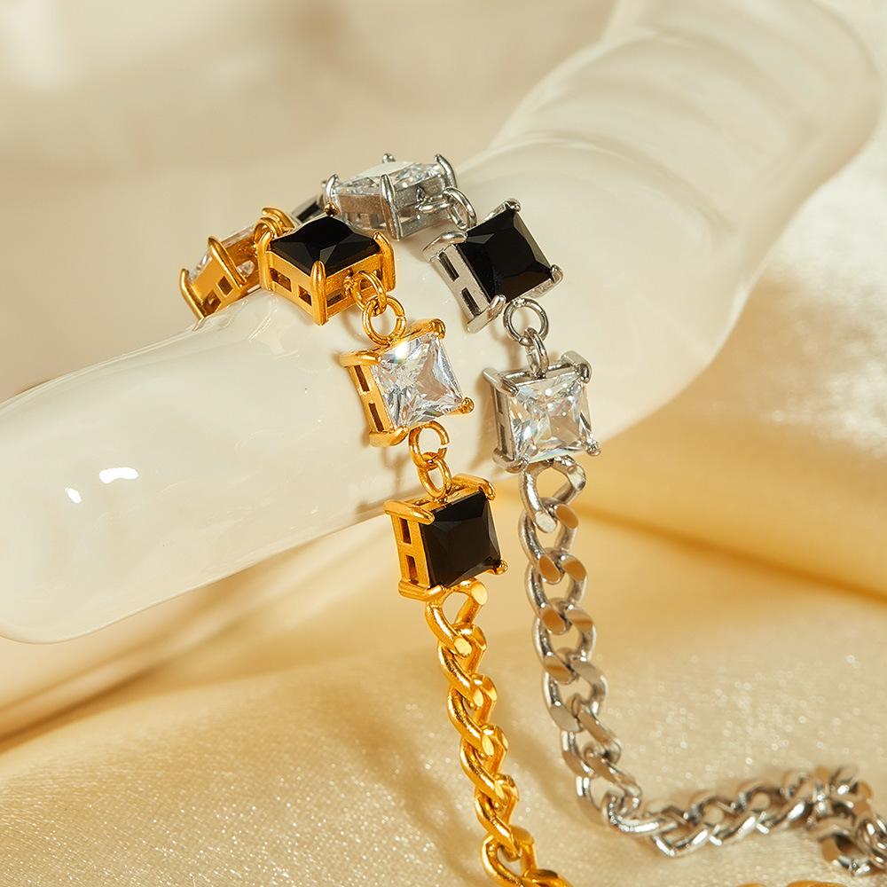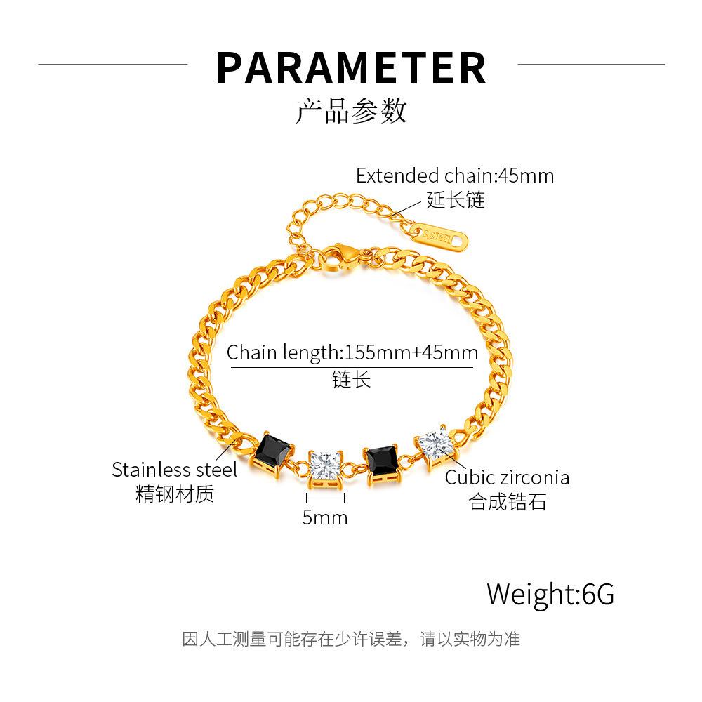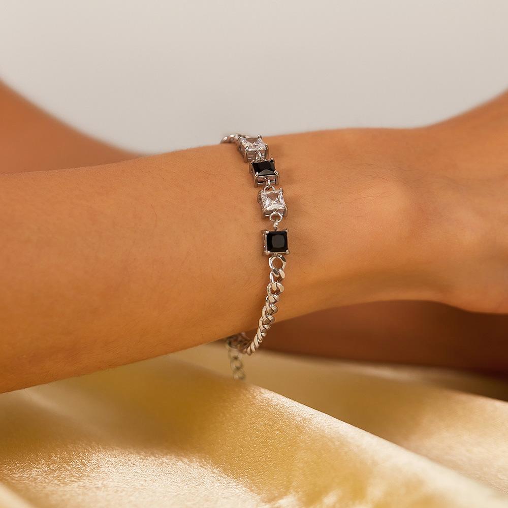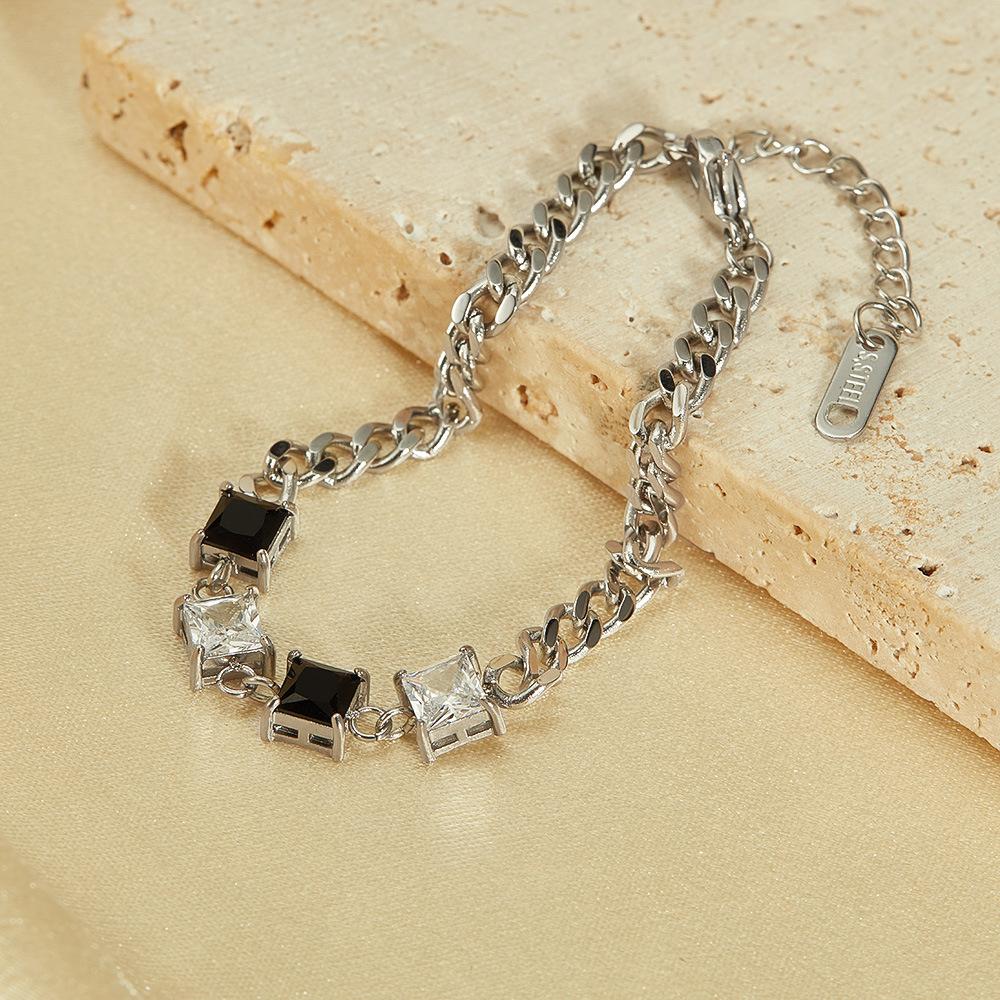 Pulsera OPK de Diseño Nicho Transfronterizo Europeo y Americano para Mujer Acero Inoxidable Sencilla Moda Zircón Blanco y Negro Cuadrado Pulsera de Acero Titanio