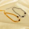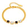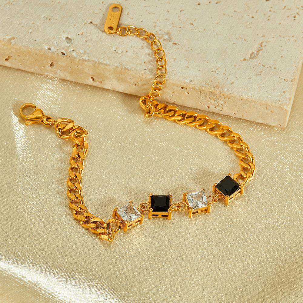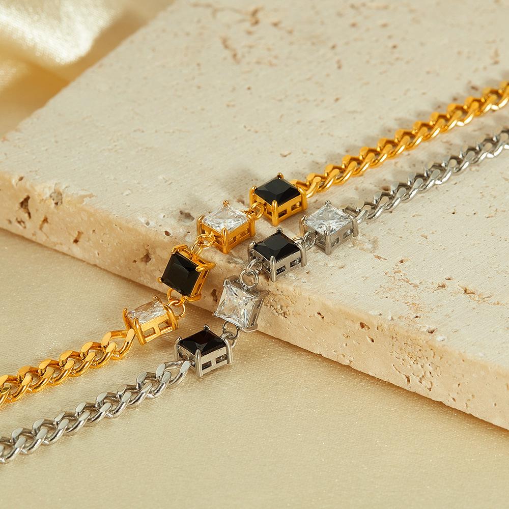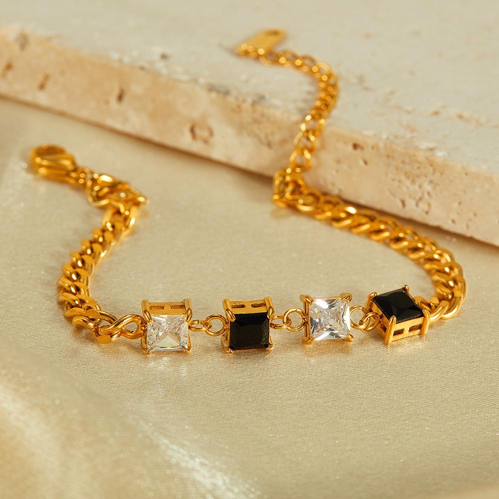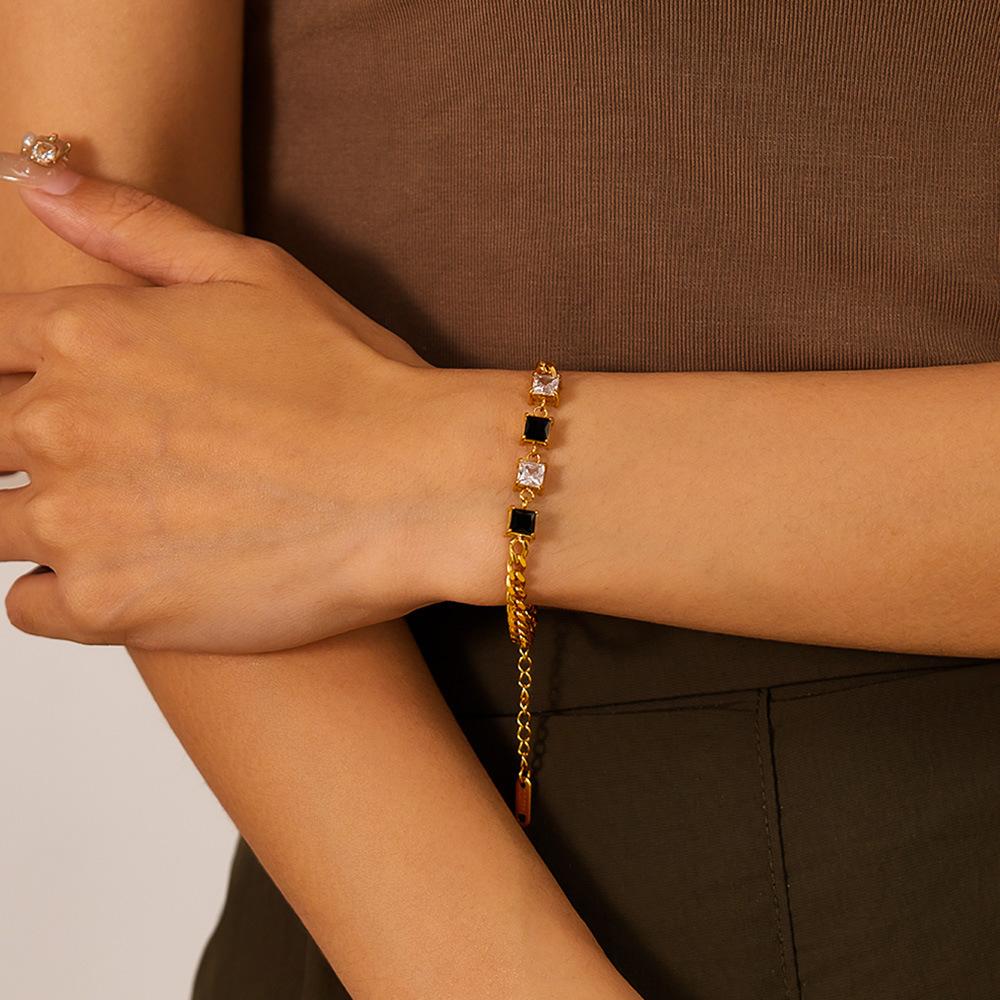 Pulsera OPK de Diseño Nicho Transfronterizo Europeo y Americano para Mujer Acero Inoxidable Sencilla Moda Zircón Blanco y Negro Cuadrado Pulsera de Acero Titanio