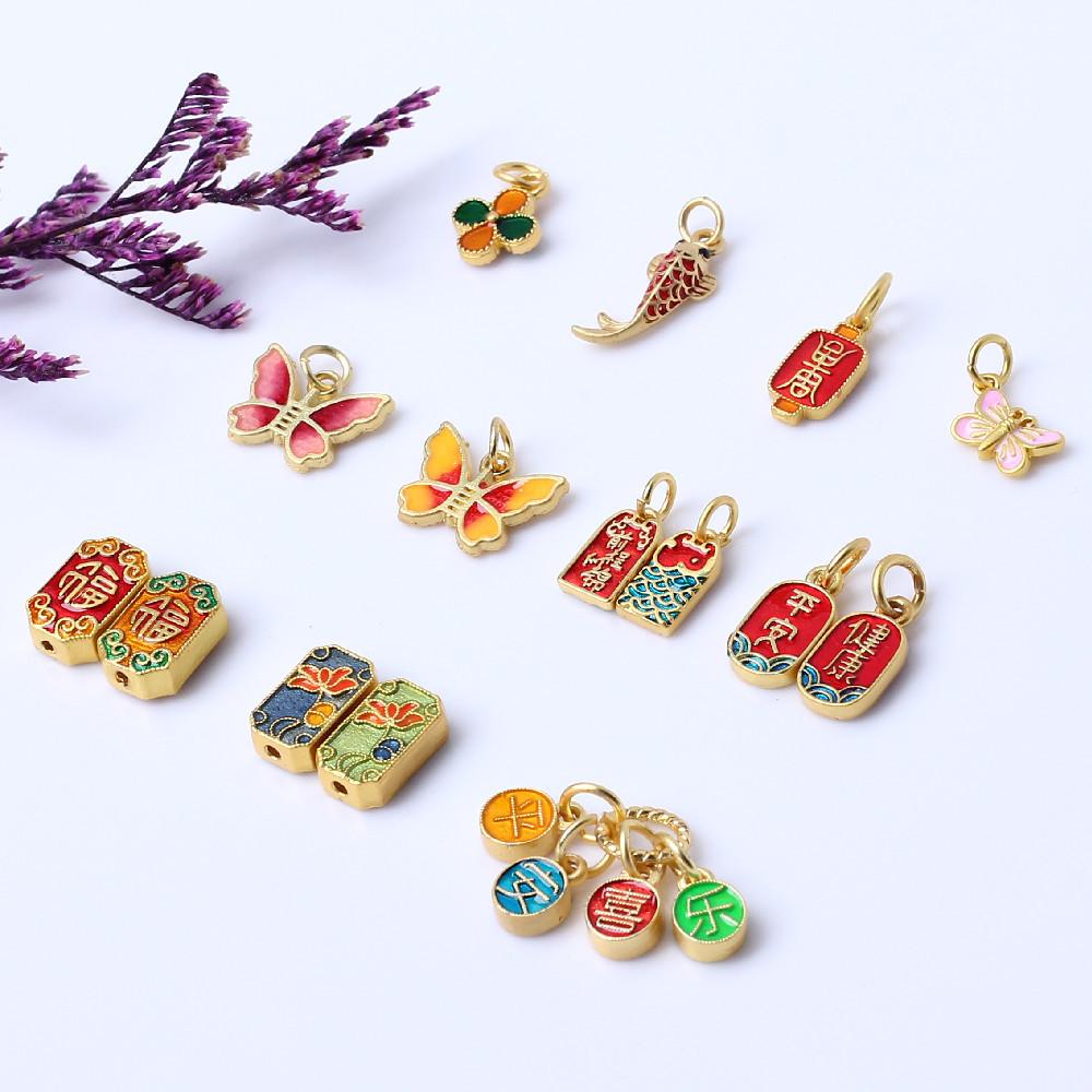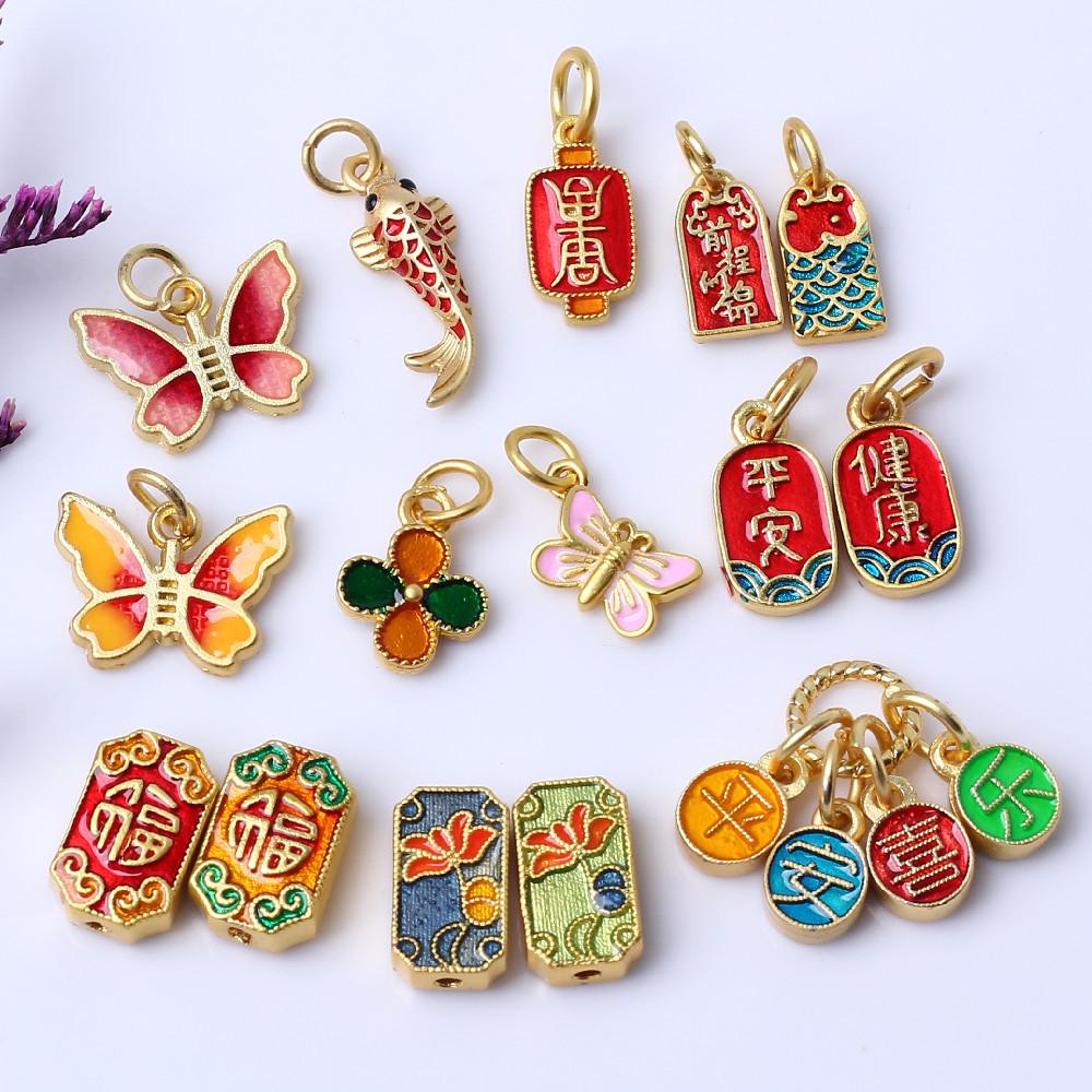 Colgante de alegría segura con gota de aceite retenedor de color oro arena antiguo, accesorios de joyería hechos a mano con cuentas DIY, material para collar y pulsera