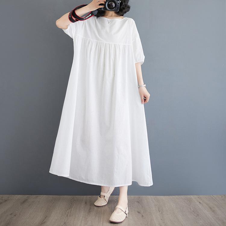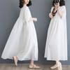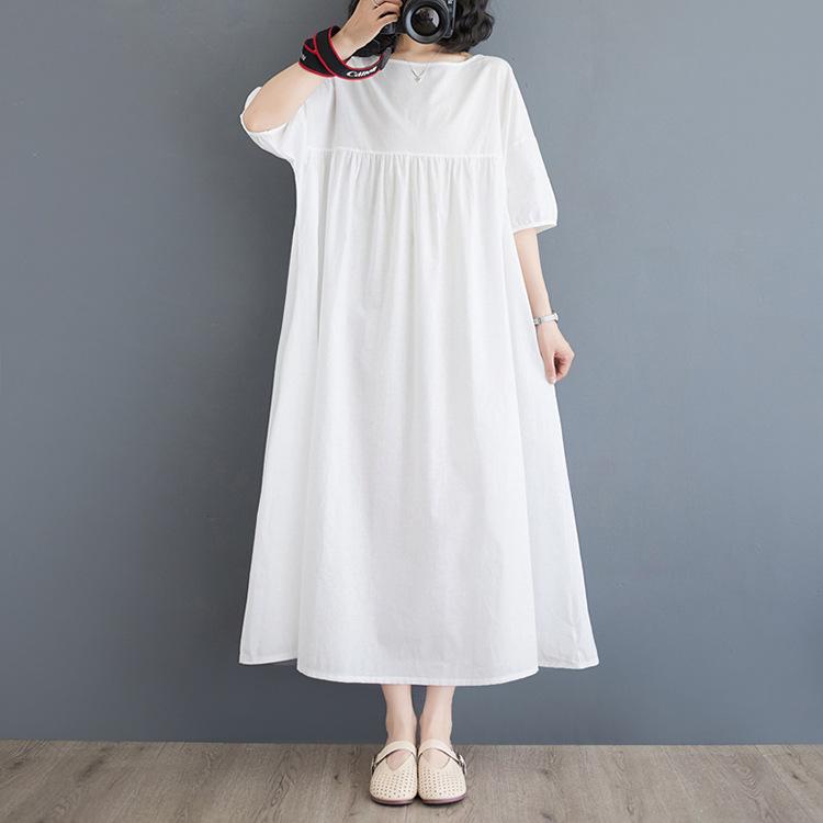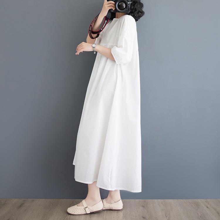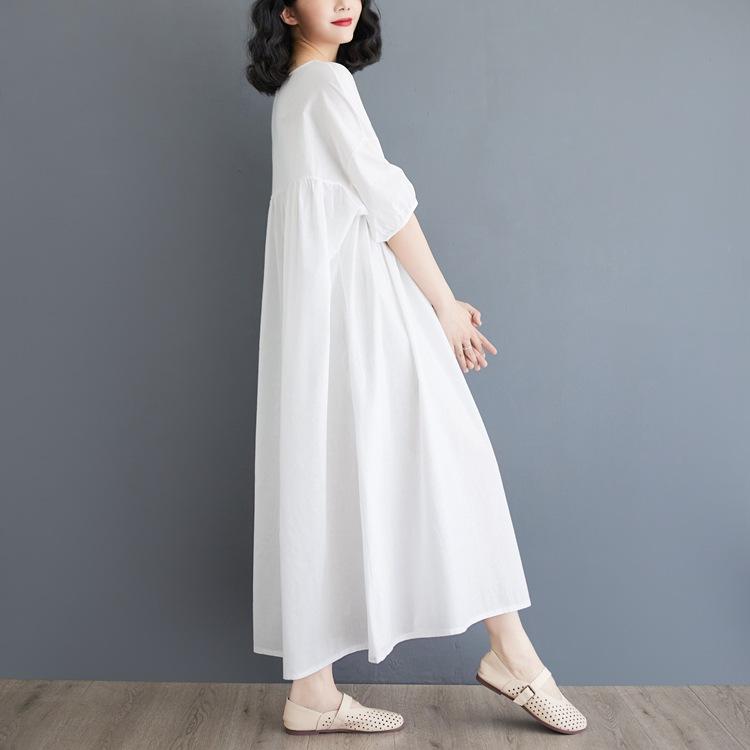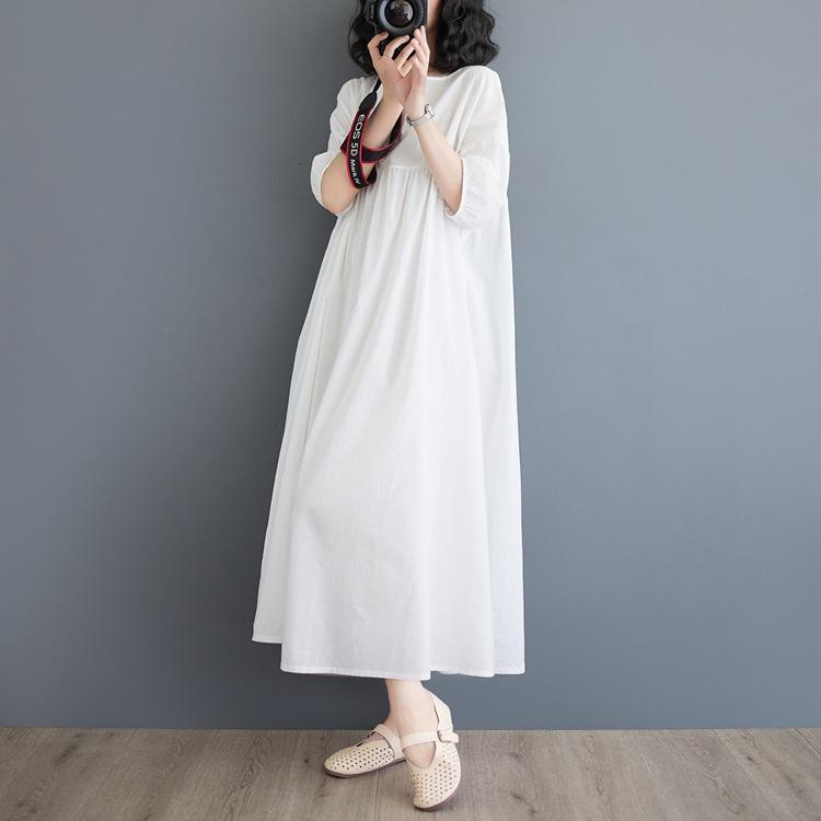 Vestido blanco de verano 2024 para mujer, elegante vestido largo de algodón y lino, suelto y artístico, para vacaciones en la playa.