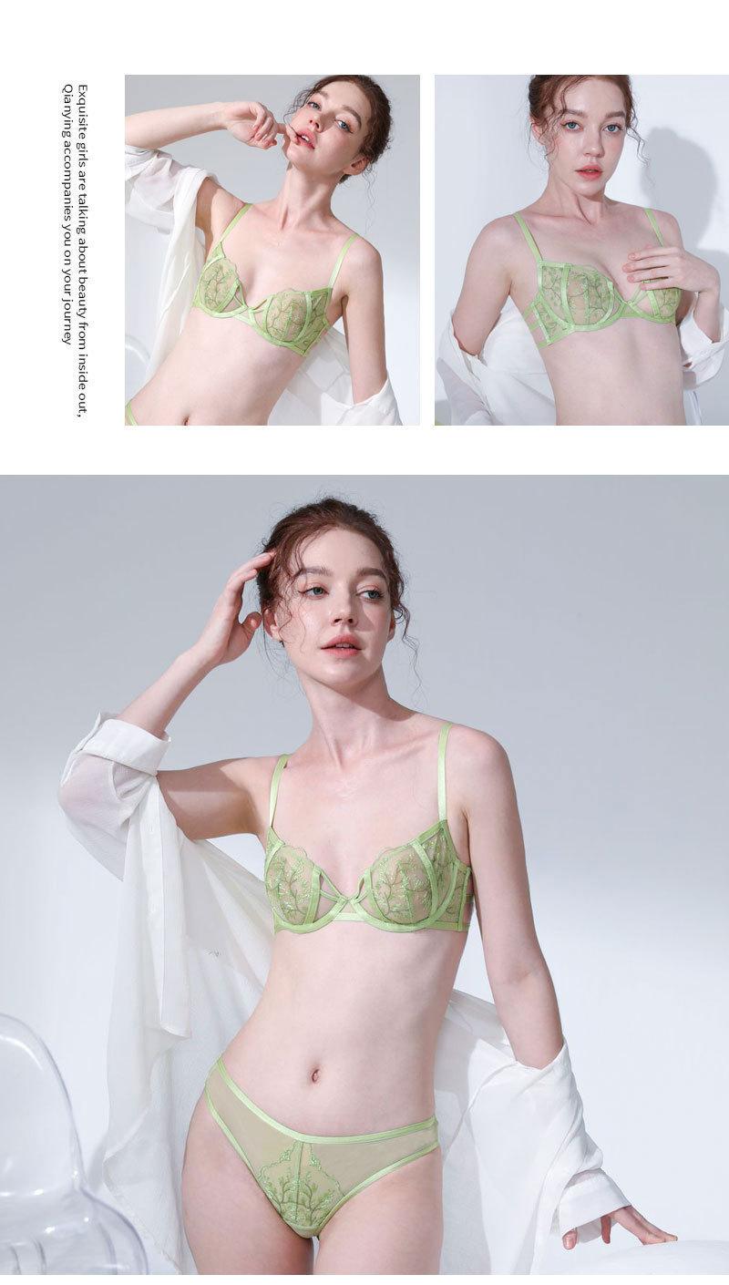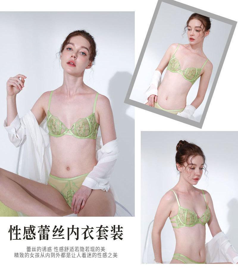 Ropa interior sexy para mujer, estilo francés, ultrafina, con pecho grande, talla pequeña y grande, sujetador push-up de encaje antiflacidez.