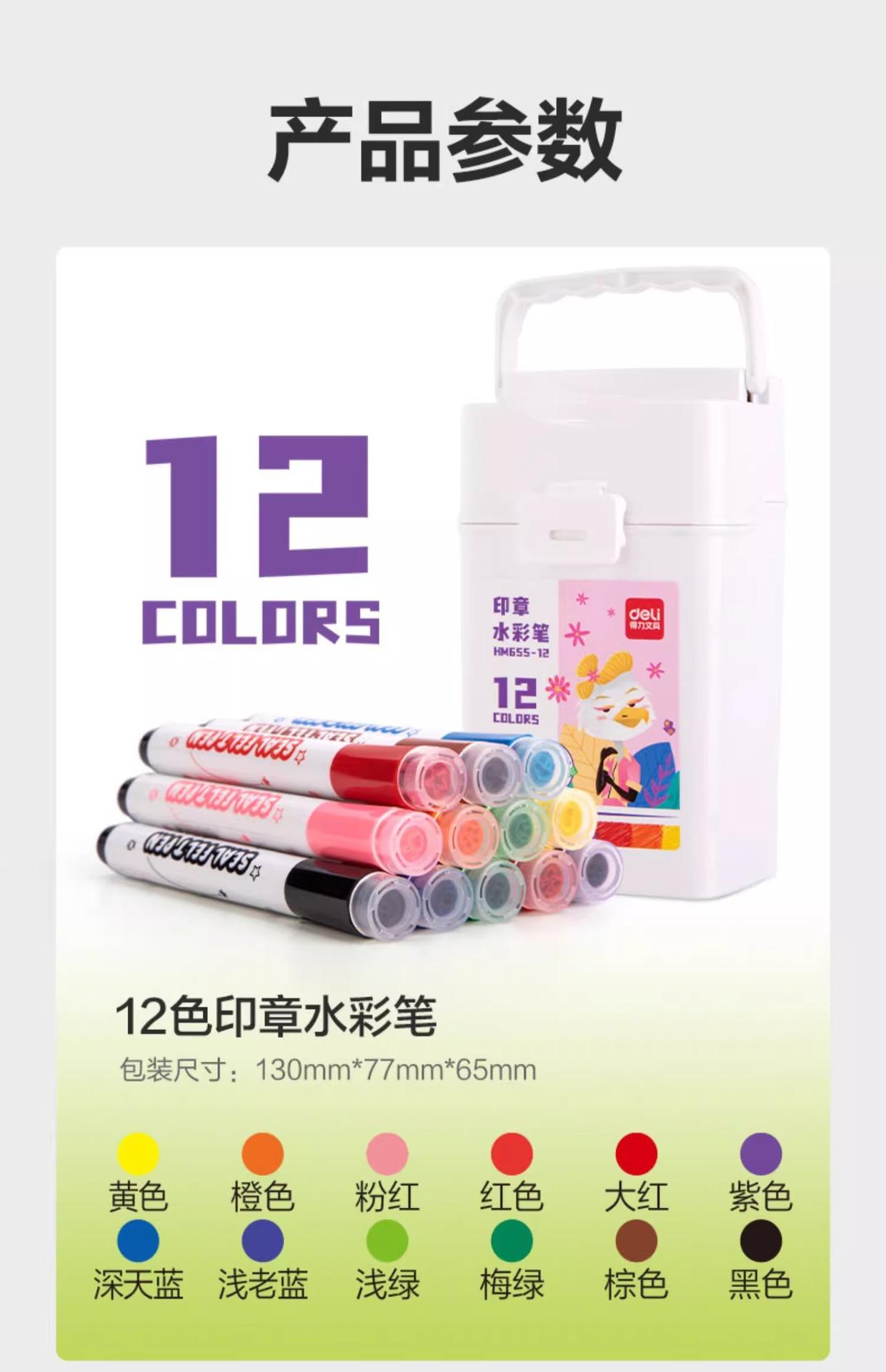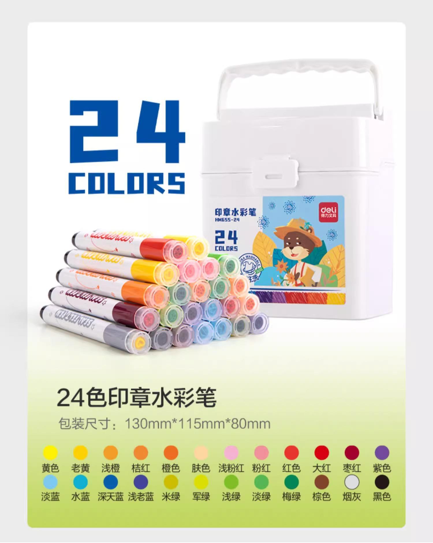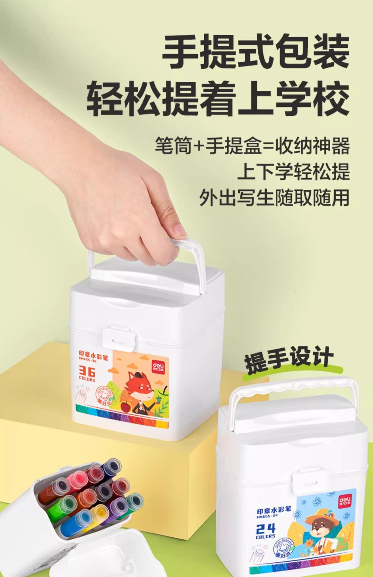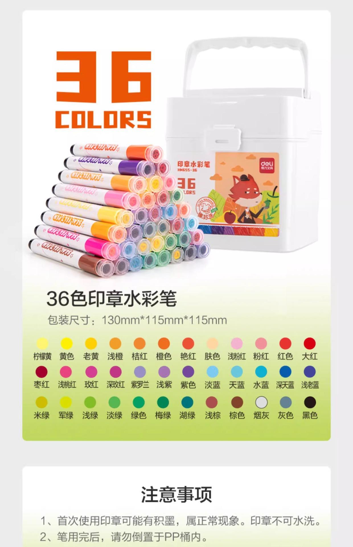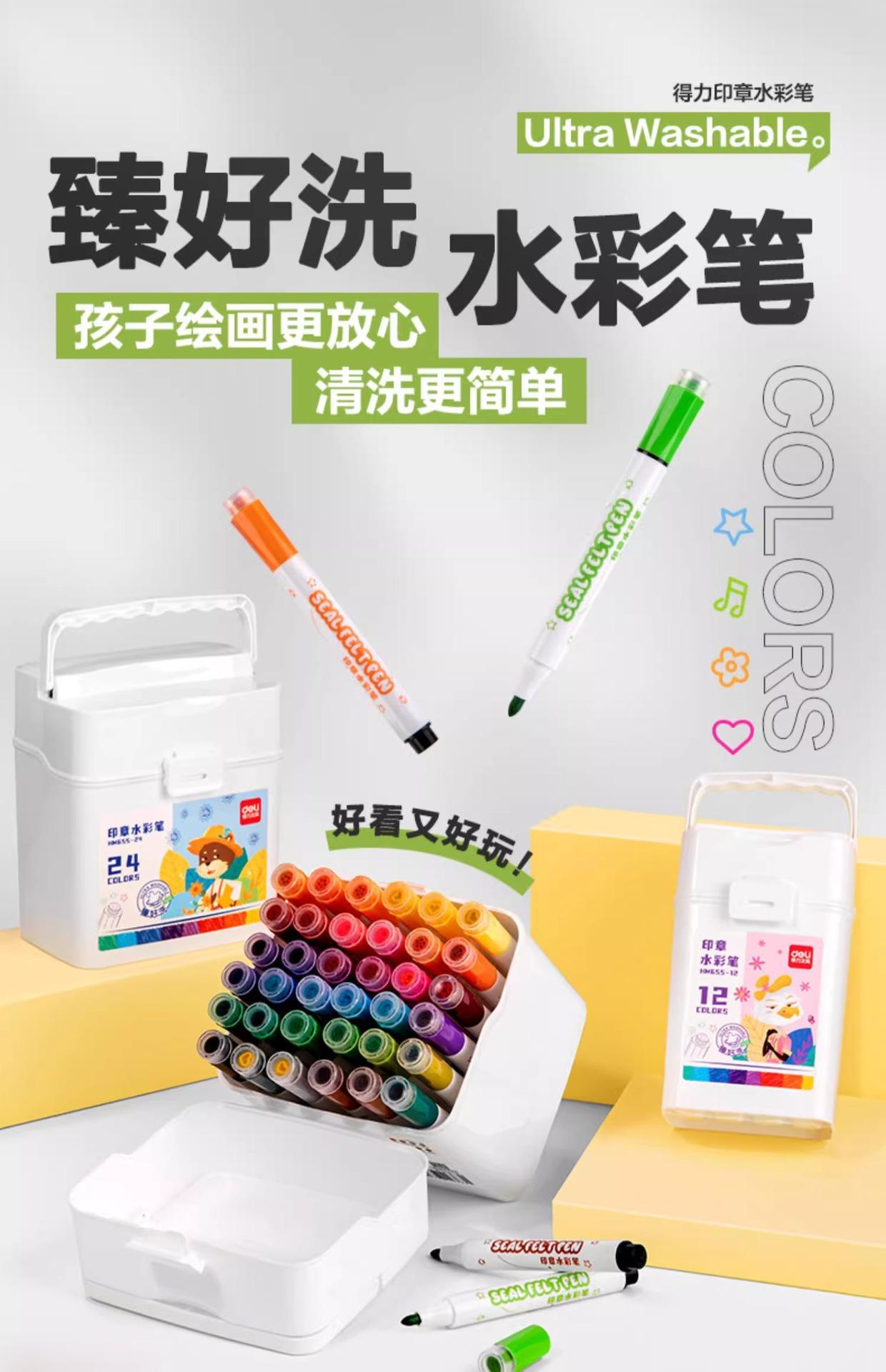 Deli Pluma de Acuarela Sello de 36 Colores Lavable para Niños 24 Colores Jardín de Niños Estudiante de Primaria Pintura Pluma para Colorear Bebé