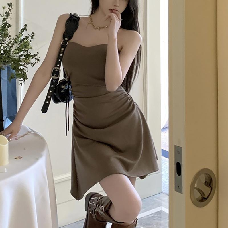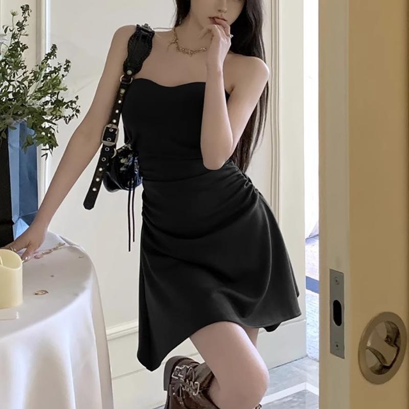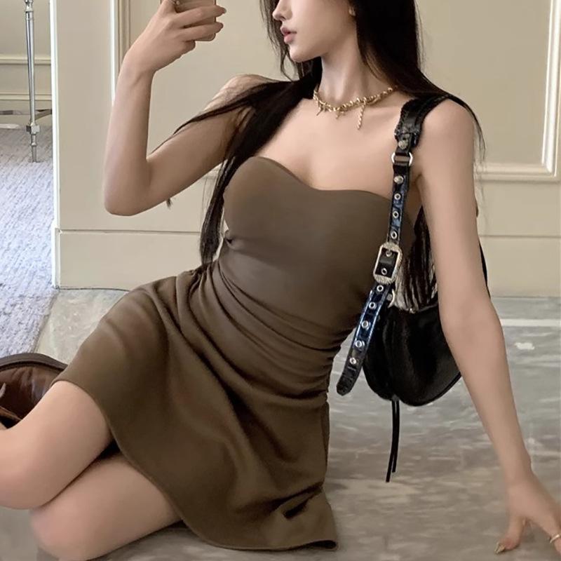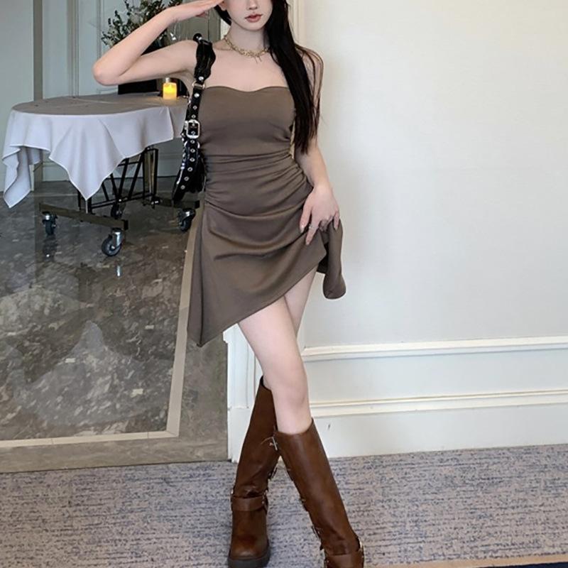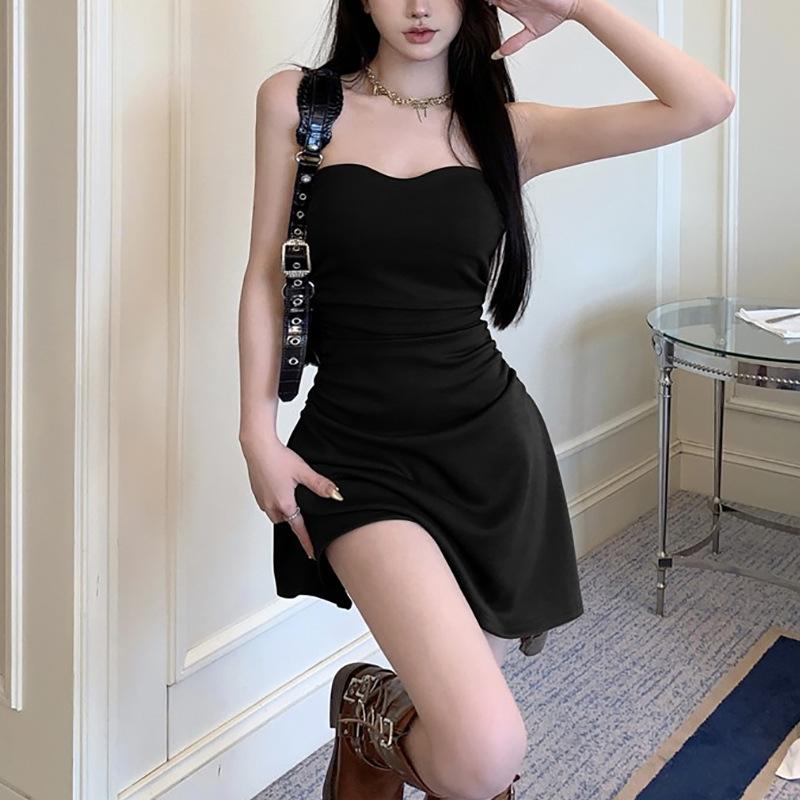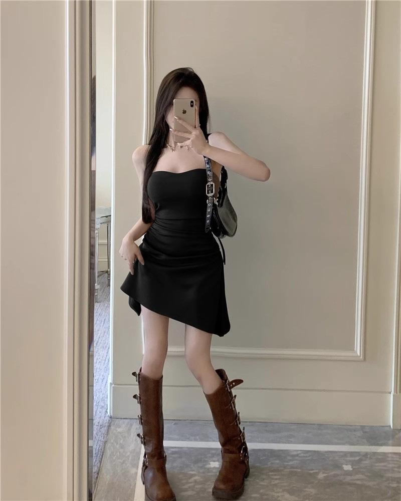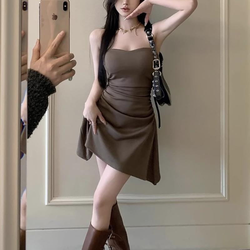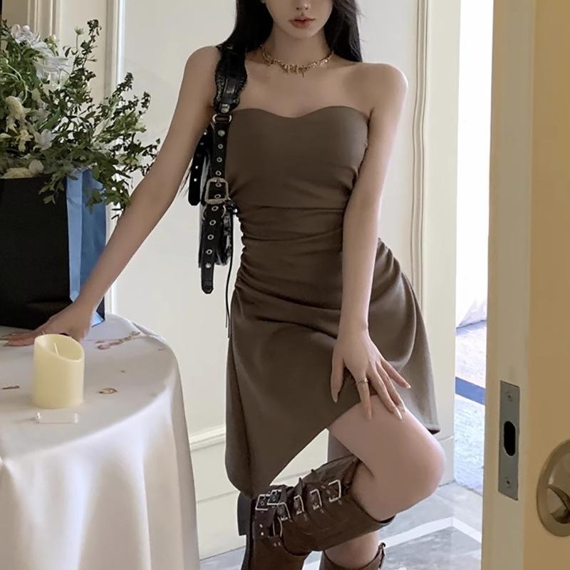 Vestido sexy sin tirantes de estilo puro, plisado, para chicas calientes, adelgazante, de verano, con cintura ajustada, falda ajustada, falda de moda irregular.