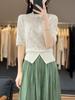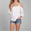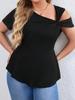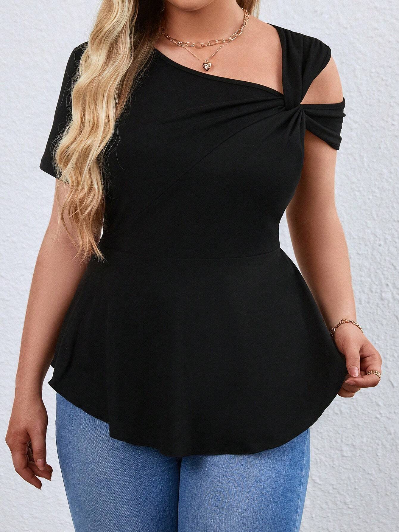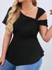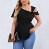 2024 Europeo y Americano Transfronterizo Talla Grande para Mujer Sexy Hombro Cuello Oblicuo Camiseta Verano Nuevo Jersey Color Sólido Manga Corta Top