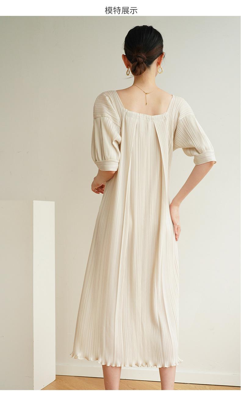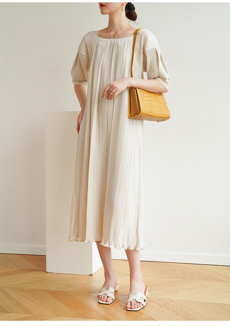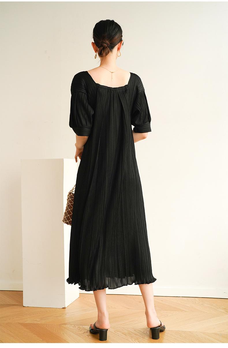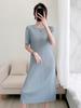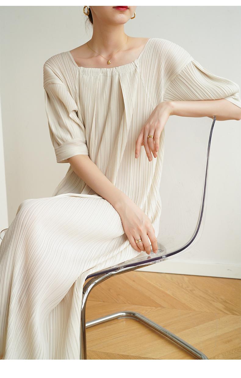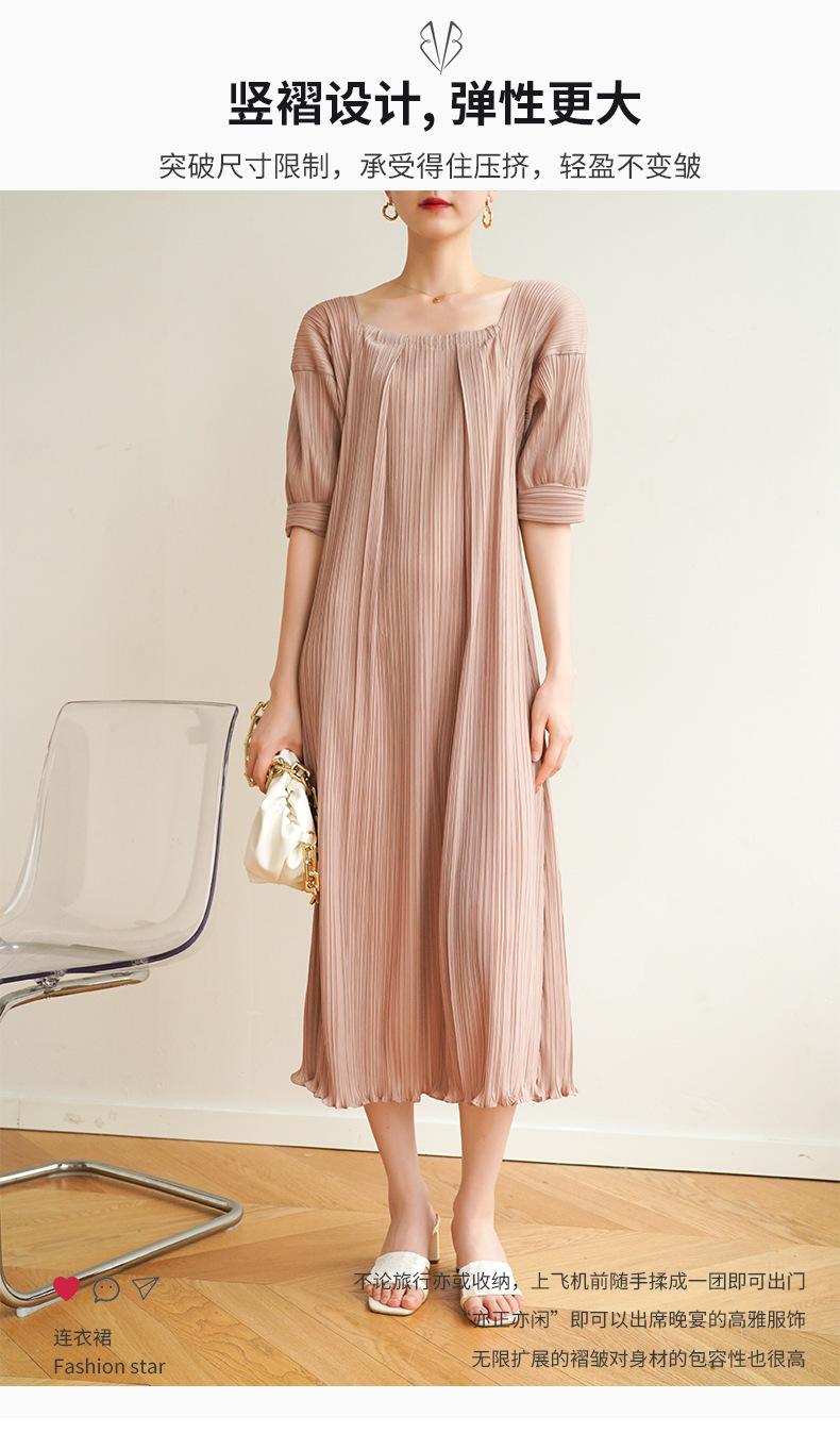 Calidad de mostrador 2024 verano estilo de vacaciones de ocio de alta gama plisado diseñador talla grande holgado adelgazante vestido