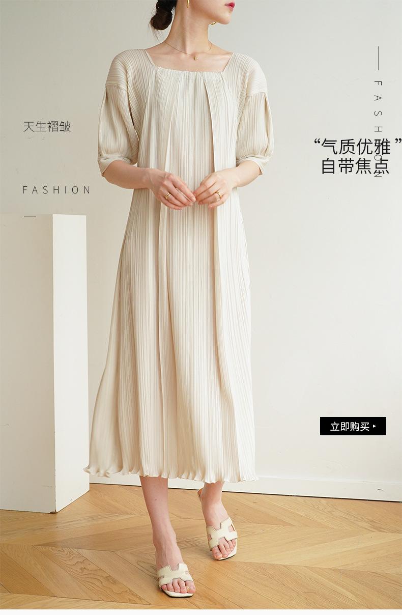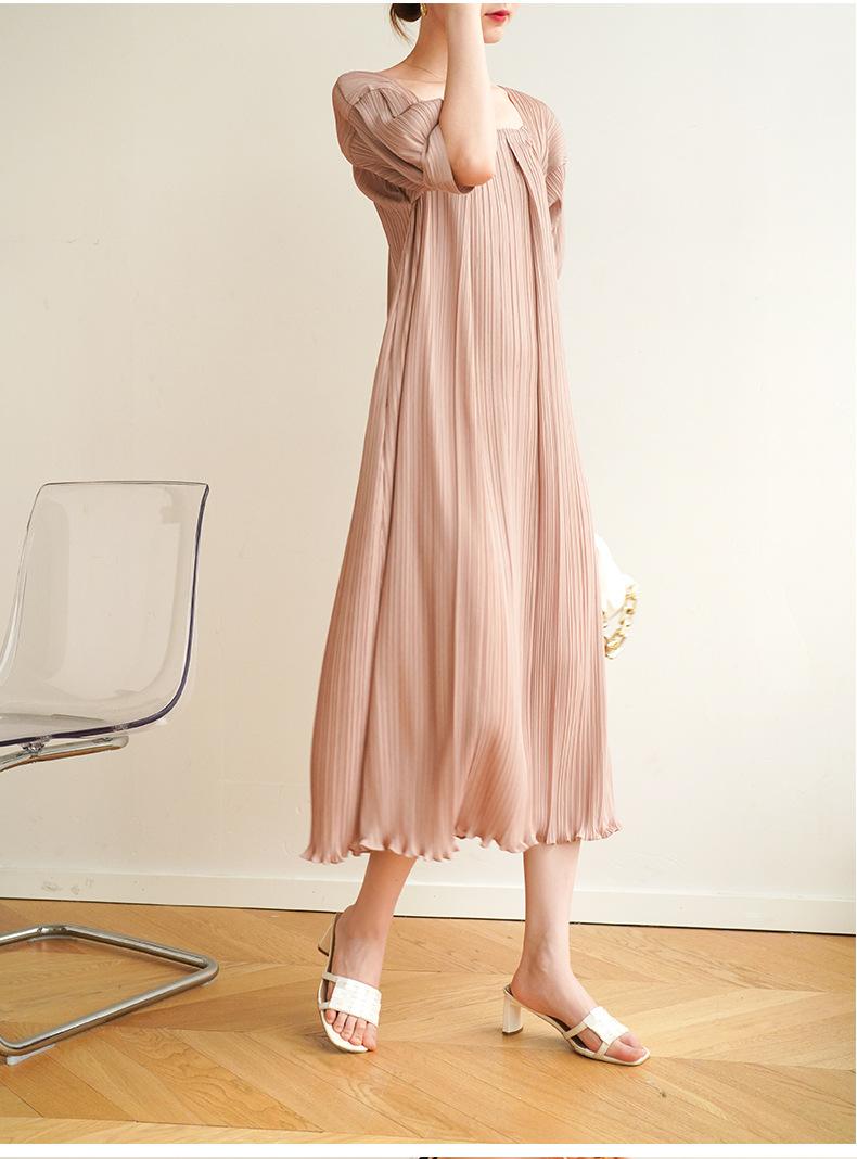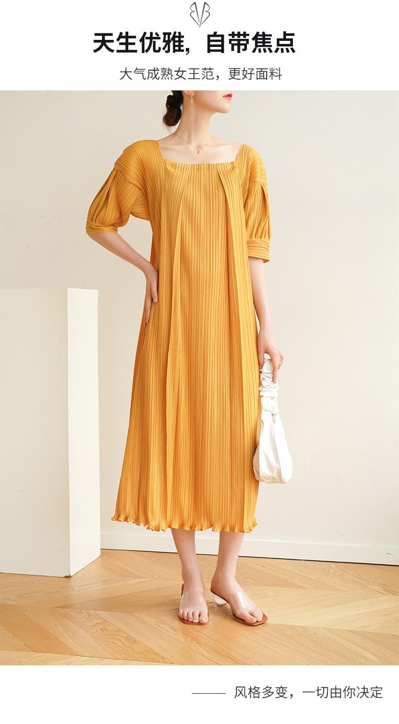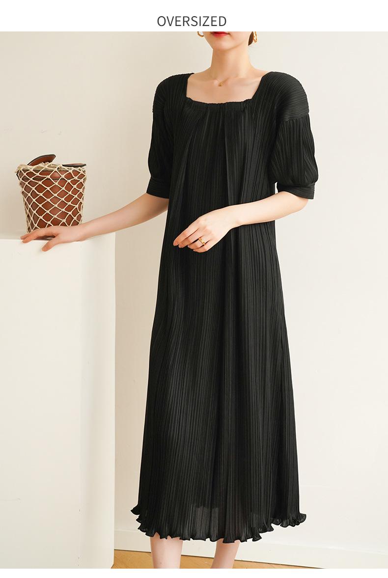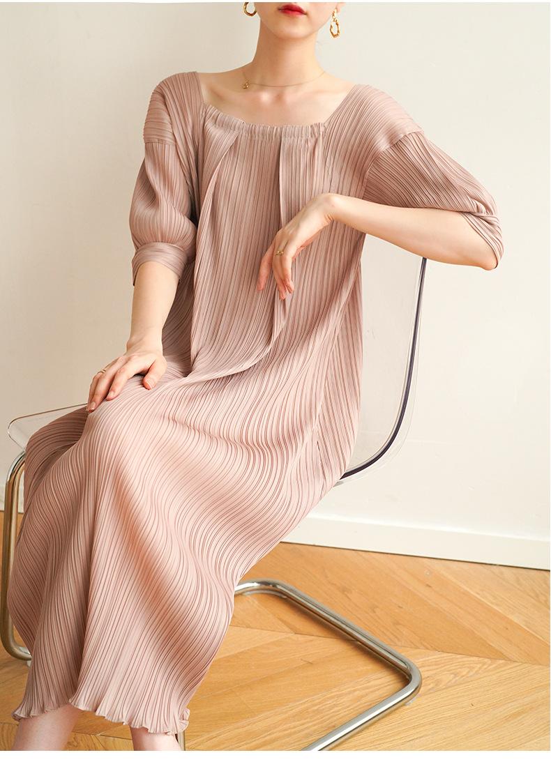 Calidad de mostrador 2024 verano estilo de vacaciones de ocio de alta gama plisado diseñador talla grande holgado adelgazante vestido