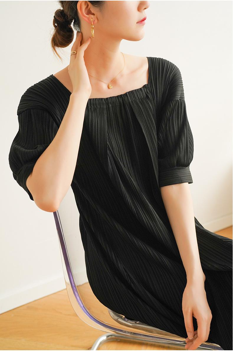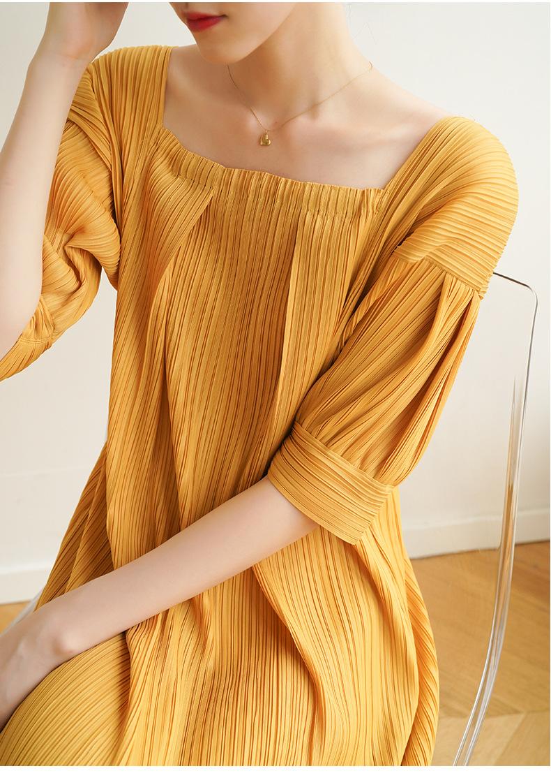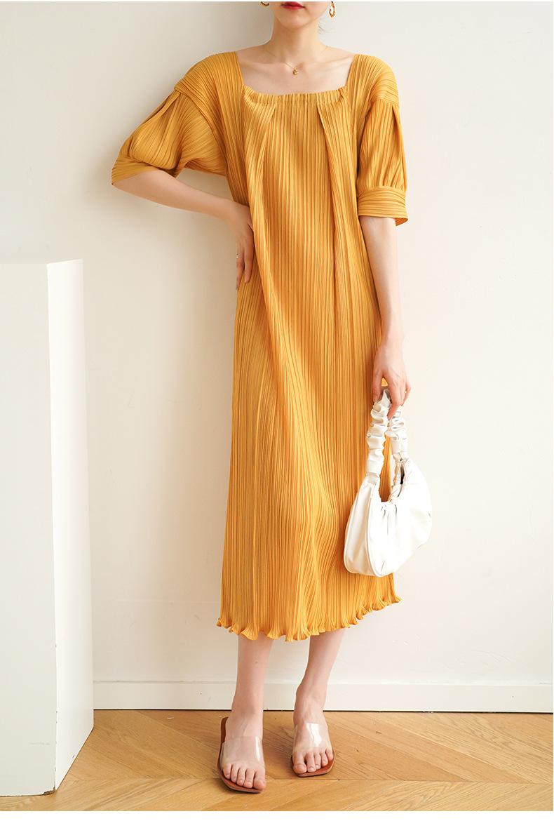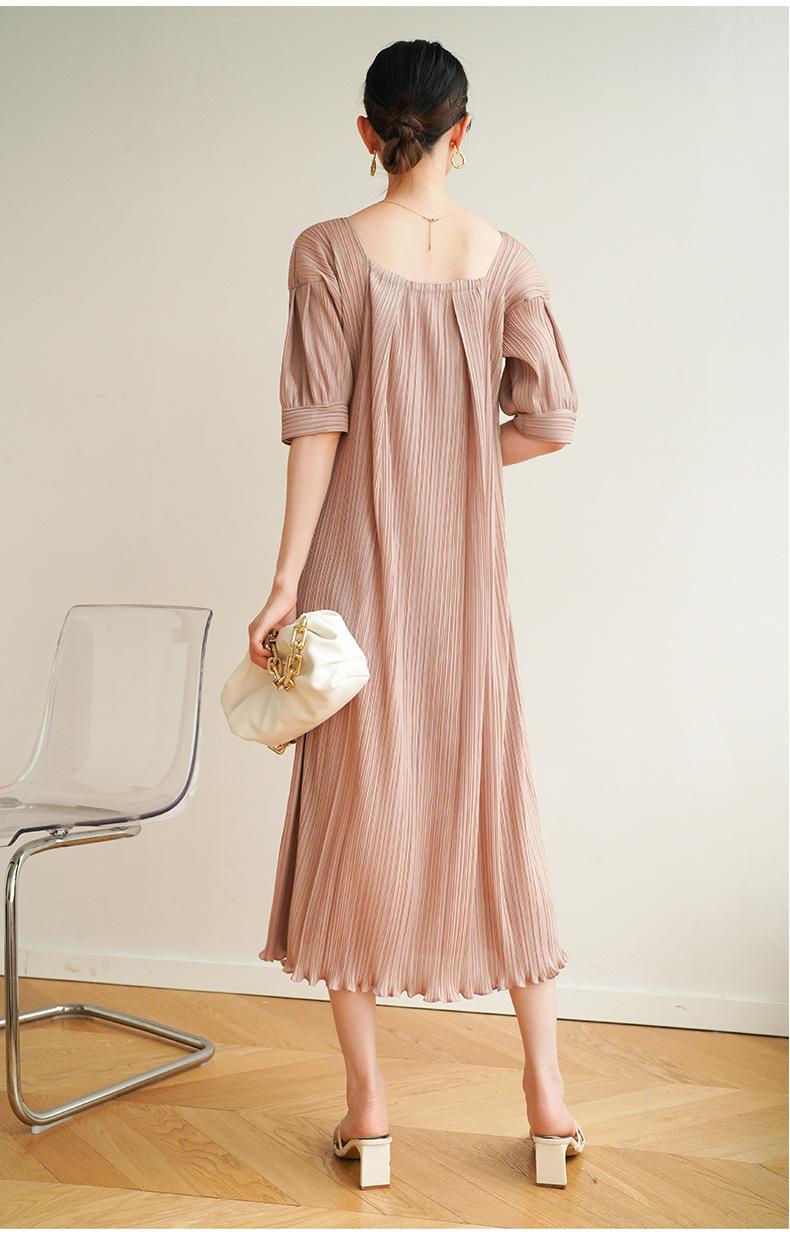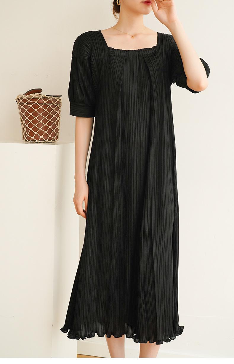 Calidad de mostrador 2024 verano estilo de vacaciones de ocio de alta gama plisado diseñador talla grande holgado adelgazante vestido