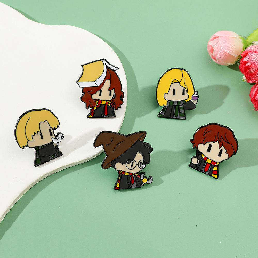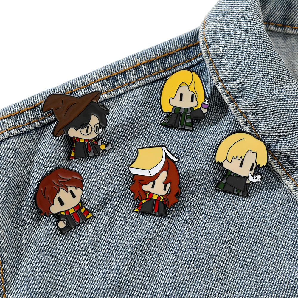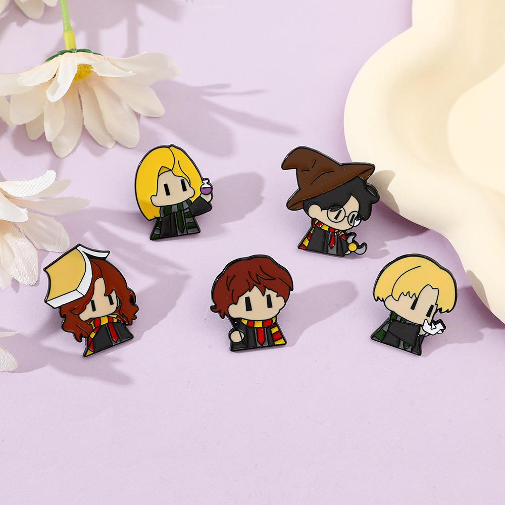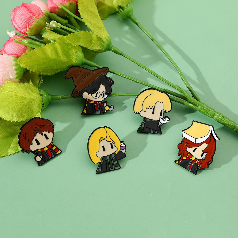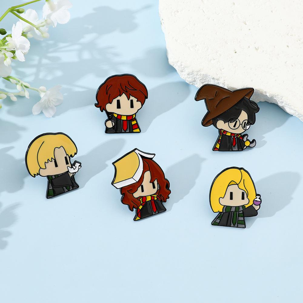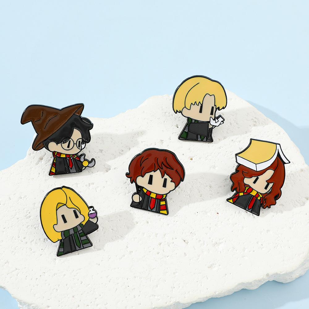 Insignia de metal con forma de personaje de película de dibujos animados europeos y americanos, broche de aleación con forma de gota de aceite, accesorio decorativo