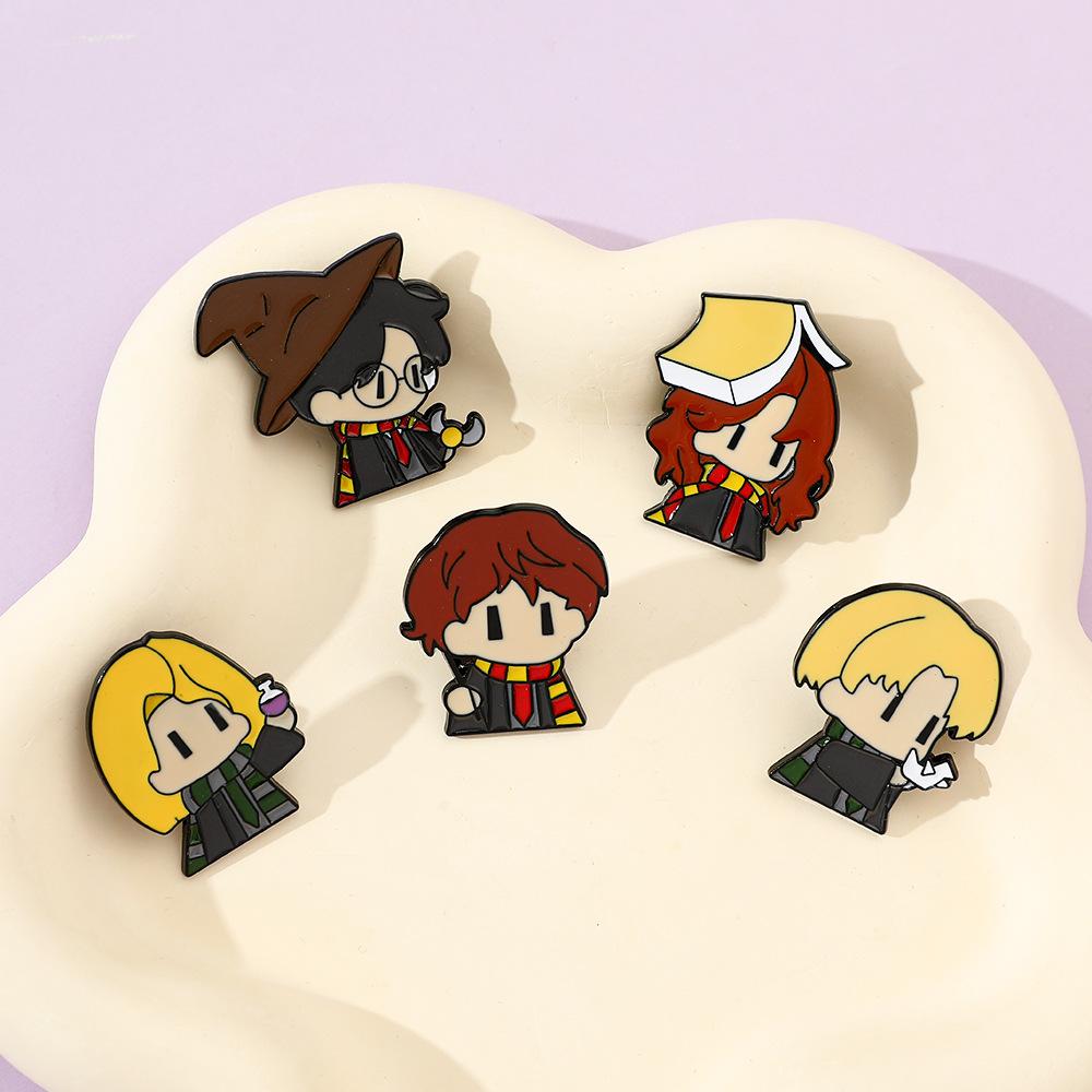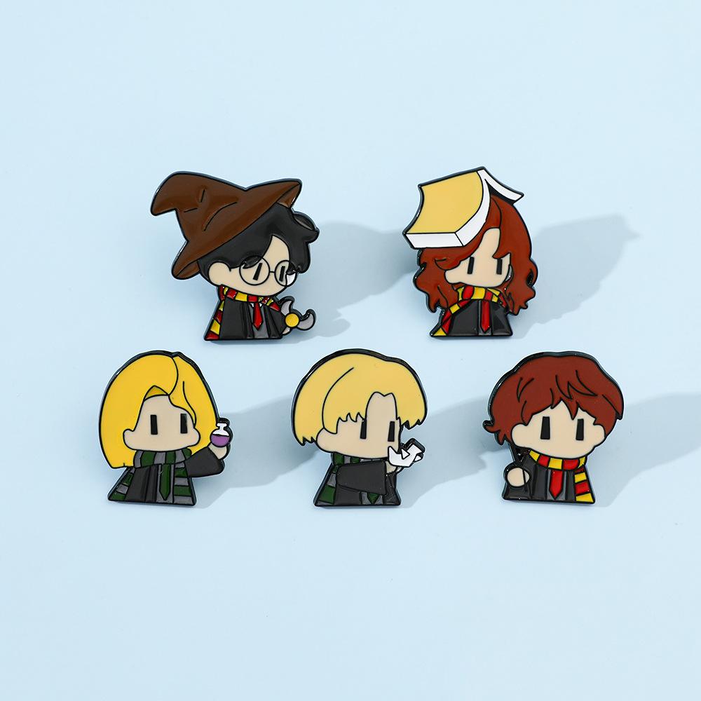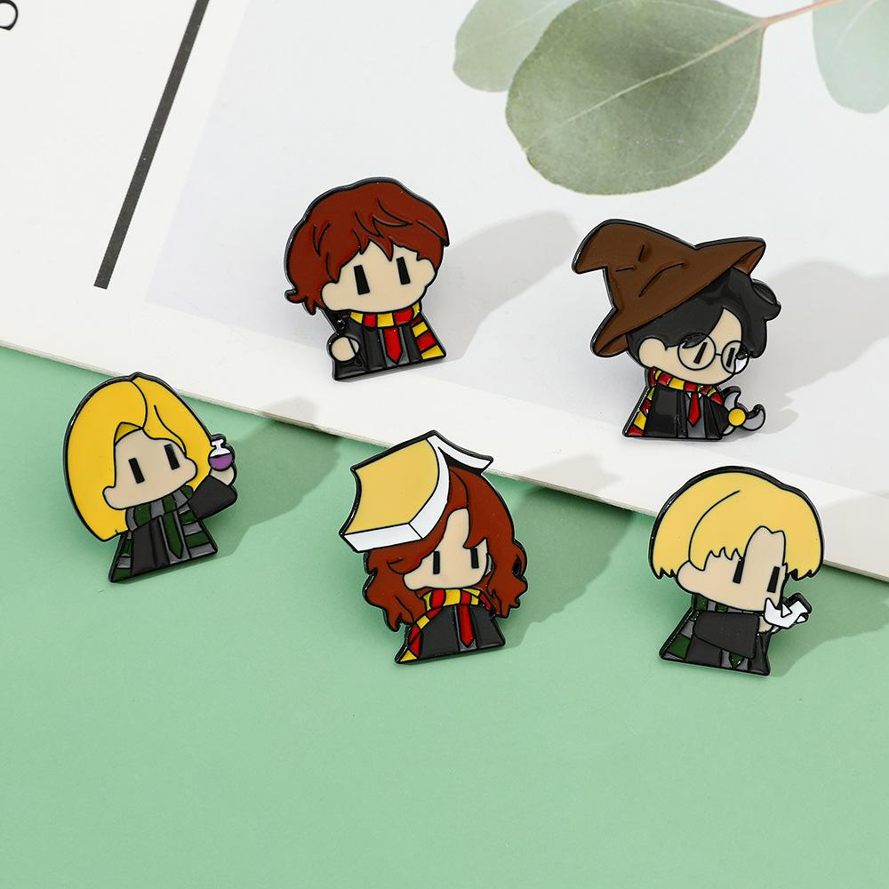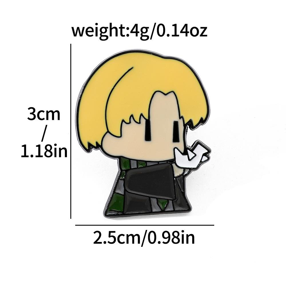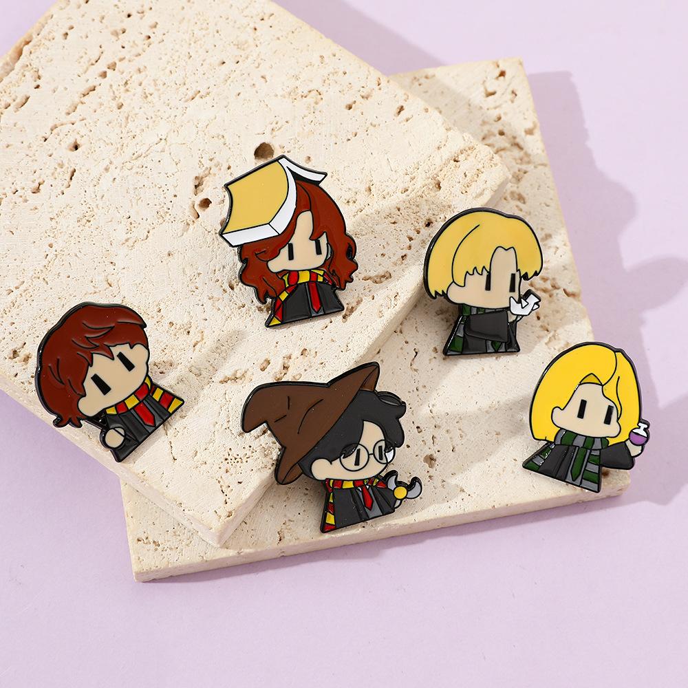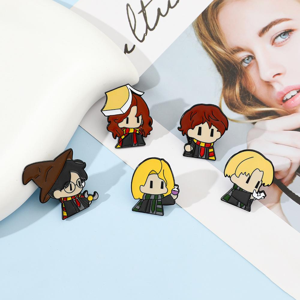 Insignia de metal con forma de personaje de película de dibujos animados europeos y americanos, broche de aleación con forma de gota de aceite, accesorio decorativo