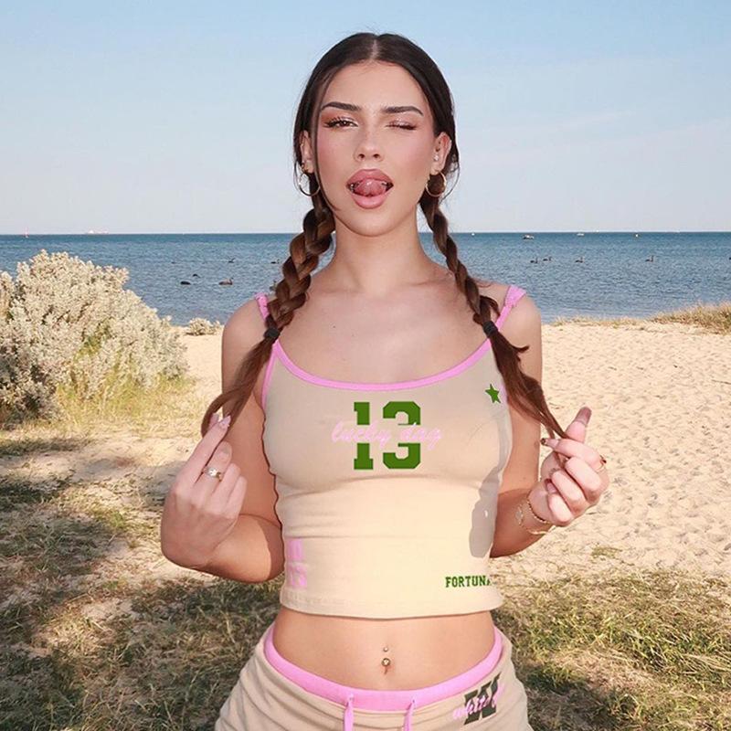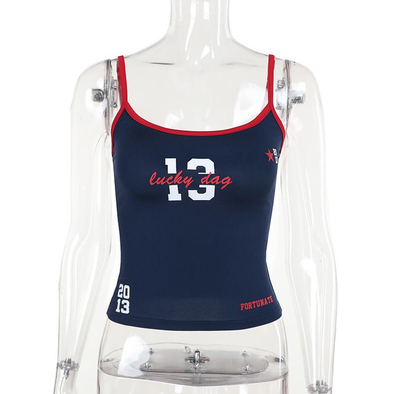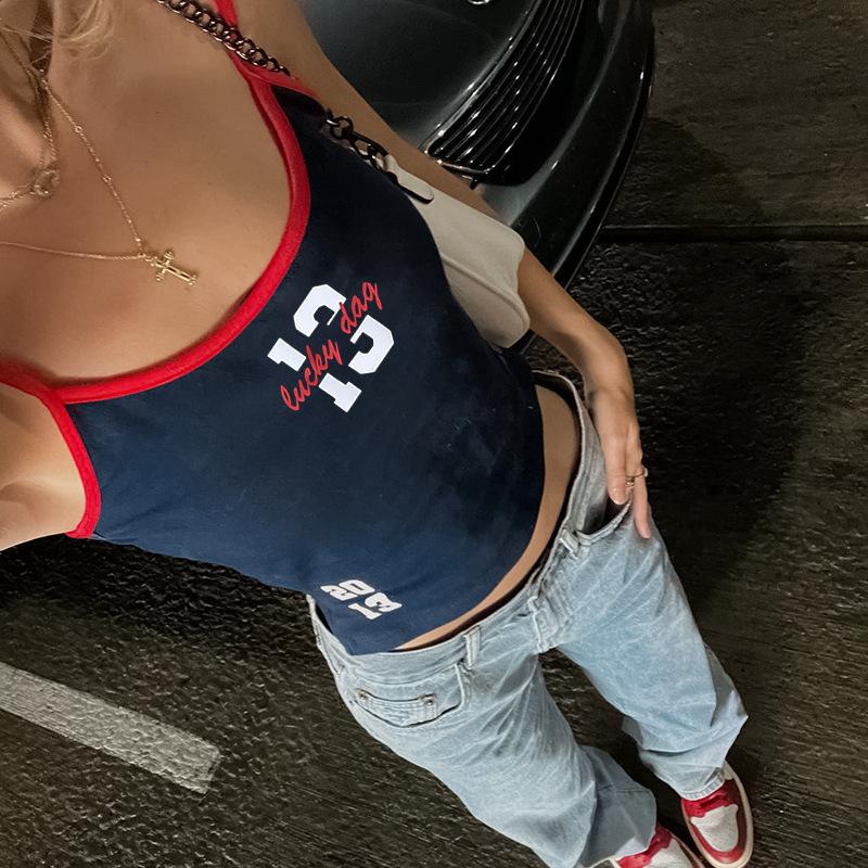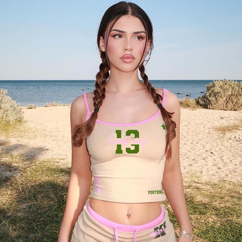 Verano Europeo 2024 Nuevo Estilo Caliente de Chica Chaleco Trendy Casual Más Fácil de Combinar Camisola Estampada en Contraste Top para Mujer