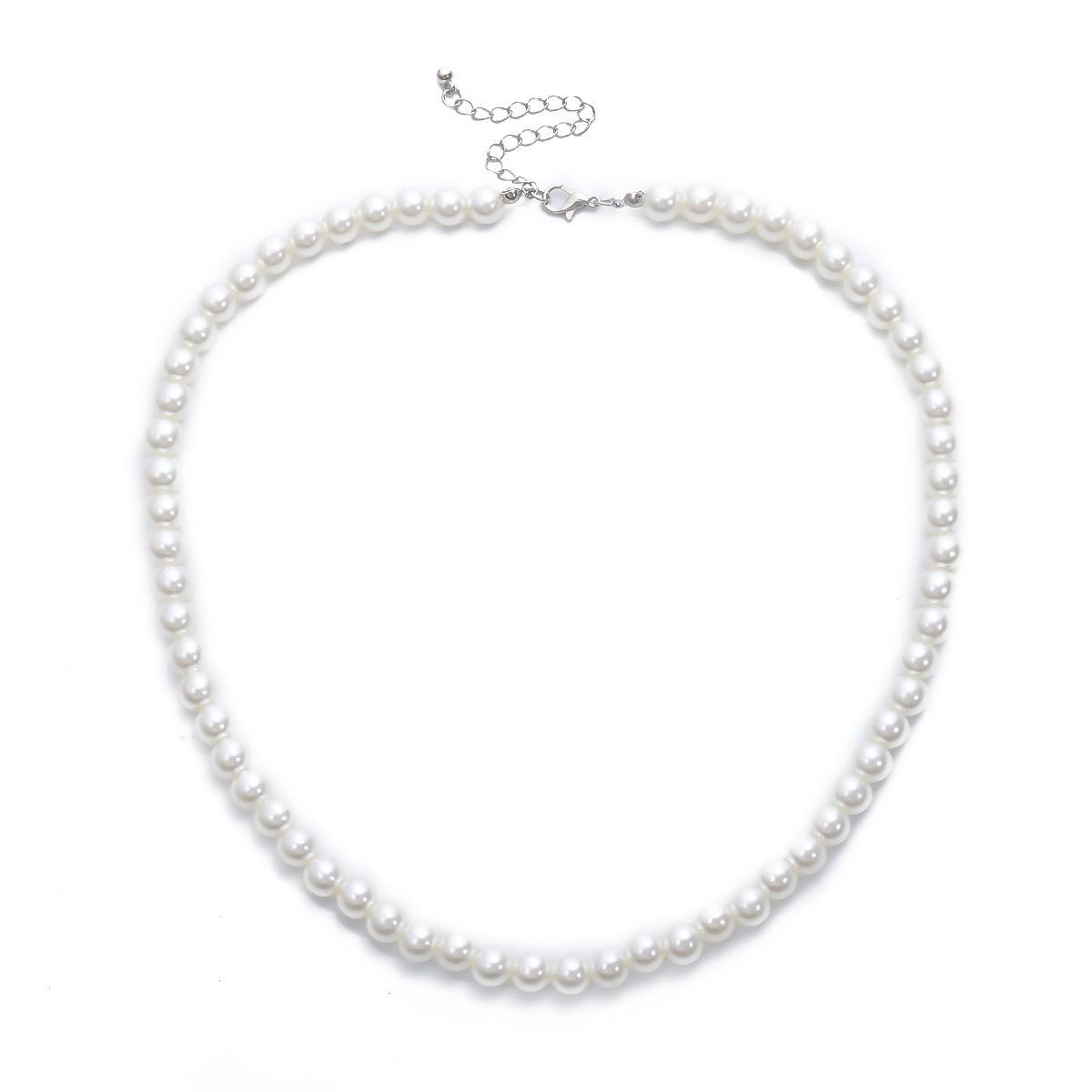 Collar de cuentas geométricas simples con diseño transfronterizo europeo y americano, collar de clavícula de perlas de imitación de moda retro para mujer
